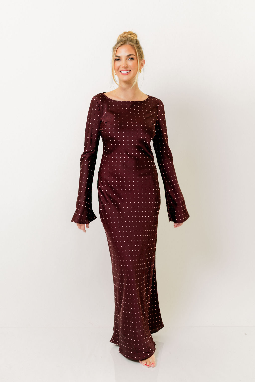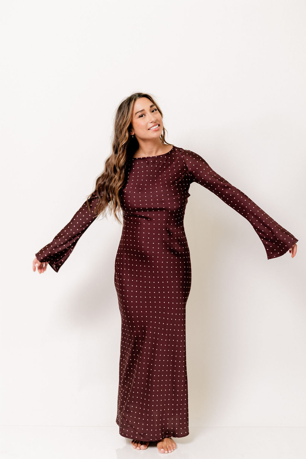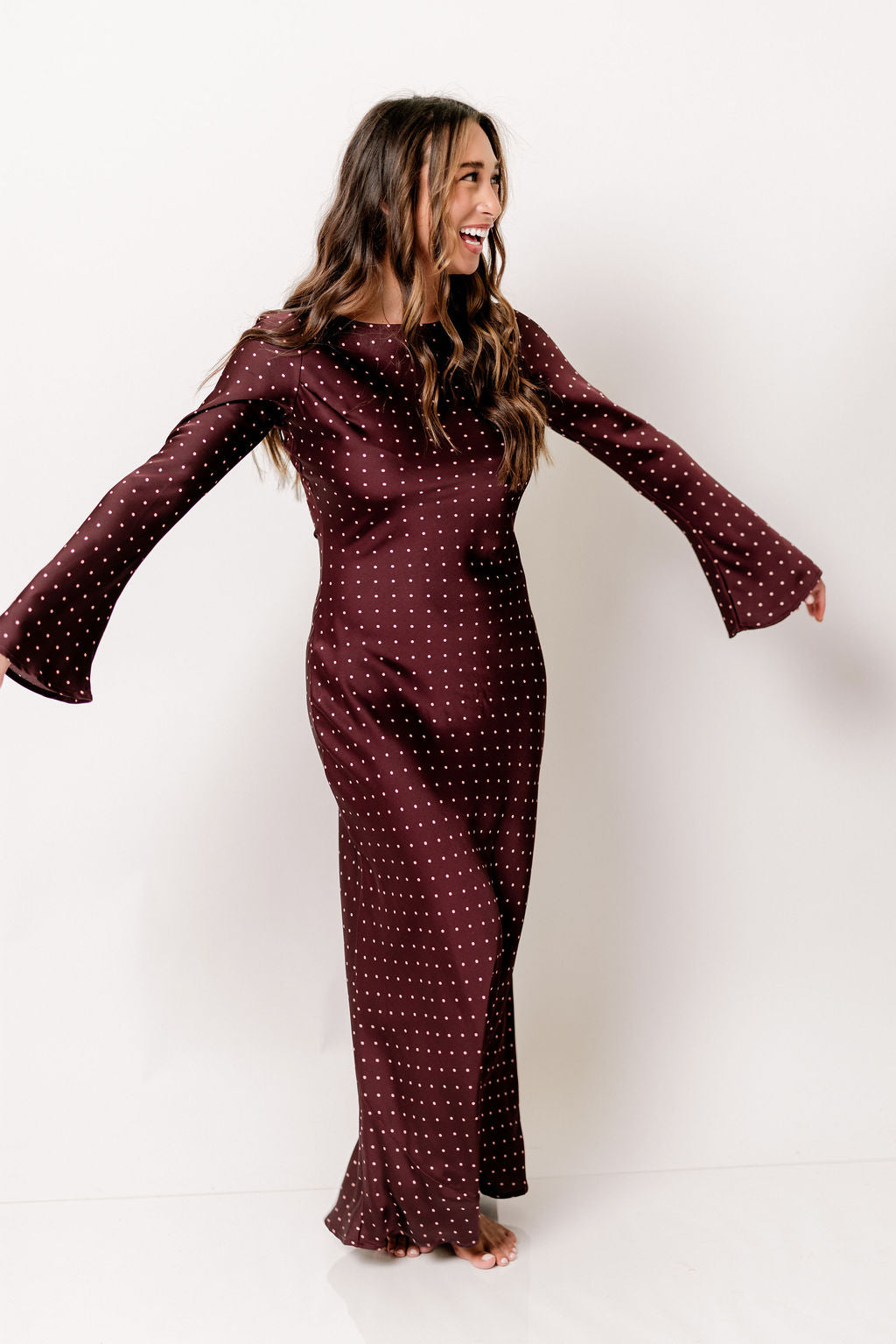 Georgie Polka Dot Maxi Dress in Burgundy