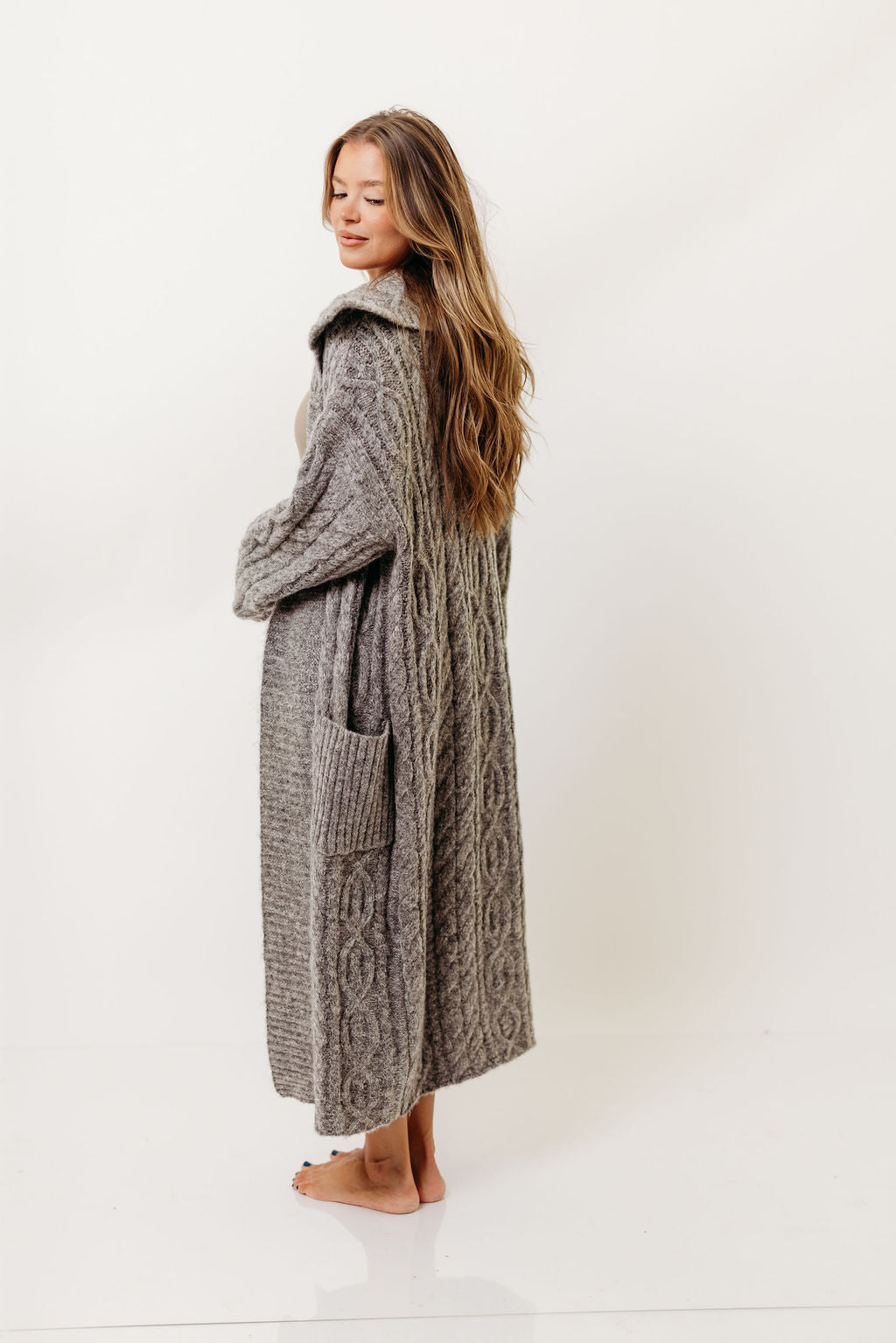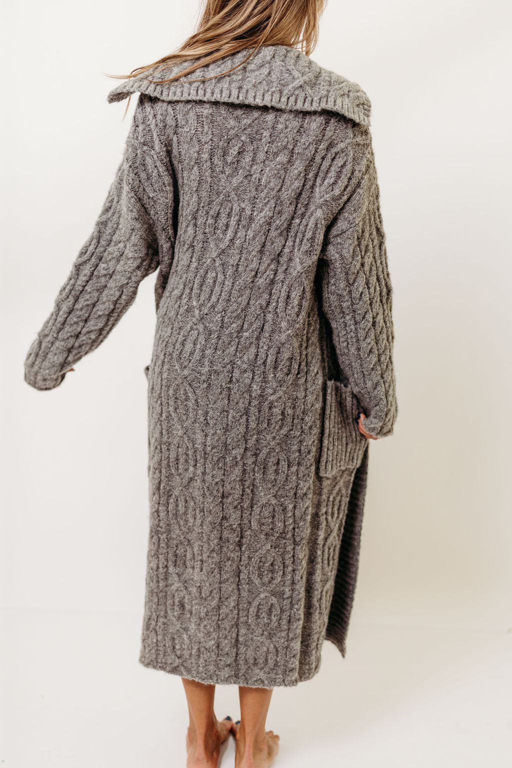 Sandra Cable Knit Cardigan Jacket in Charcoal