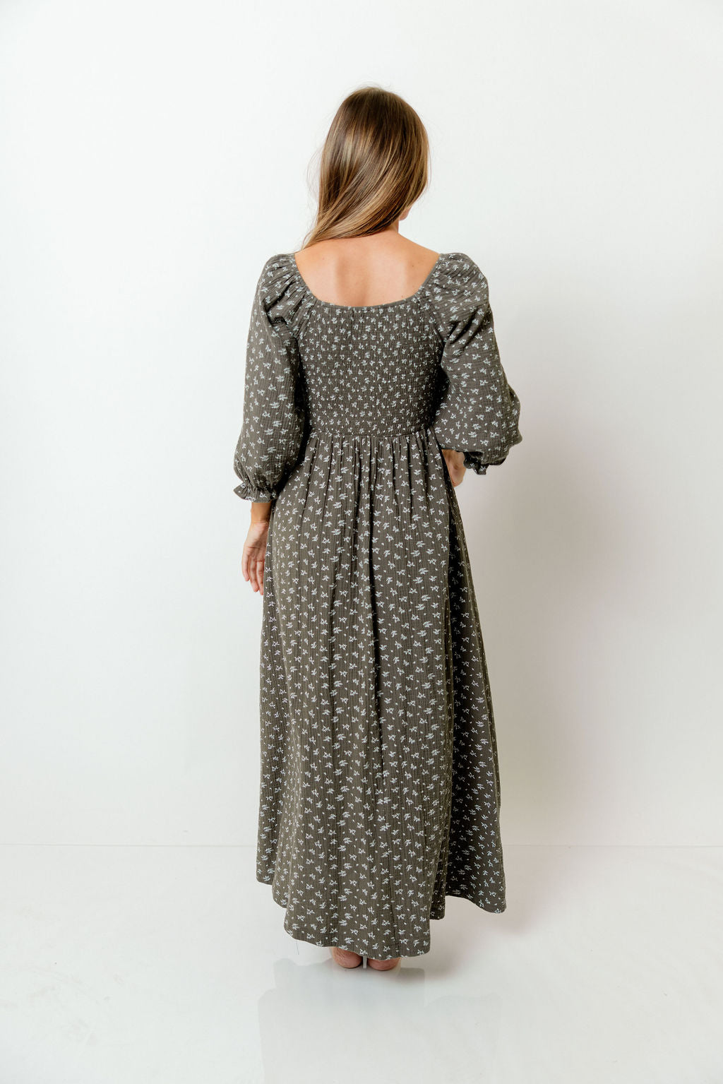 Sienna 100% Cotton Puff Sleeve Maxi Dress in Forest Foliage - Bump Friendly