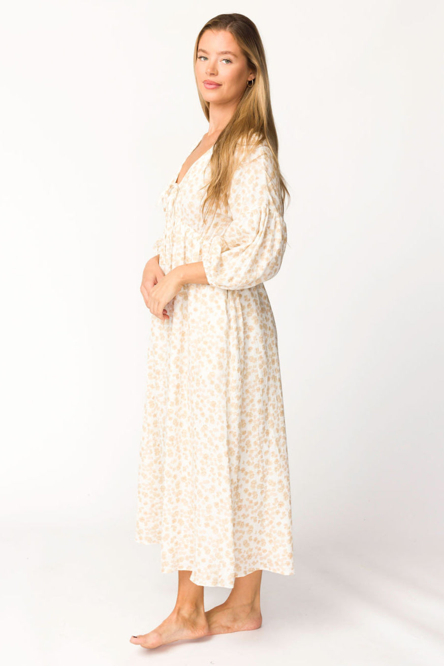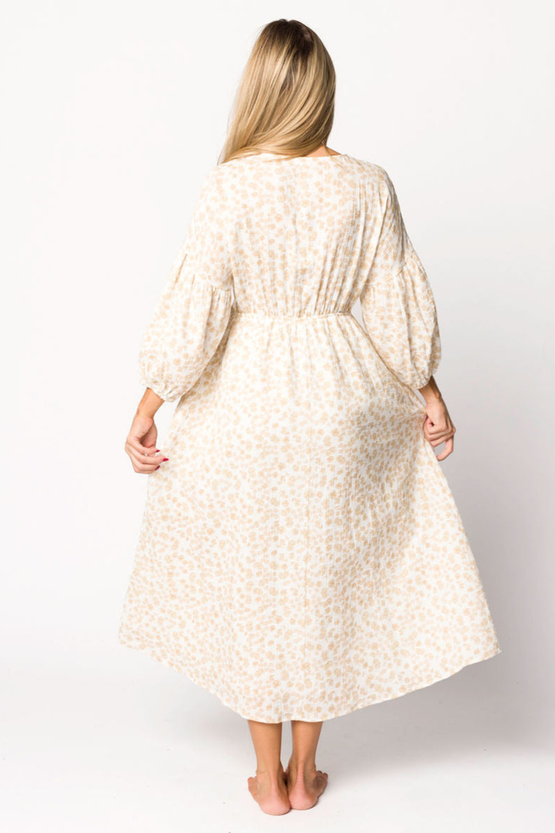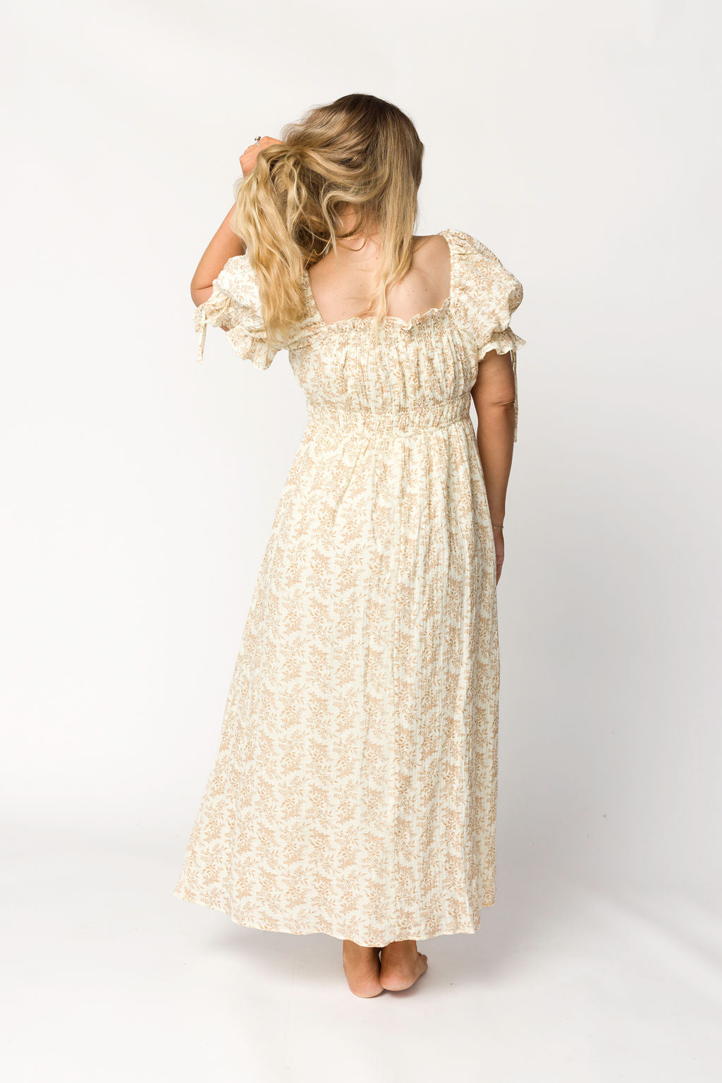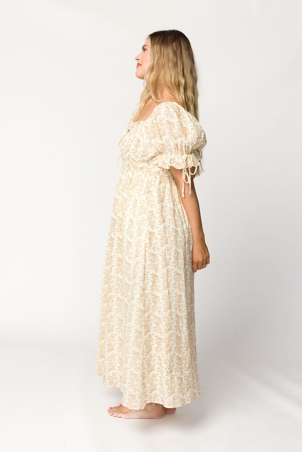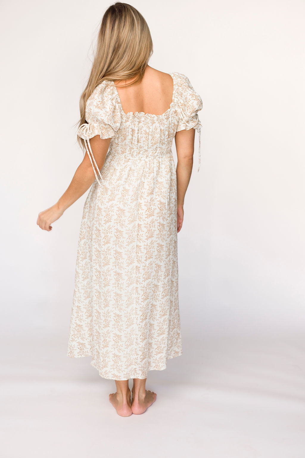 Hunter 100% Cotton Gauze Midi Dress in Natural/Fawn Floral - Bump Friendly
