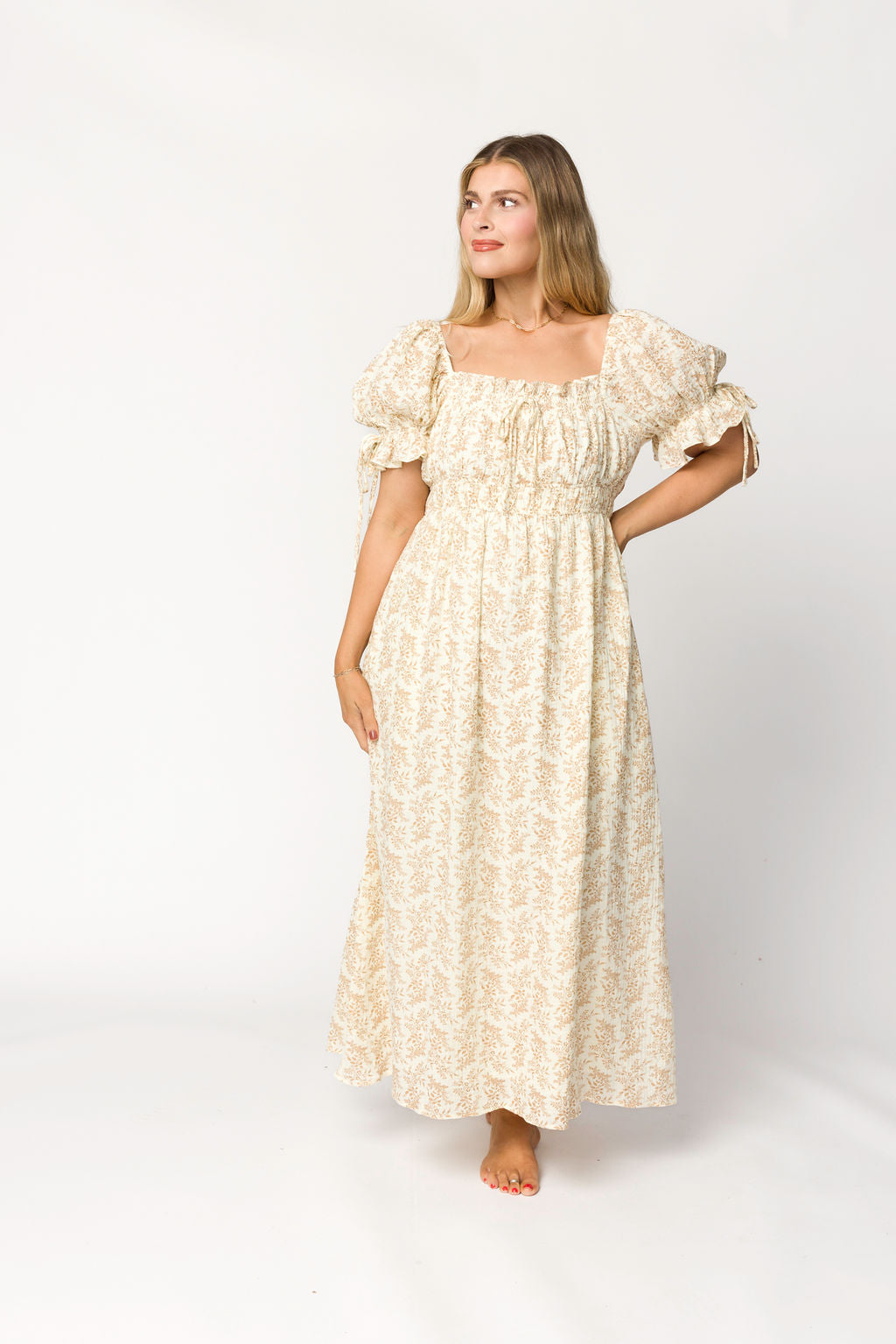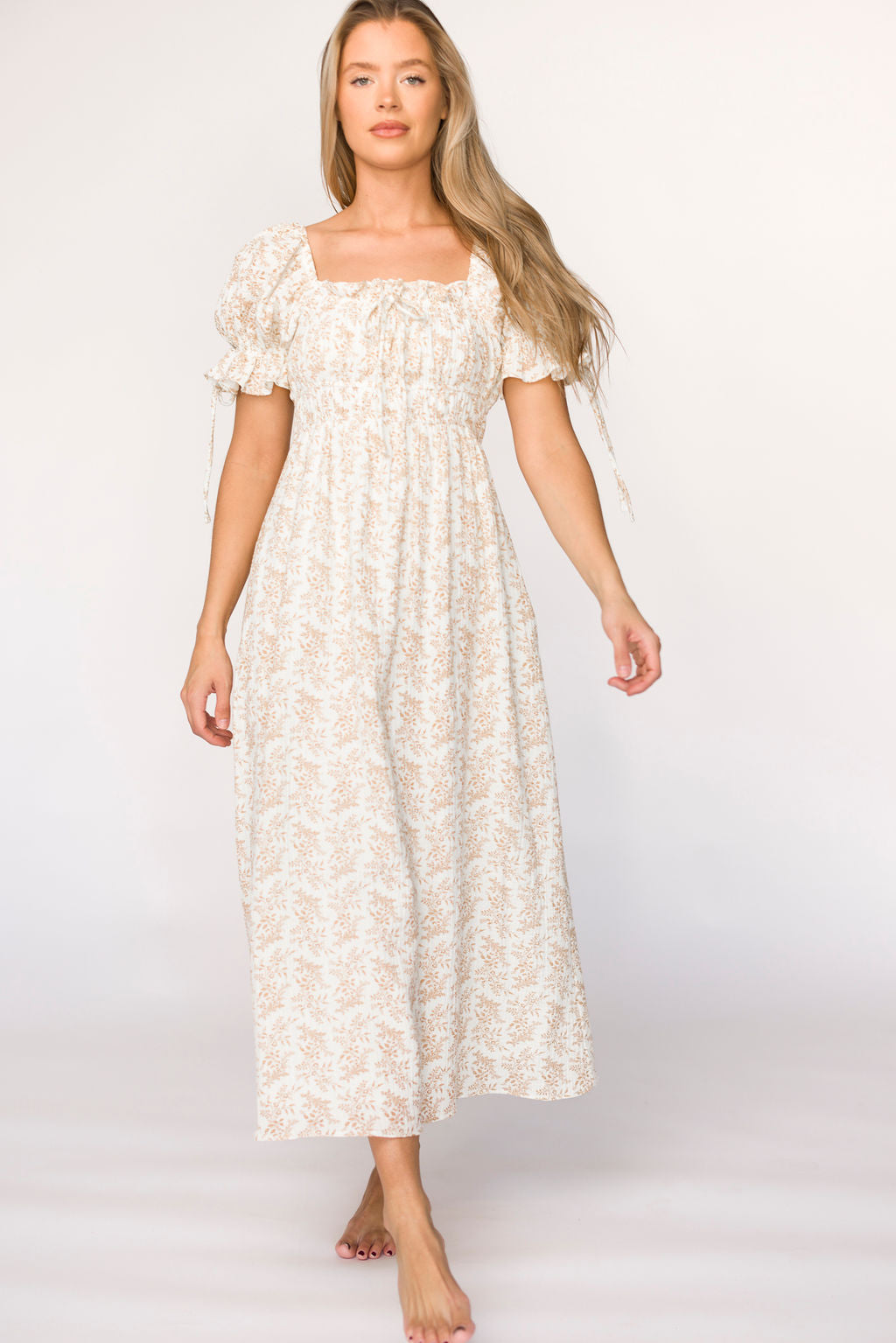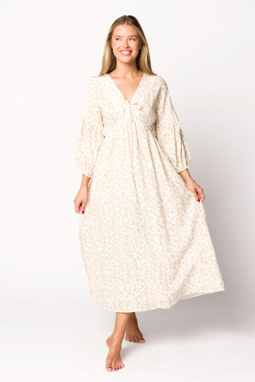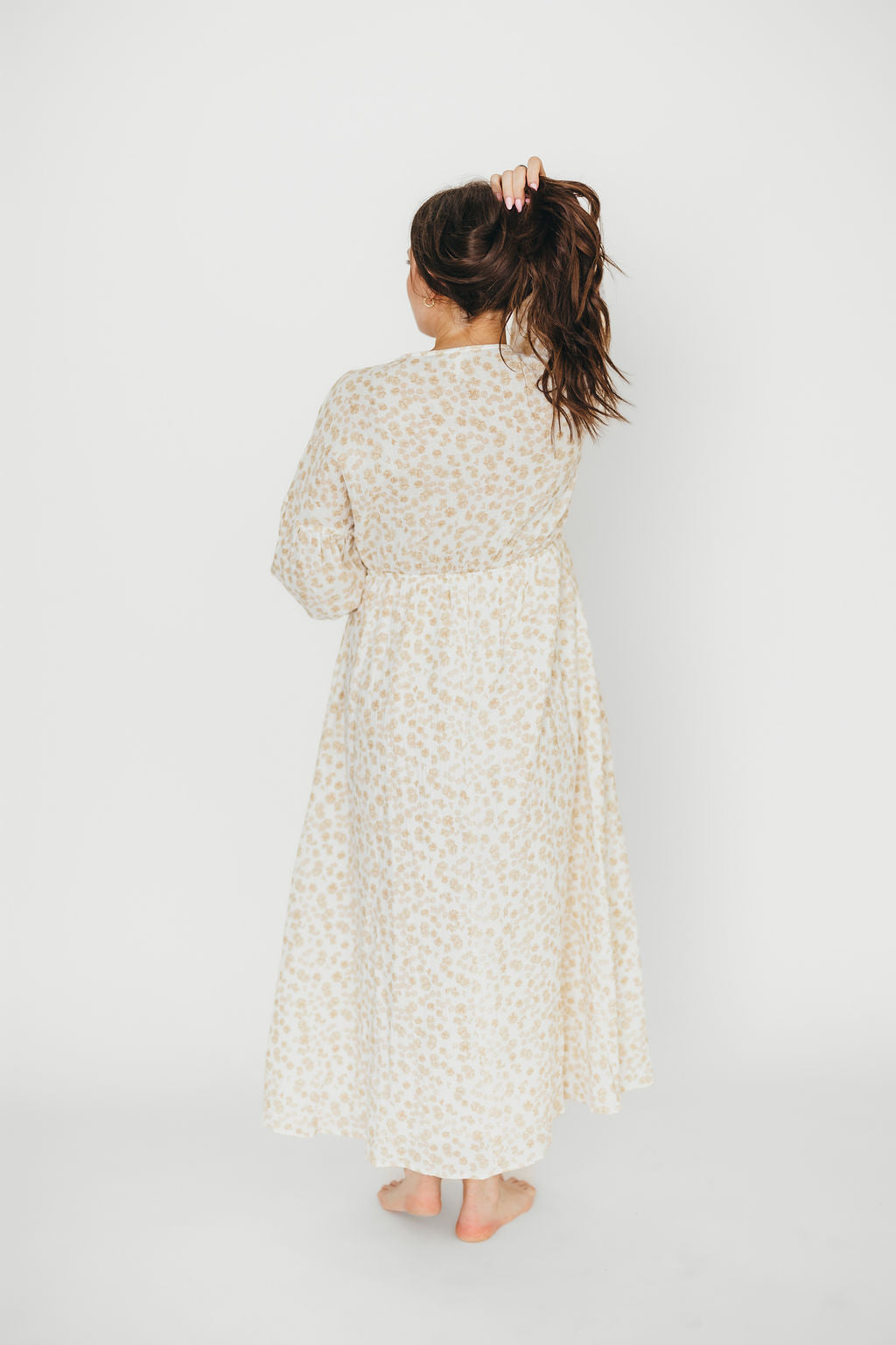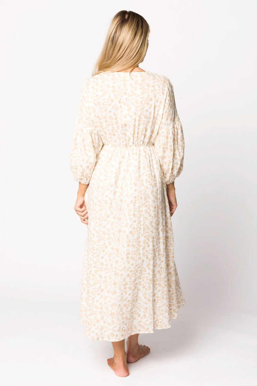Hunter 100% Cotton Gauze Midi Dress in Natural/Fawn Floral - Bump Friendly