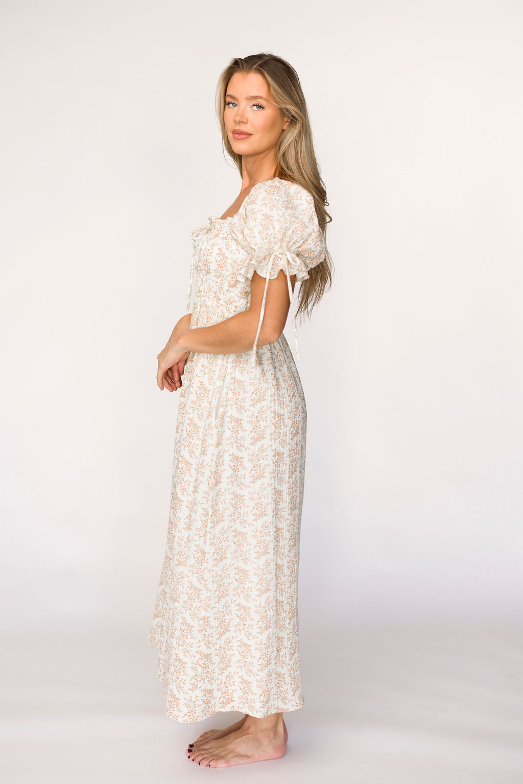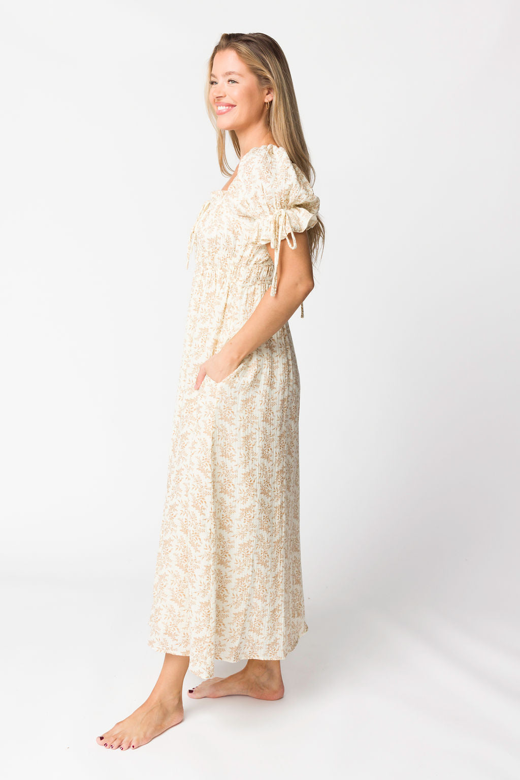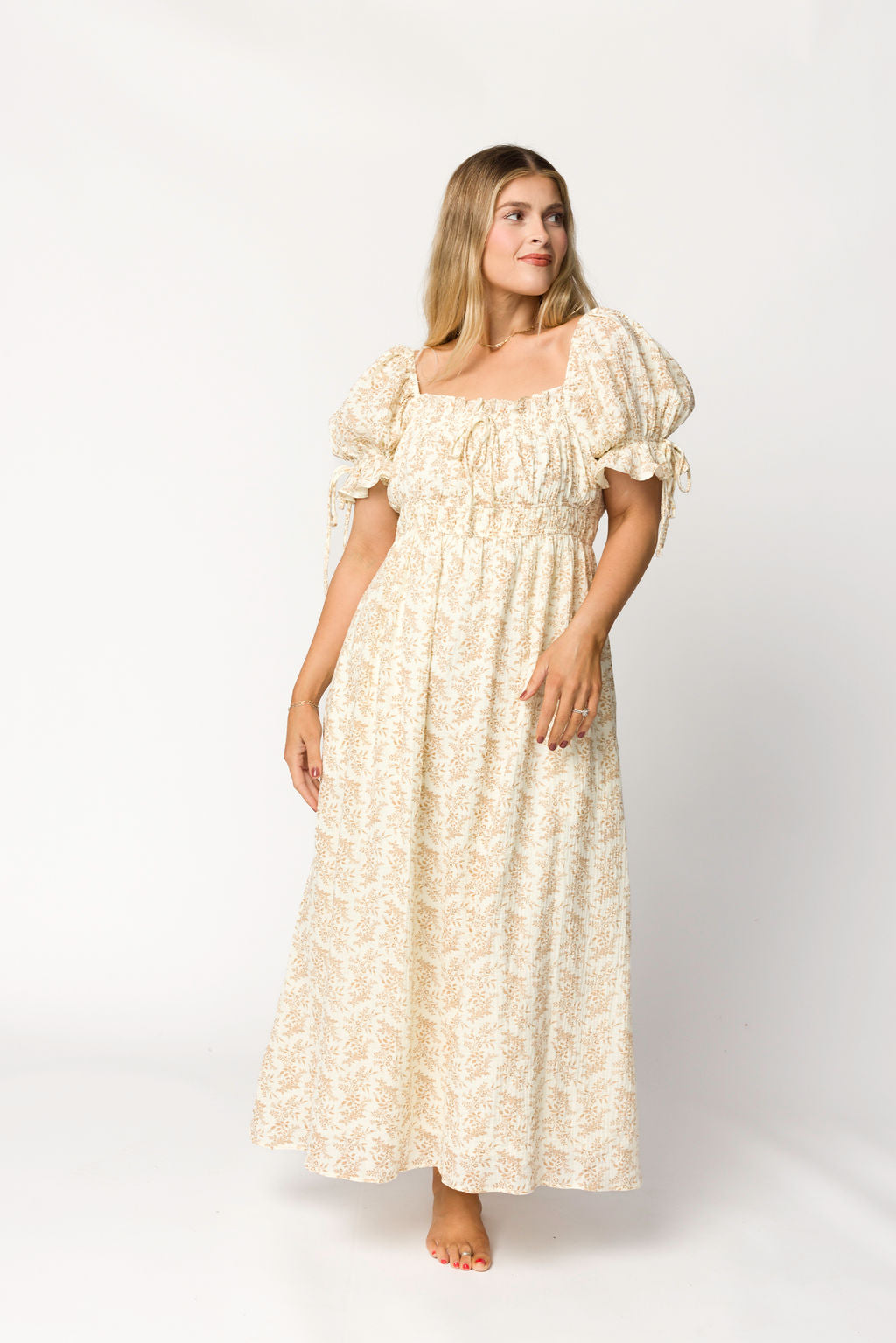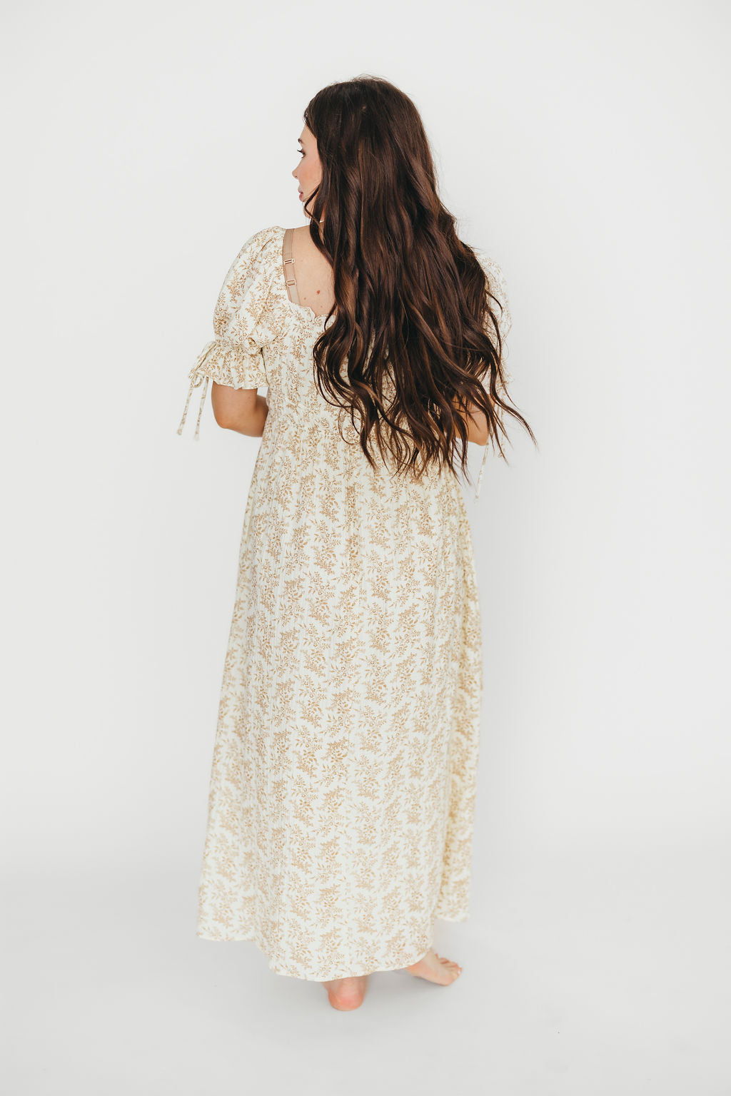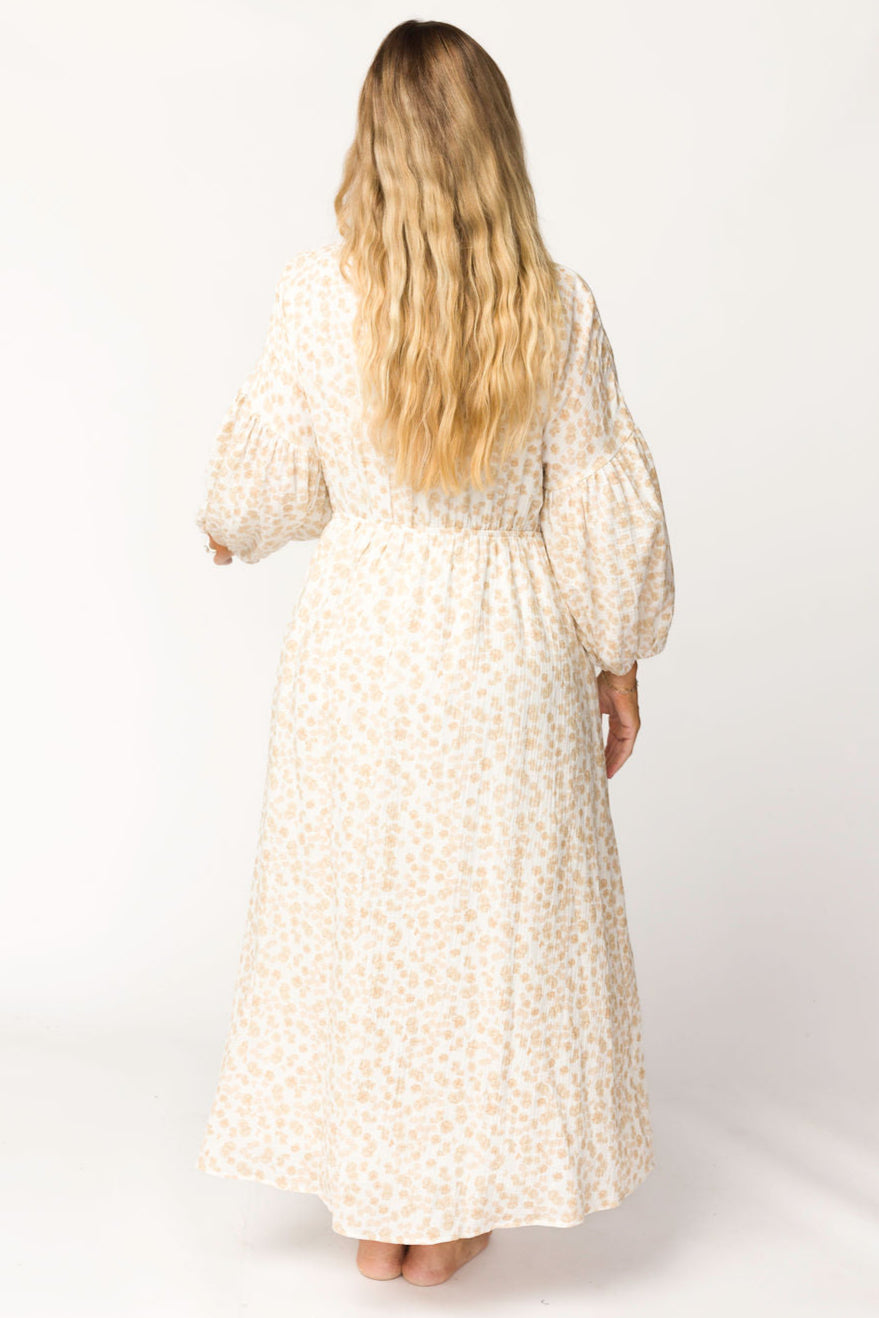 Hunter 100% Cotton Gauze Midi Dress in Natural/Fawn Floral - Bump Friendly