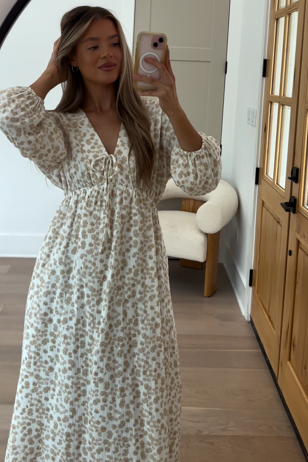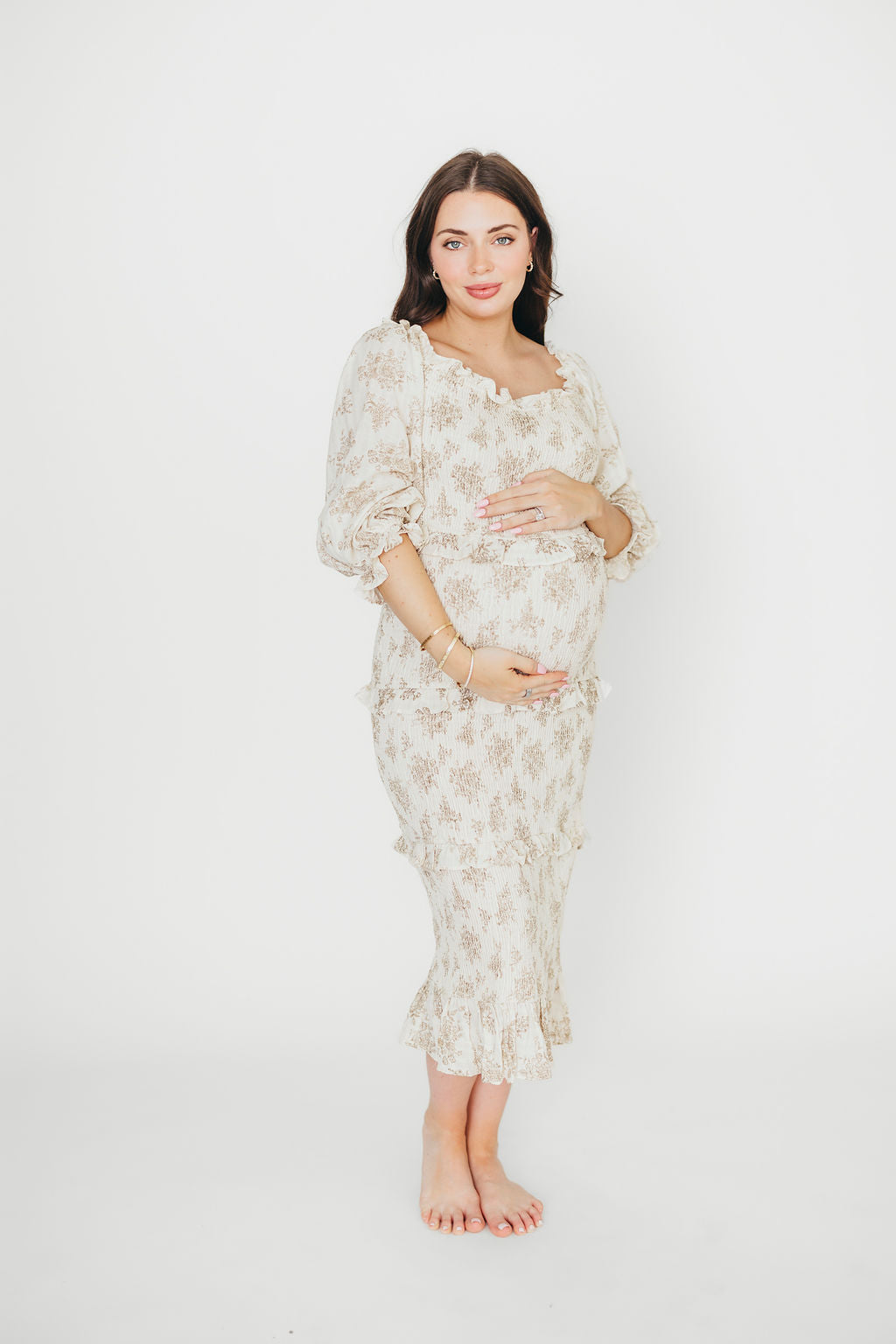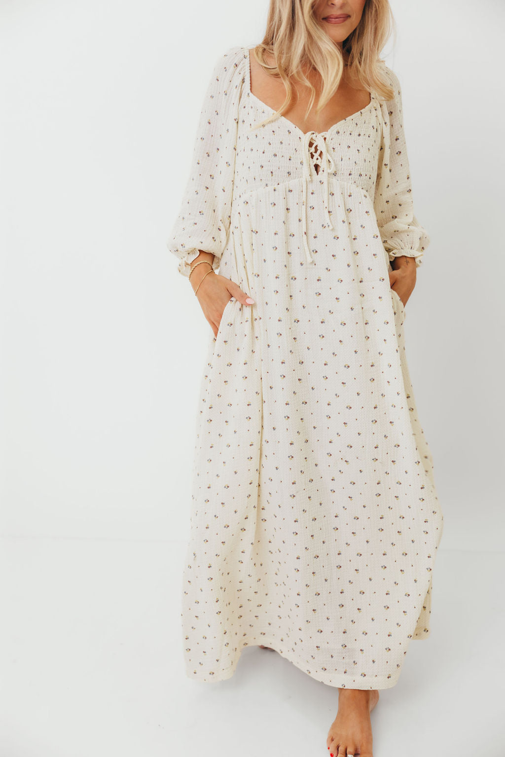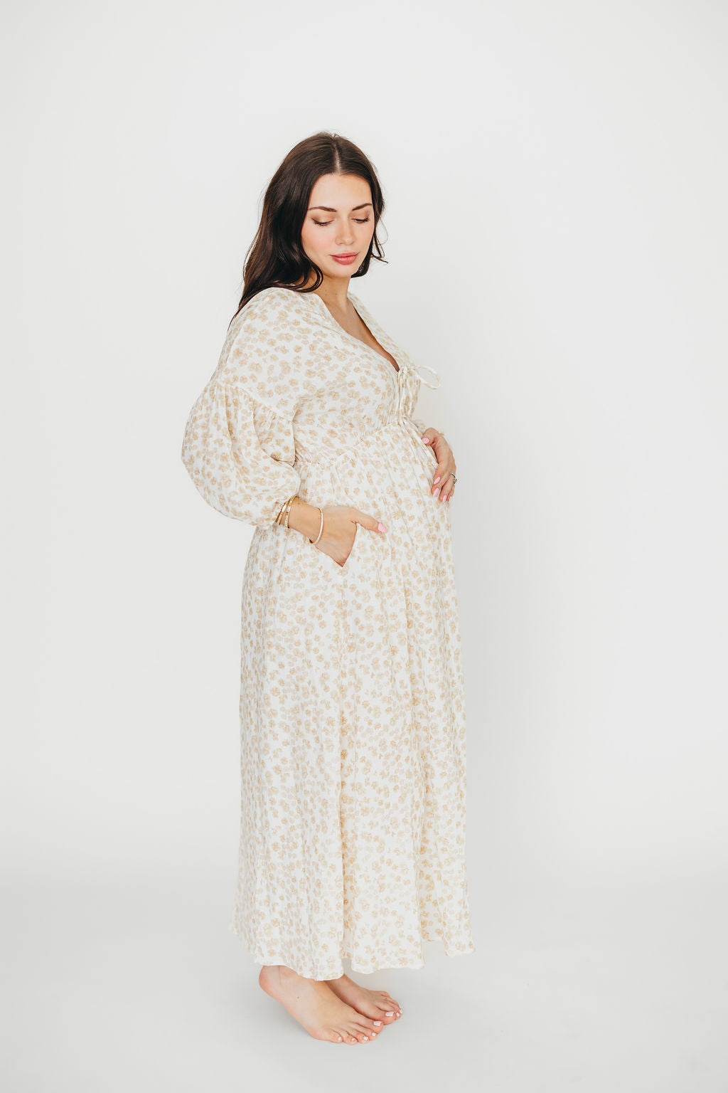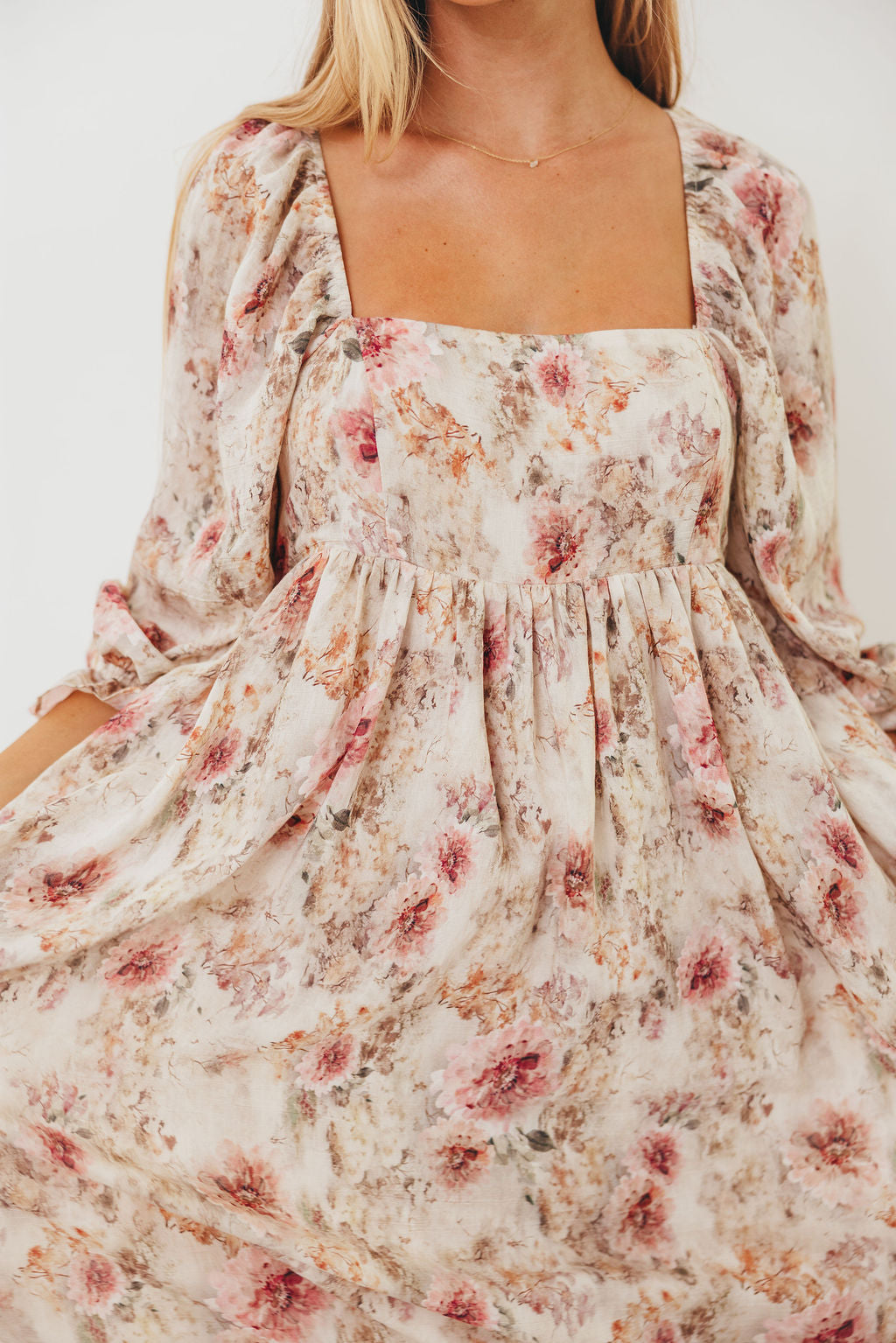 Hunter 100% Cotton Gauze Midi Dress in Natural/Fawn Floral - Bump Friendly