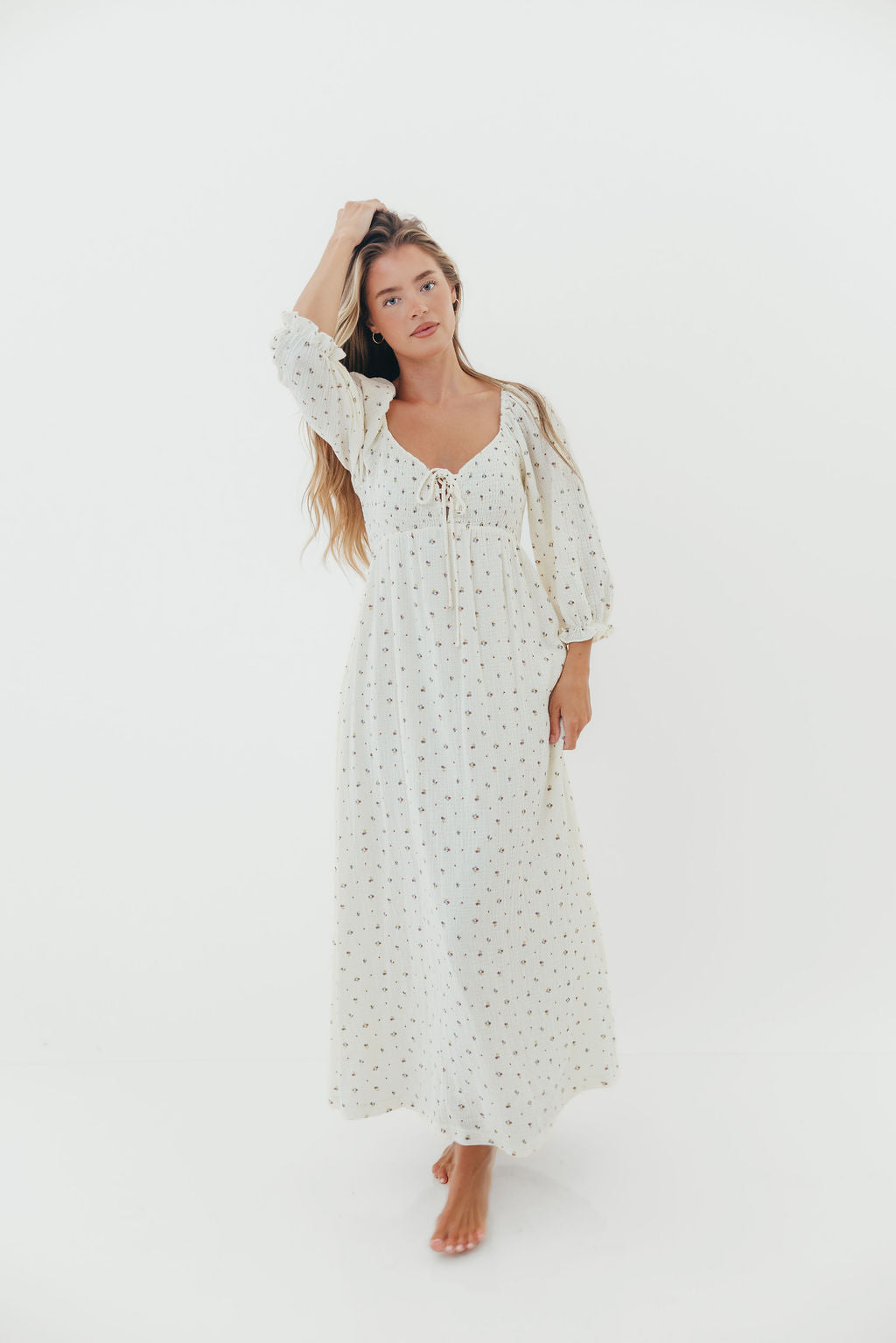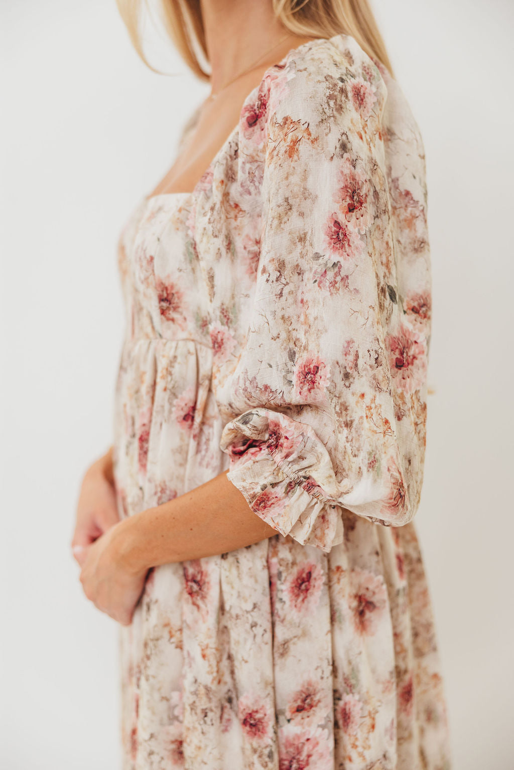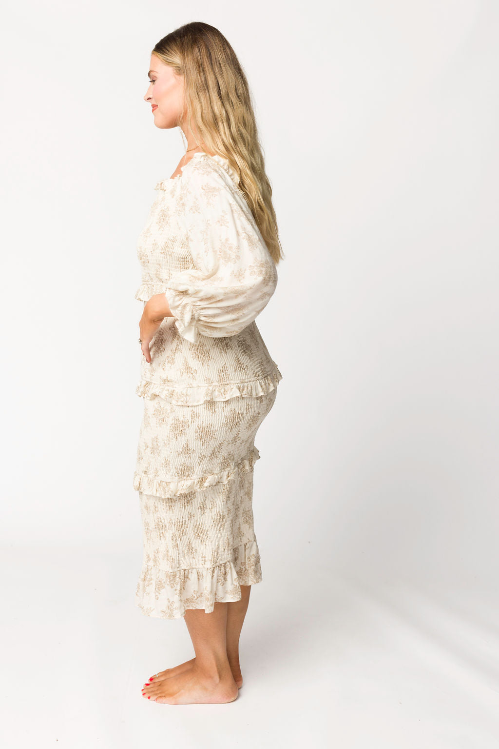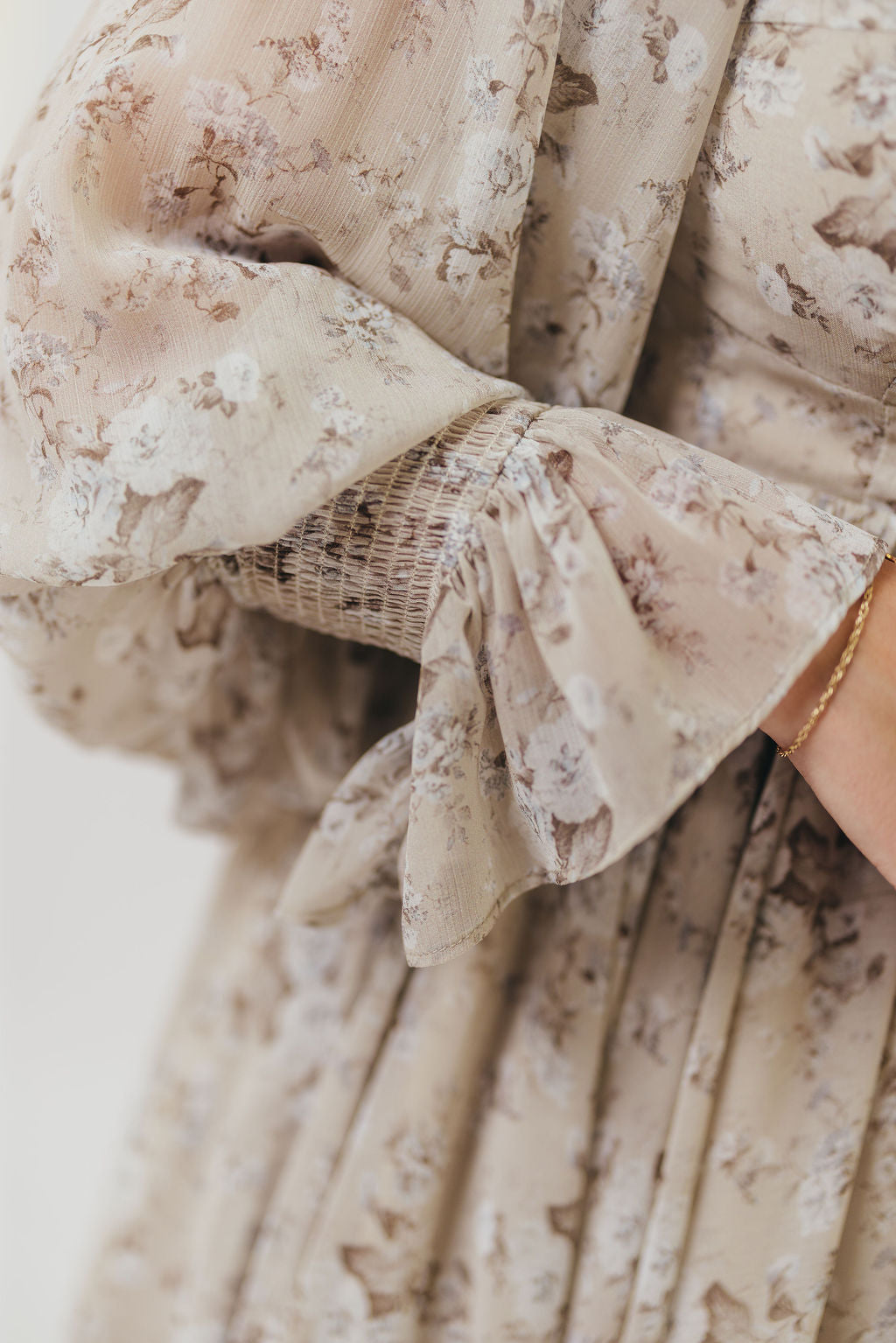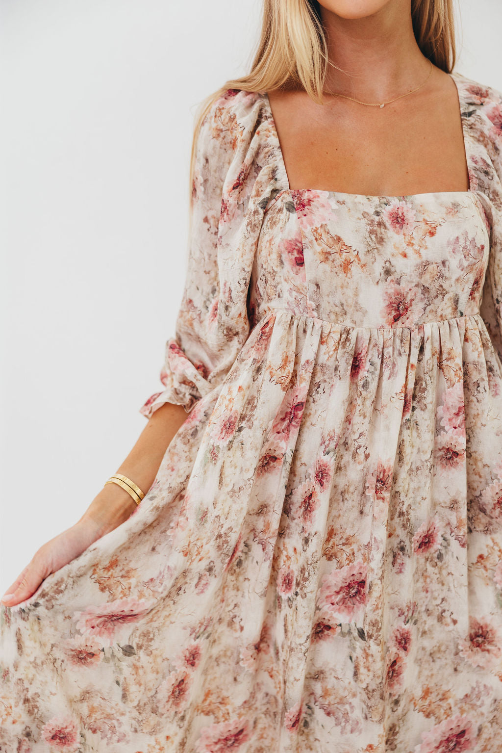 Hunter 100% Cotton Gauze Midi Dress in Natural/Fawn Floral - Bump Friendly
