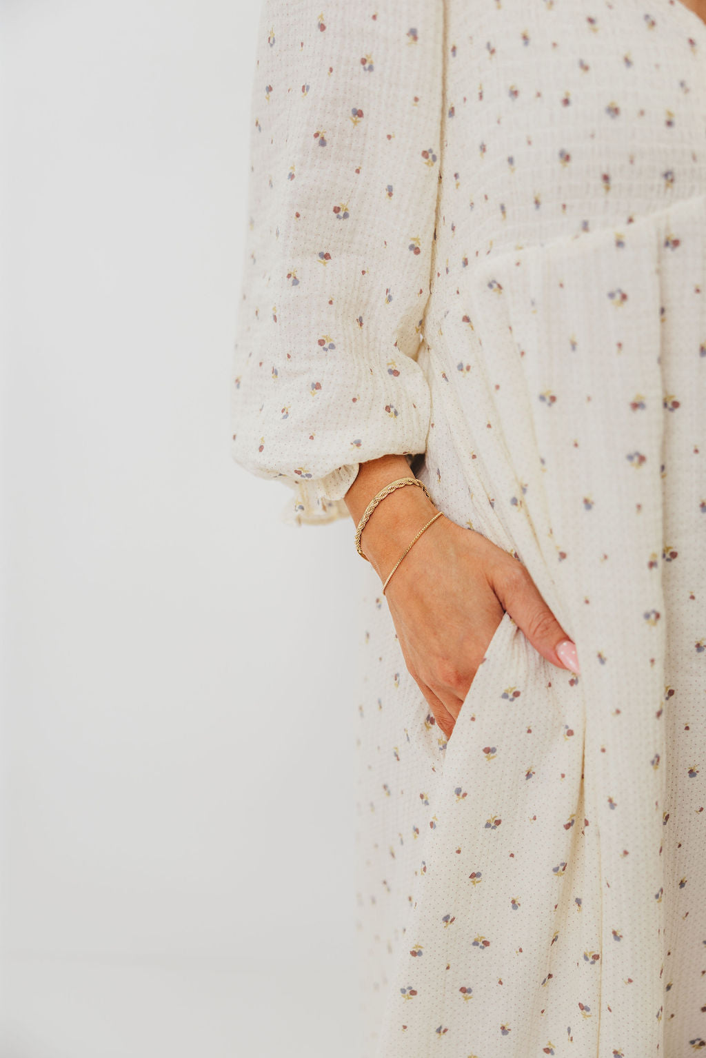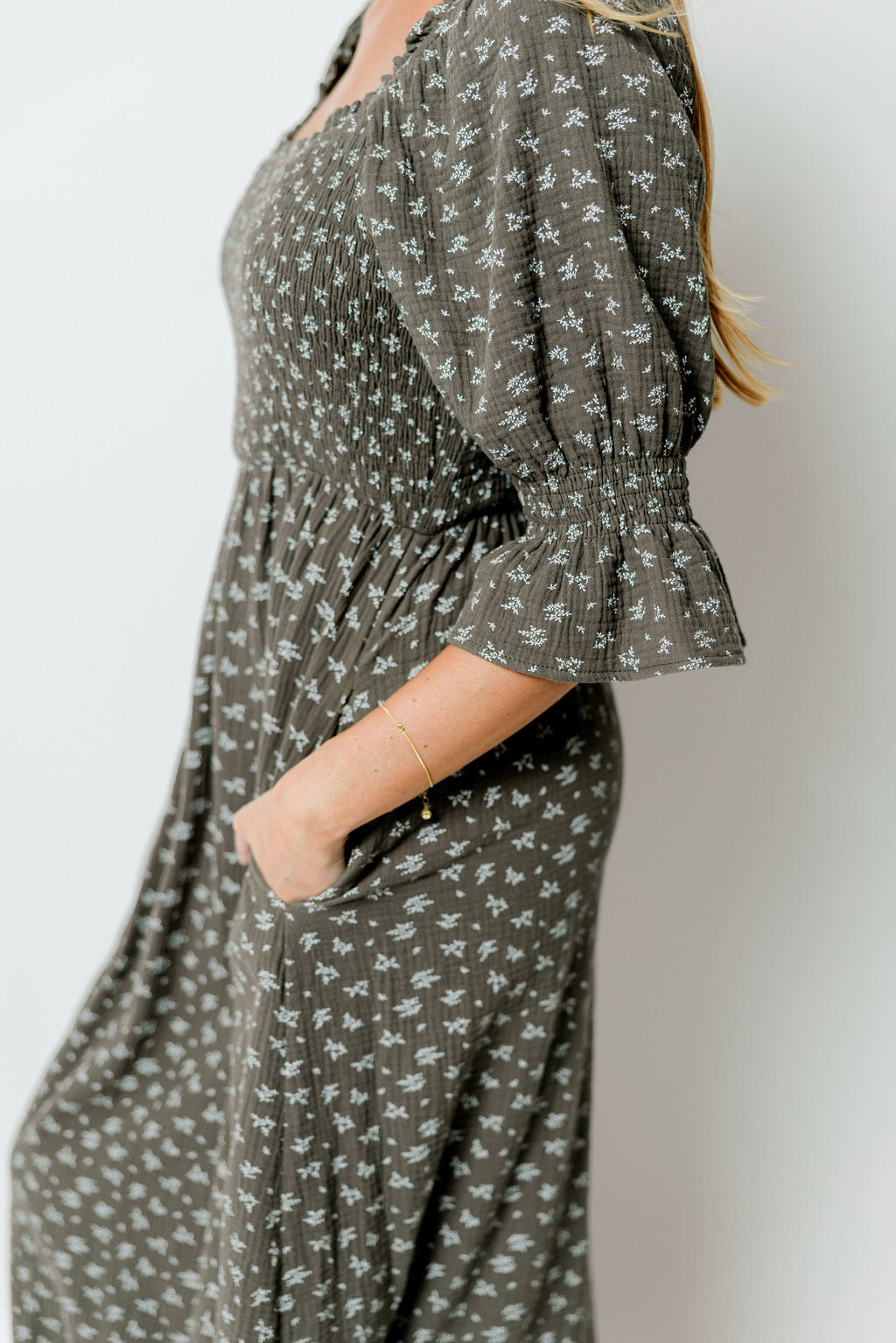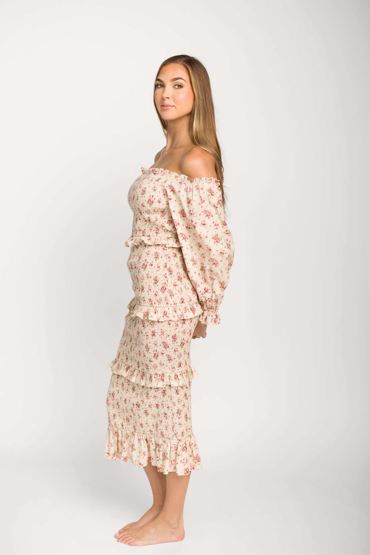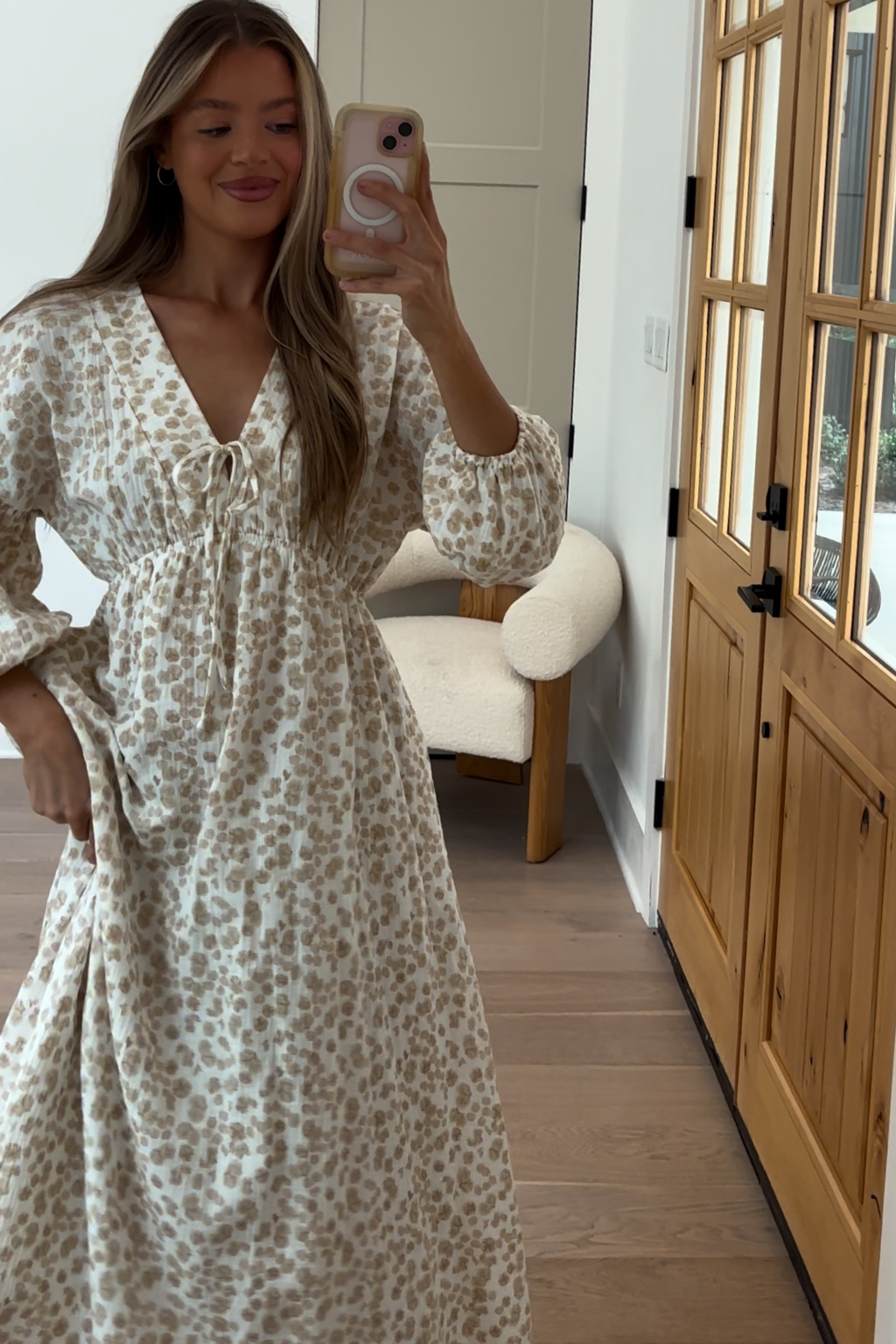Hunter 100% Cotton Gauze Midi Dress in Natural/Fawn Floral - Bump Friendly