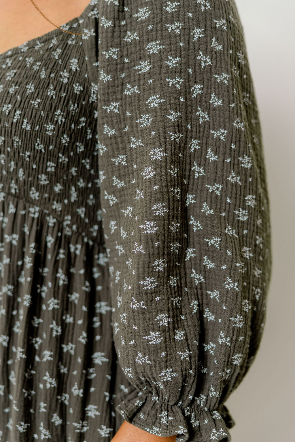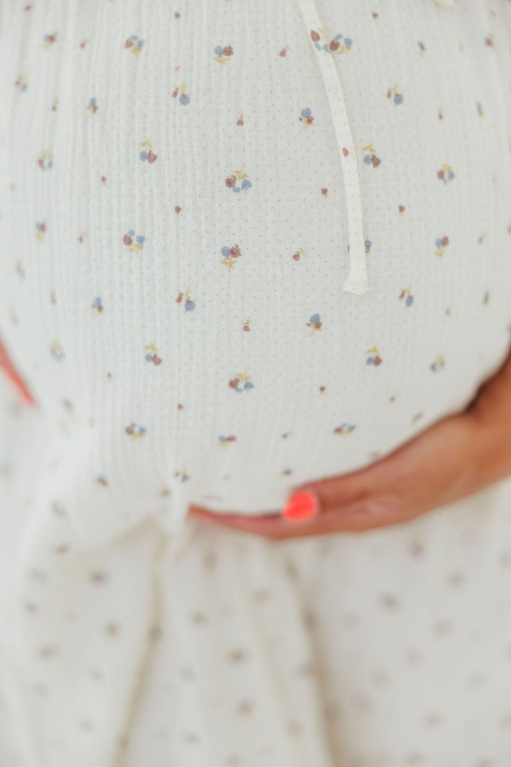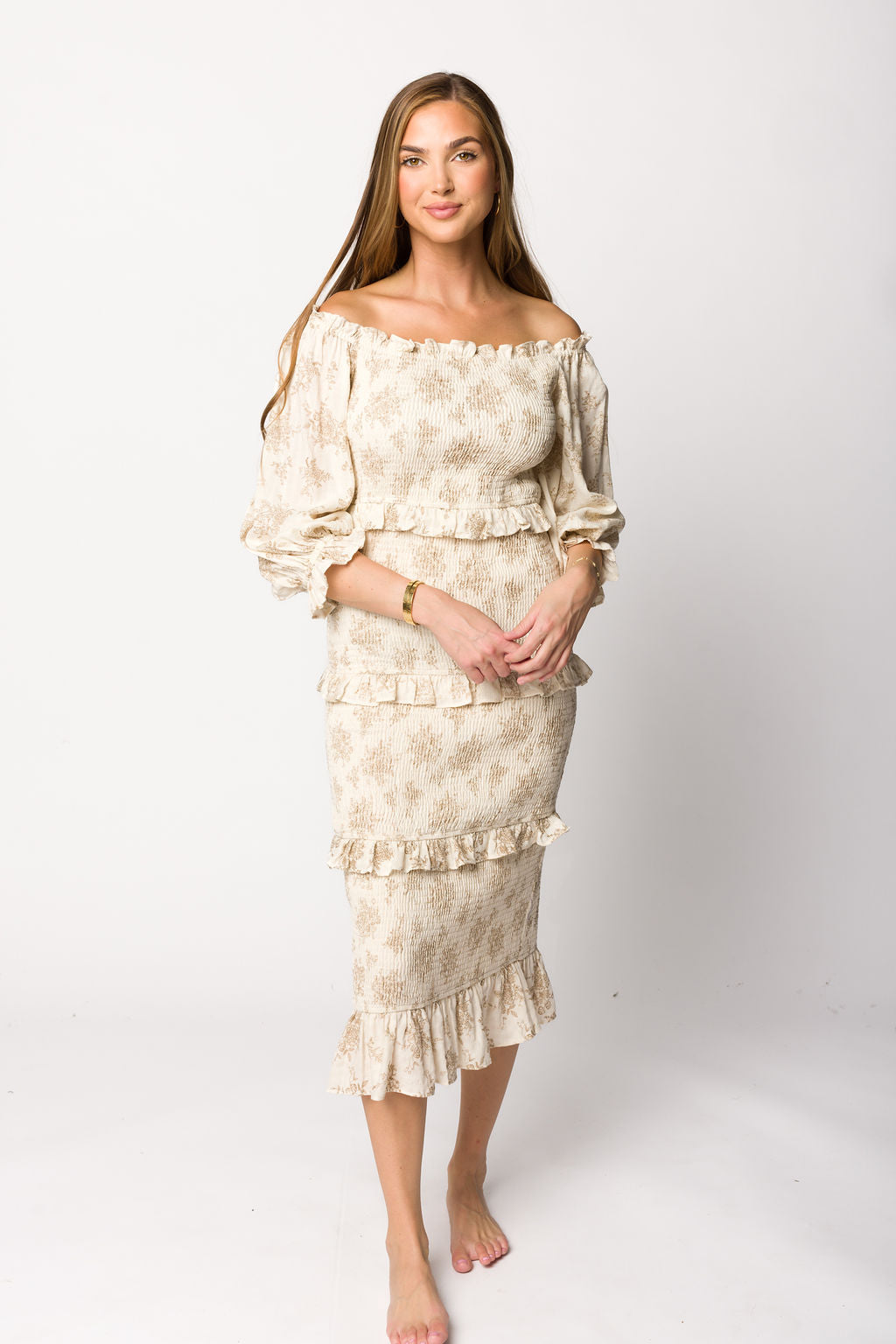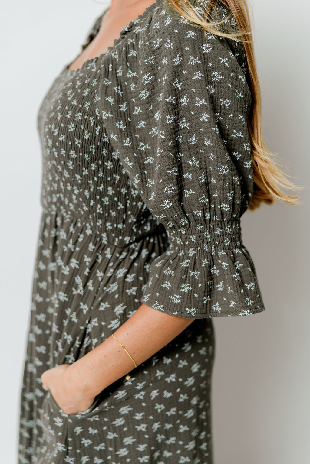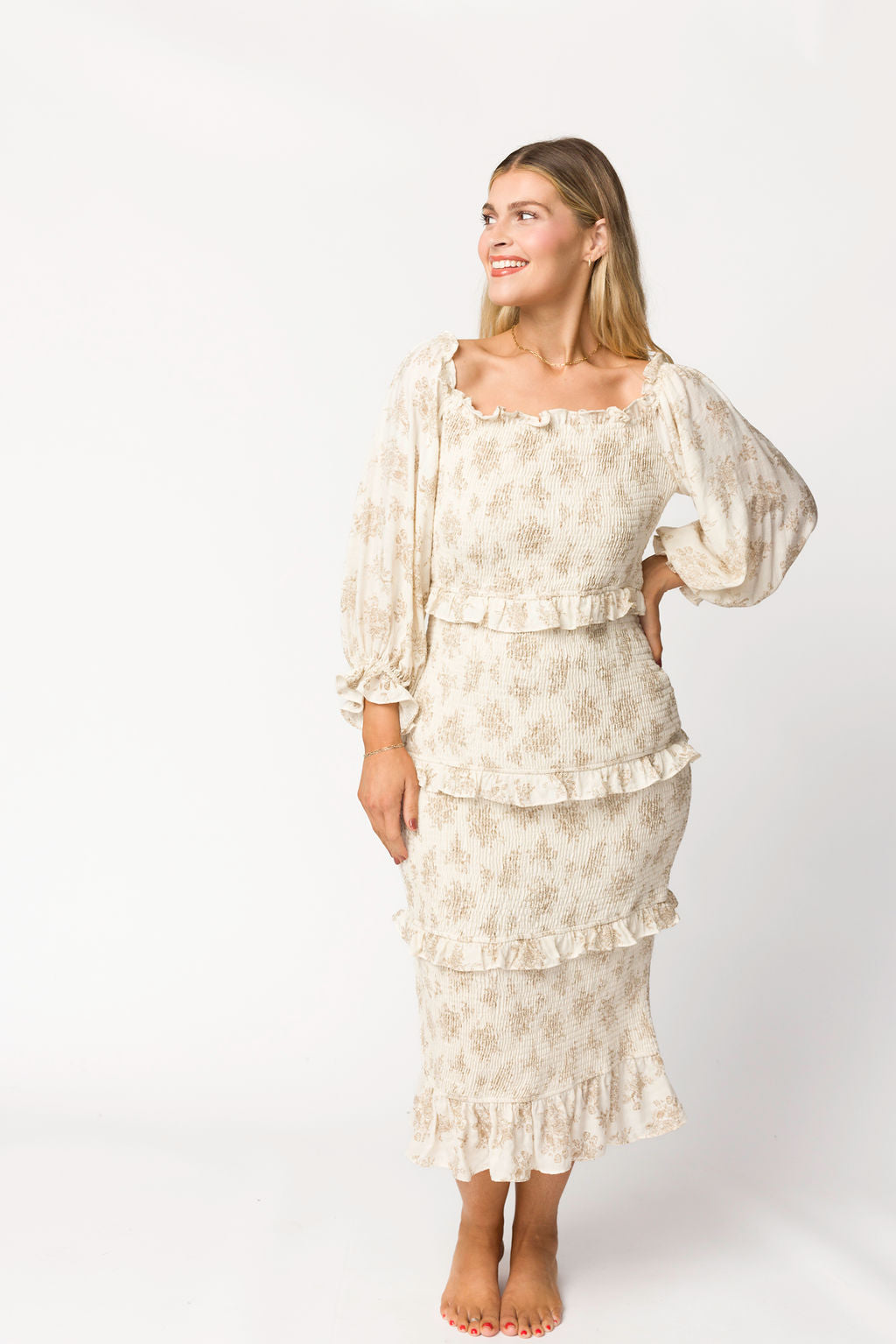Hunter 100% Cotton Gauze Midi Dress in Natural/Fawn Floral - Bump Friendly