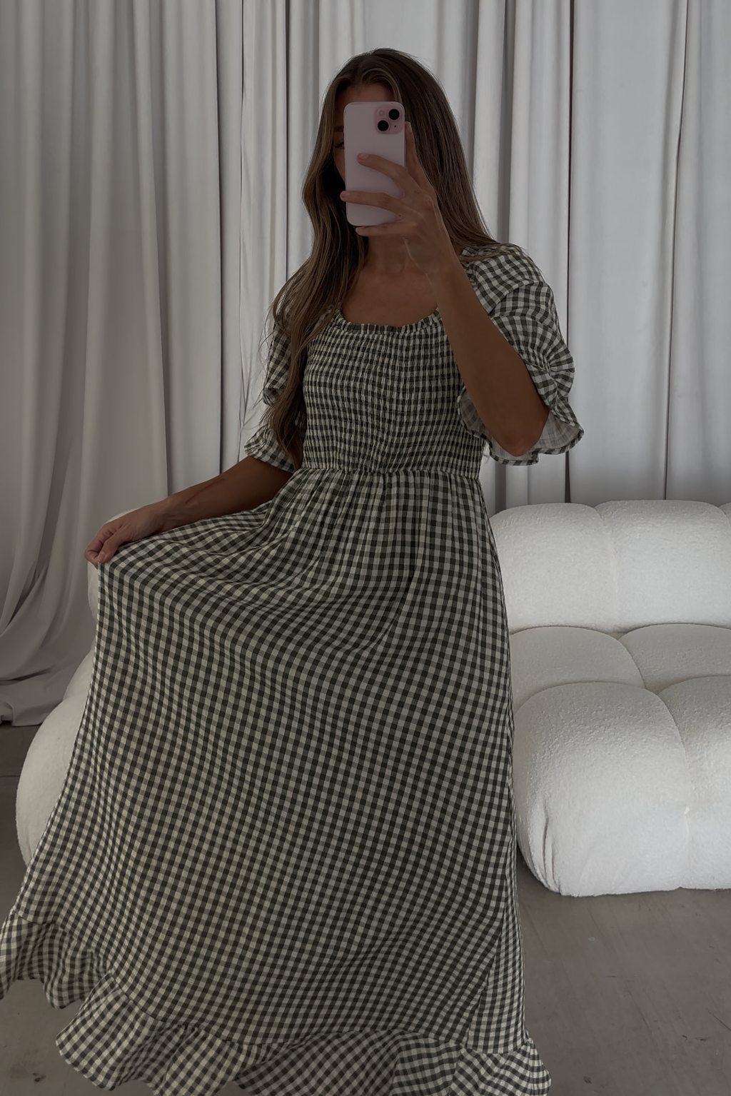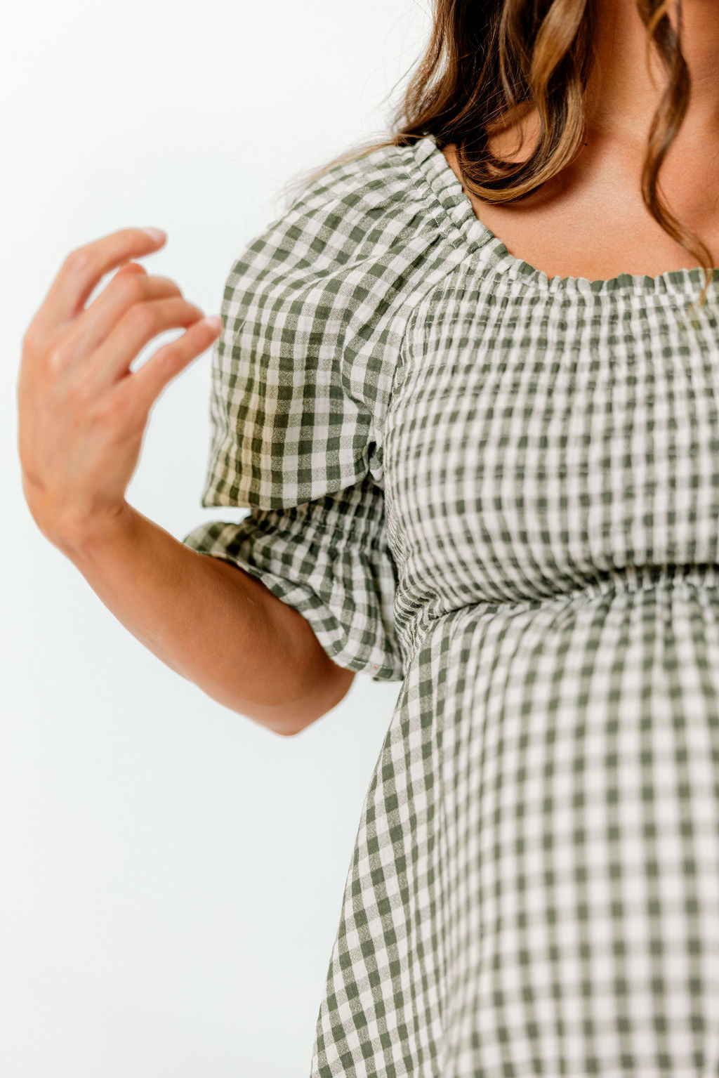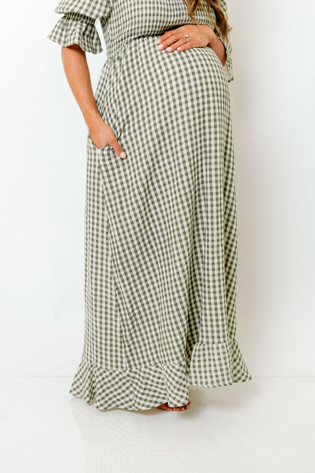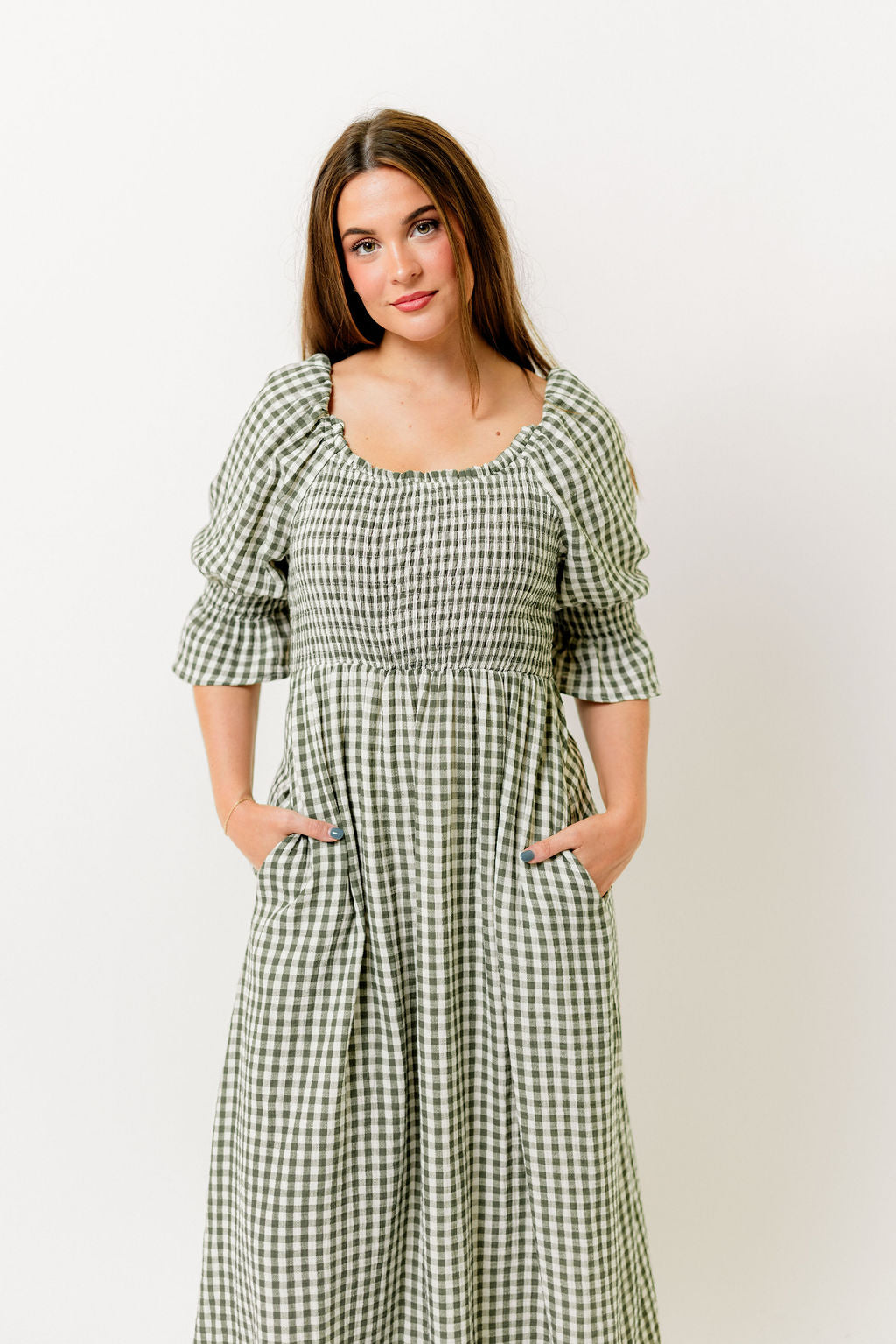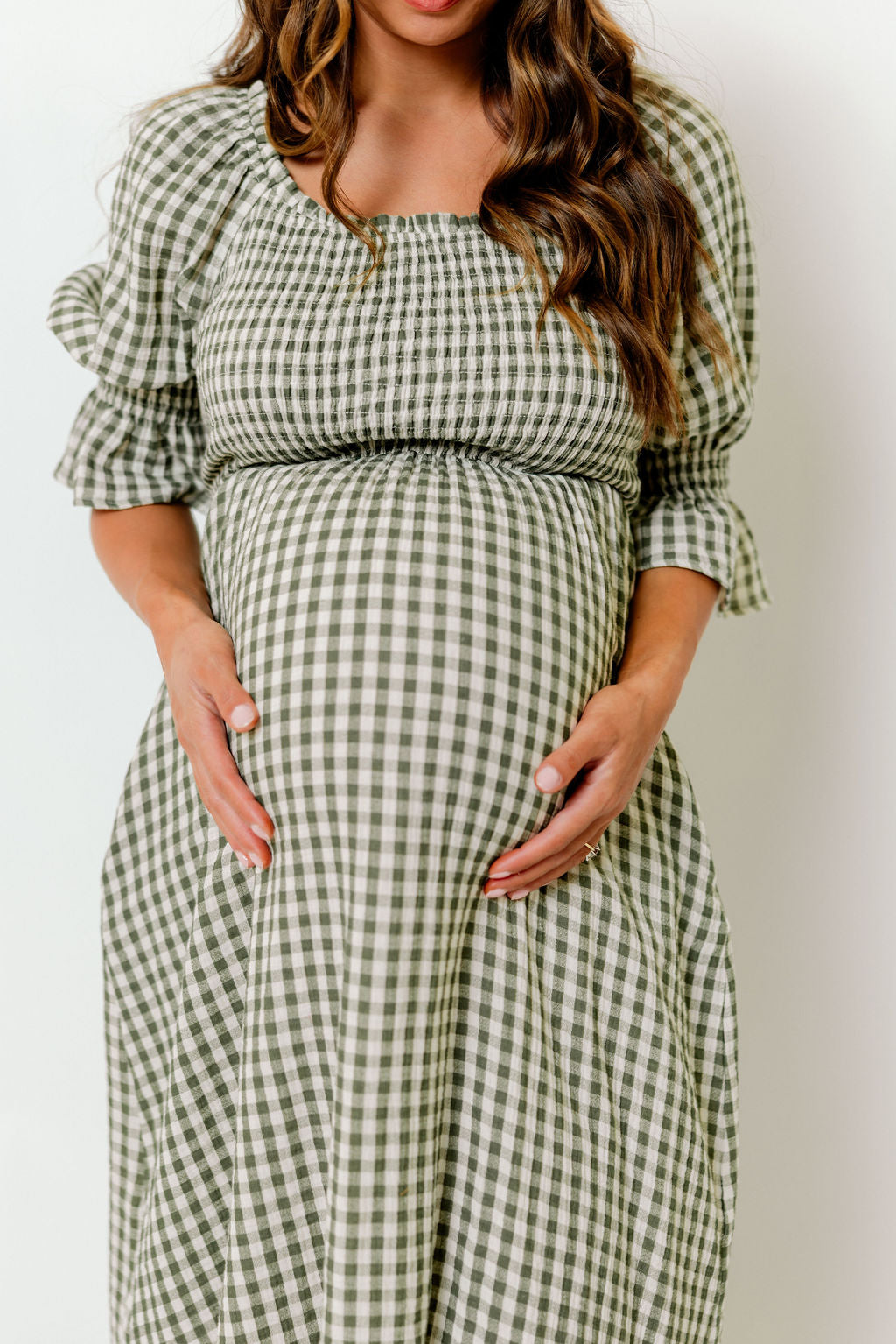 Sienna 100% Cotton Puff Sleeve Maxi Dress in Forest Plaid - Bump Friendly