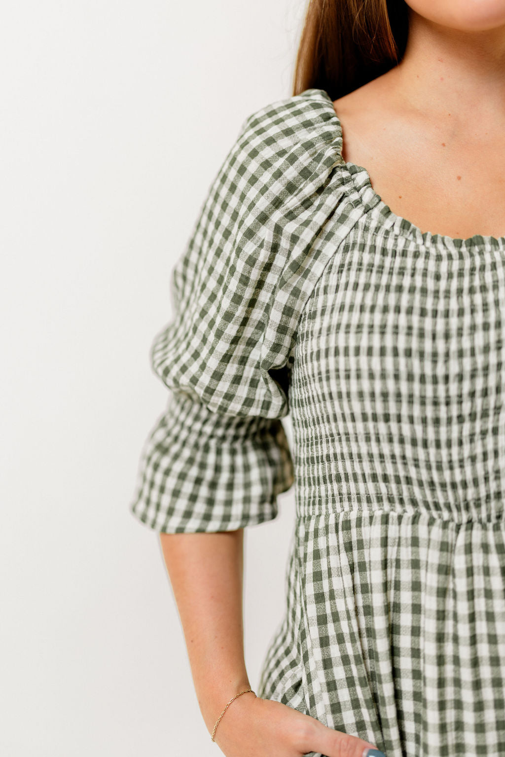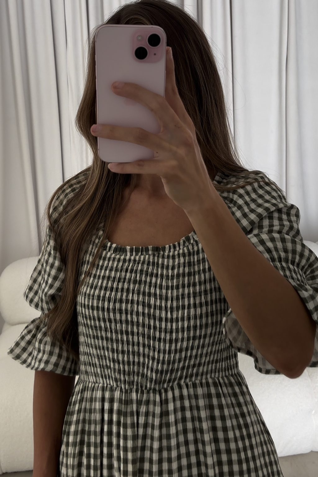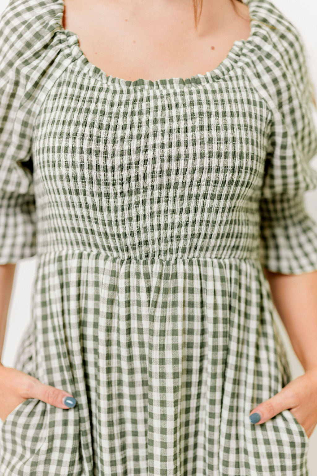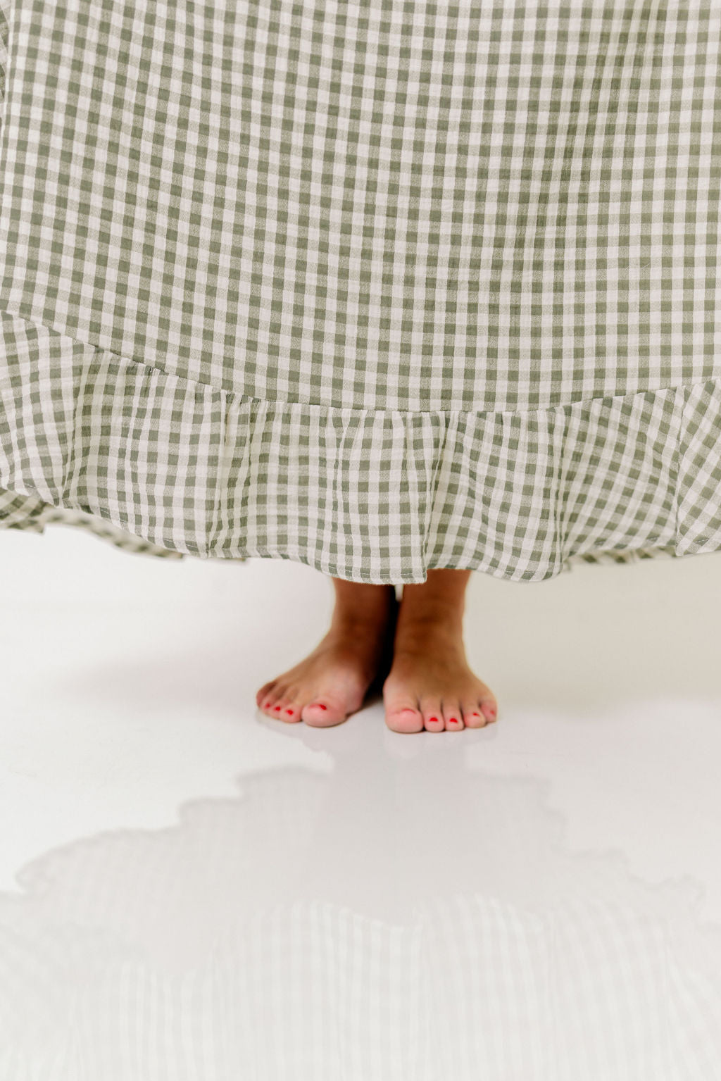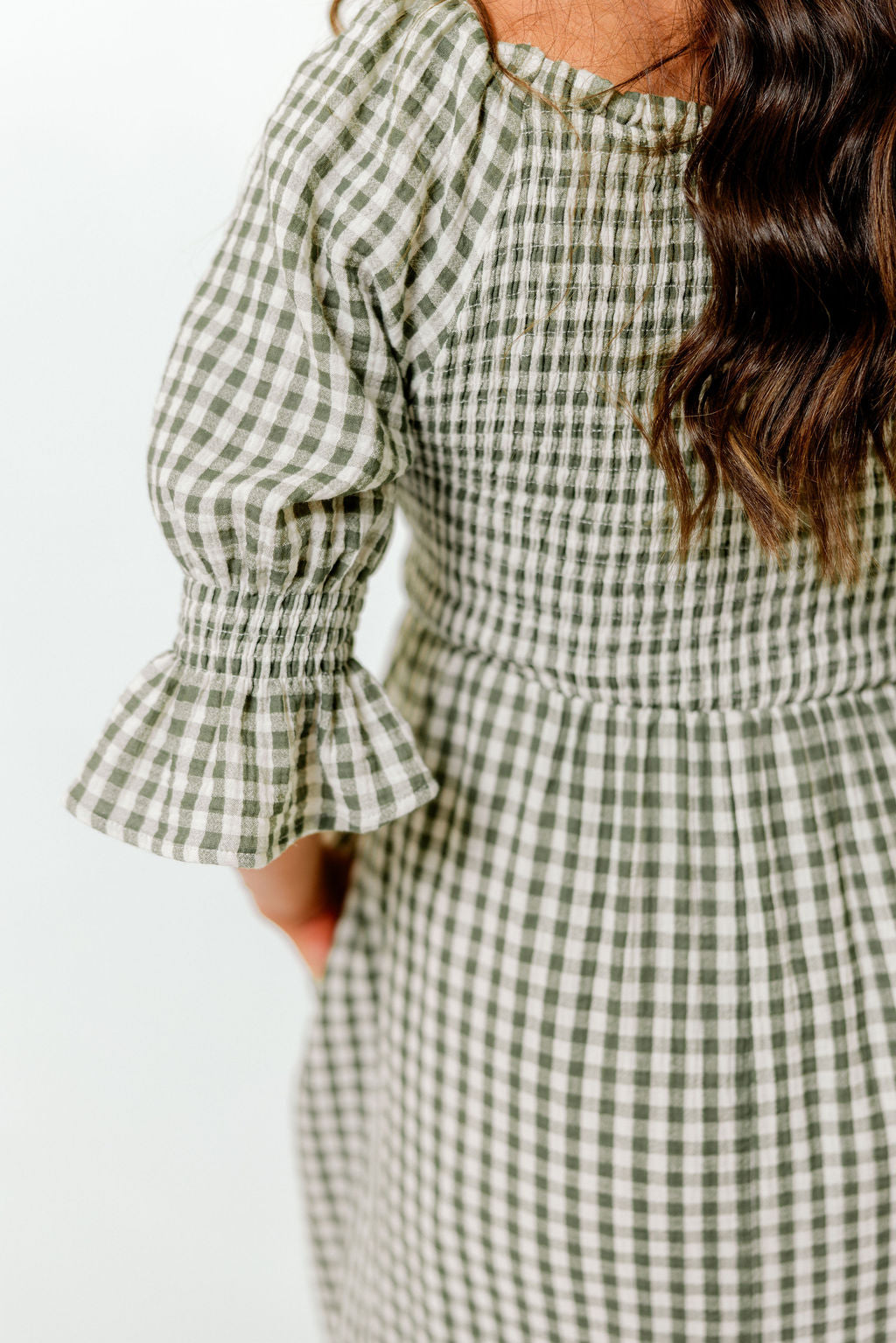Sienna 100% Cotton Puff Sleeve Maxi Dress in Forest Plaid - Bump Friendly