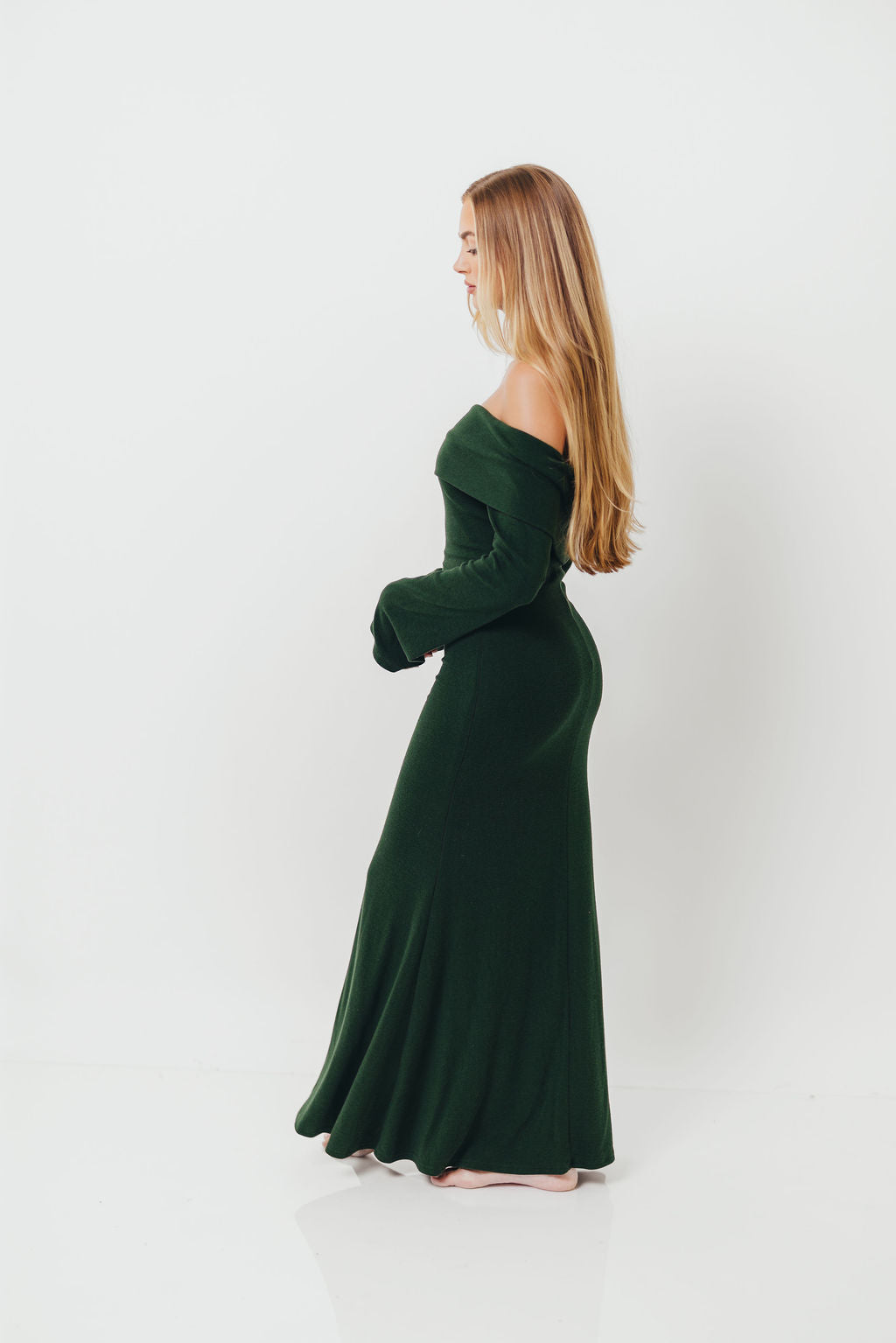 Monroe Maxi Dress with Long Sleeves in Hunter Green- Bump Friendly *Final Sale*