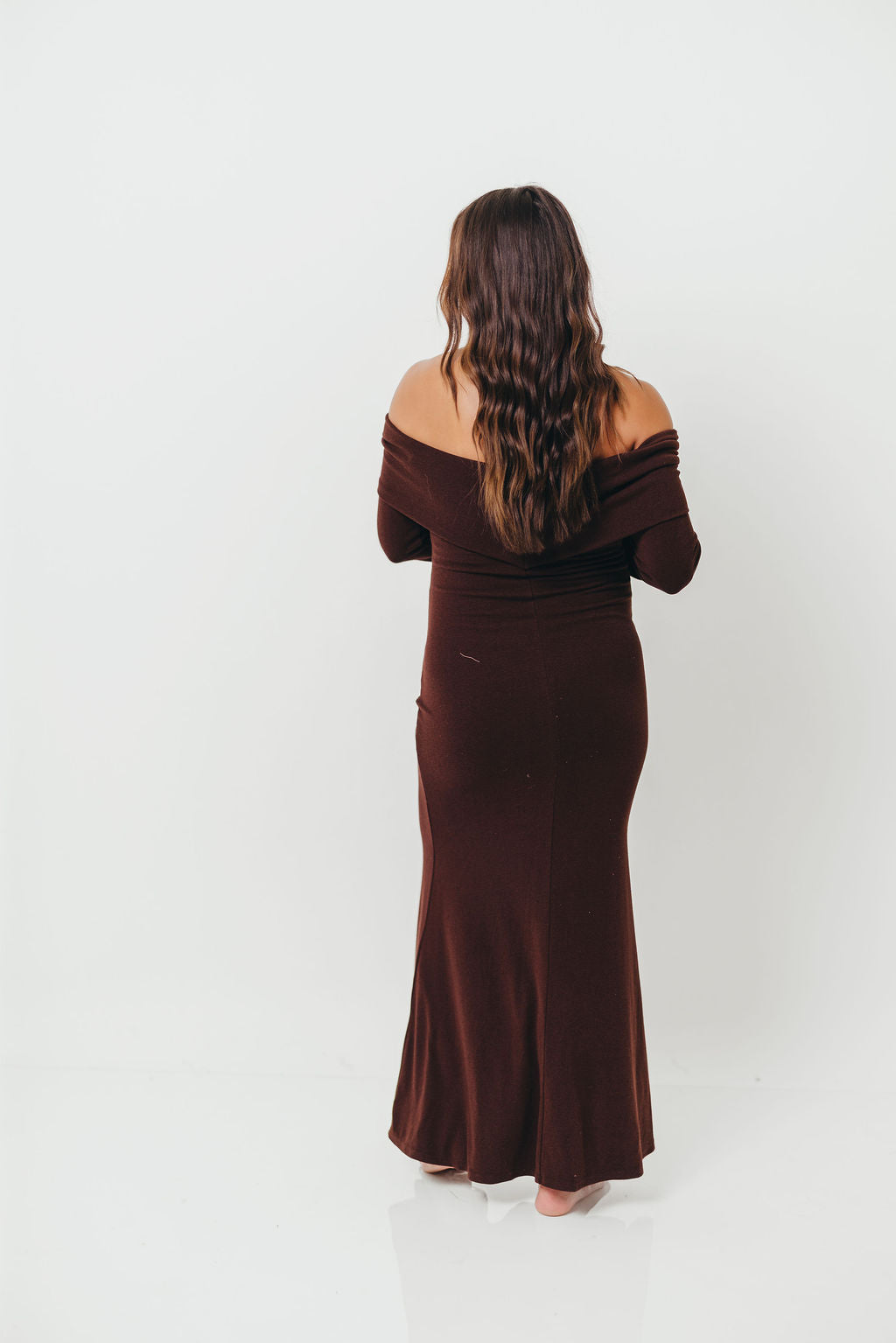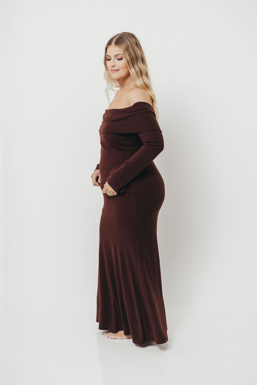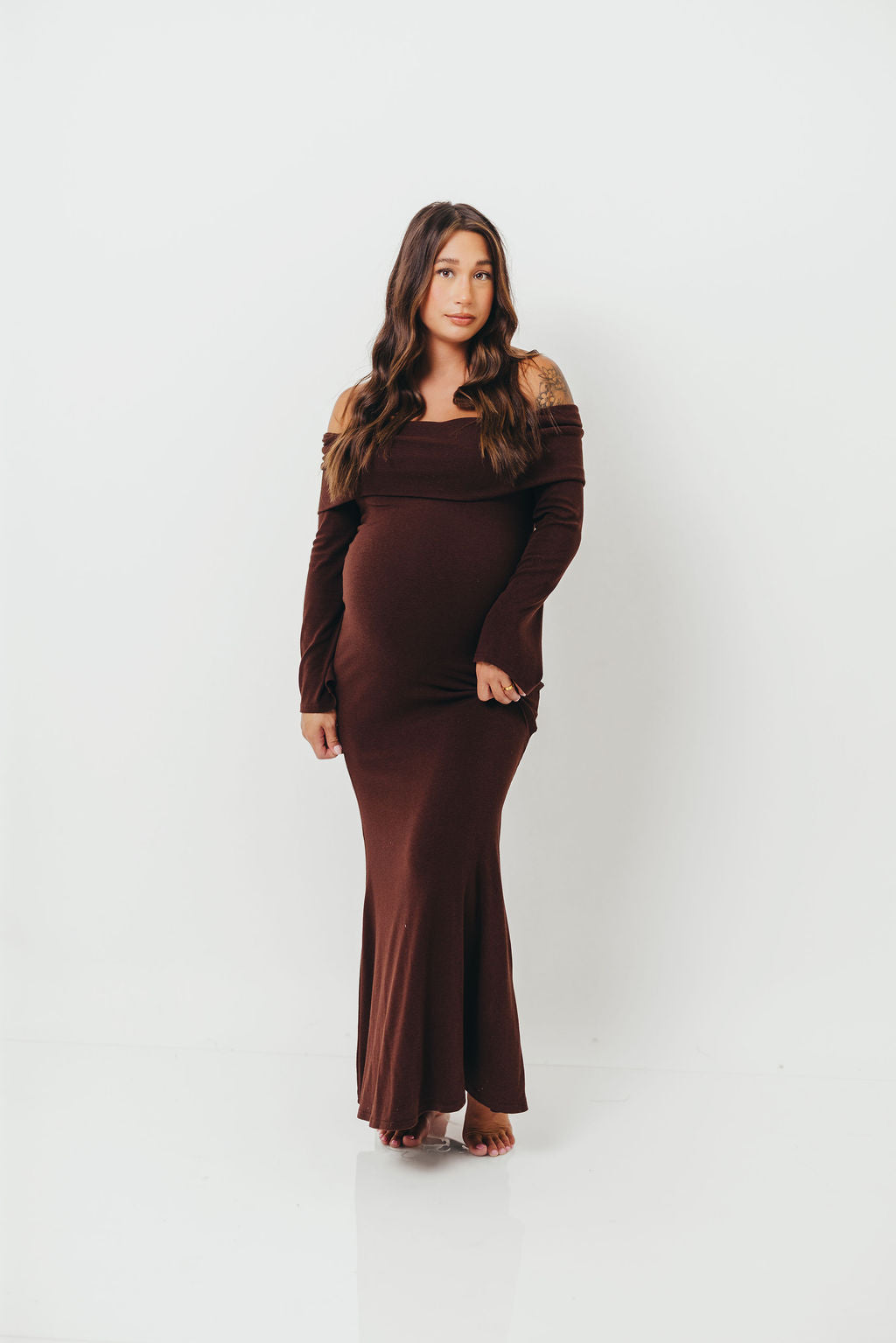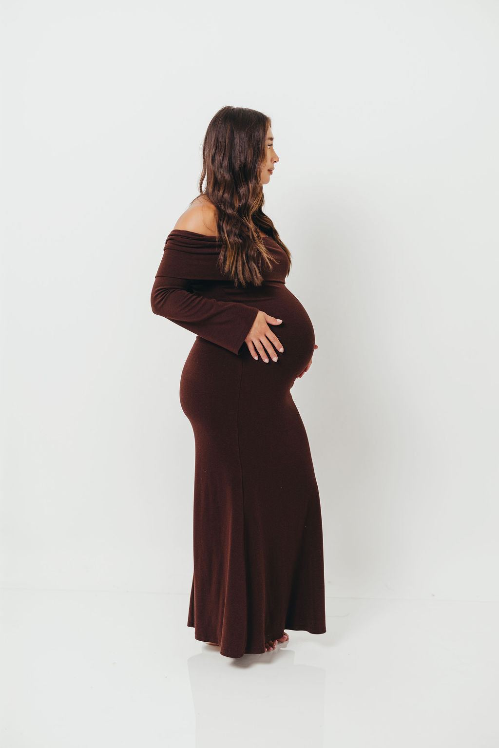 Monroe Maxi Dress with Long Sleeves in Chocolate Brown- Bump Friendly *Final Sale*
