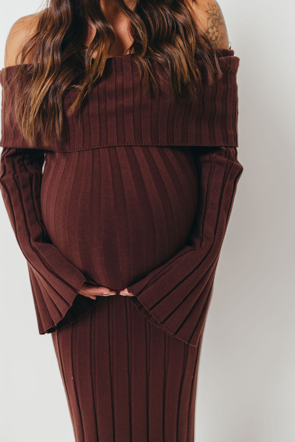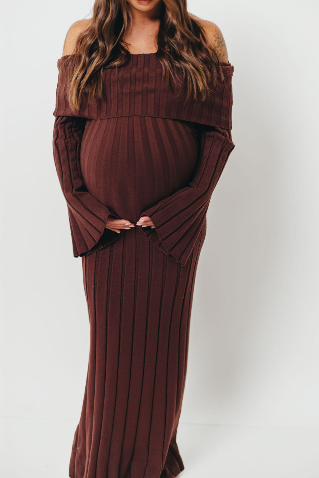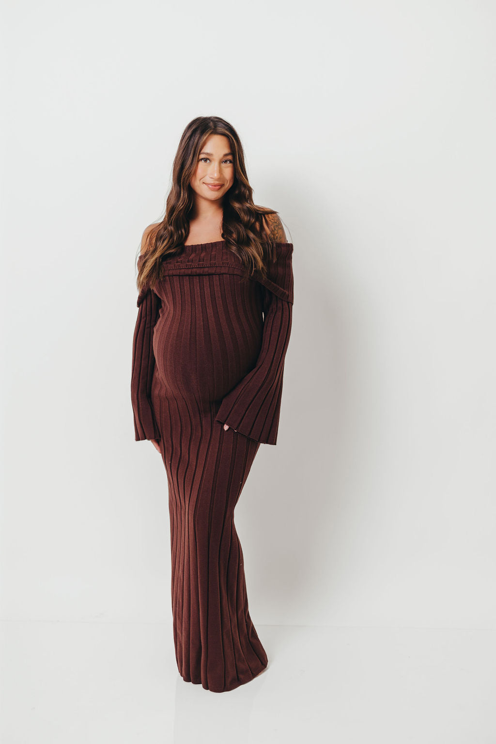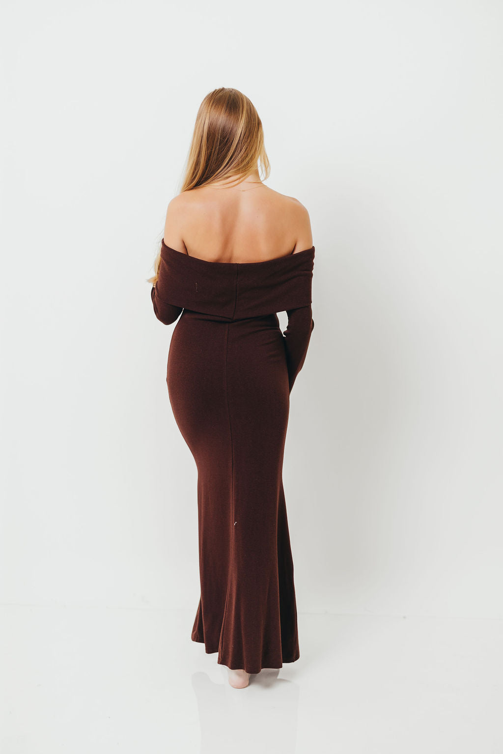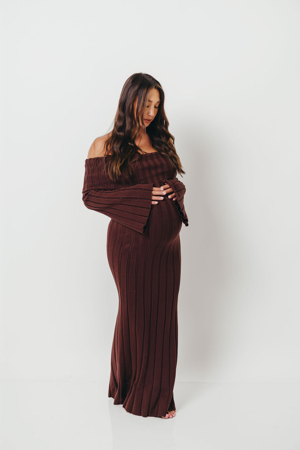 Monroe Maxi Dress with Long Sleeves in Chocolate Brown- Bump Friendly *Final Sale*