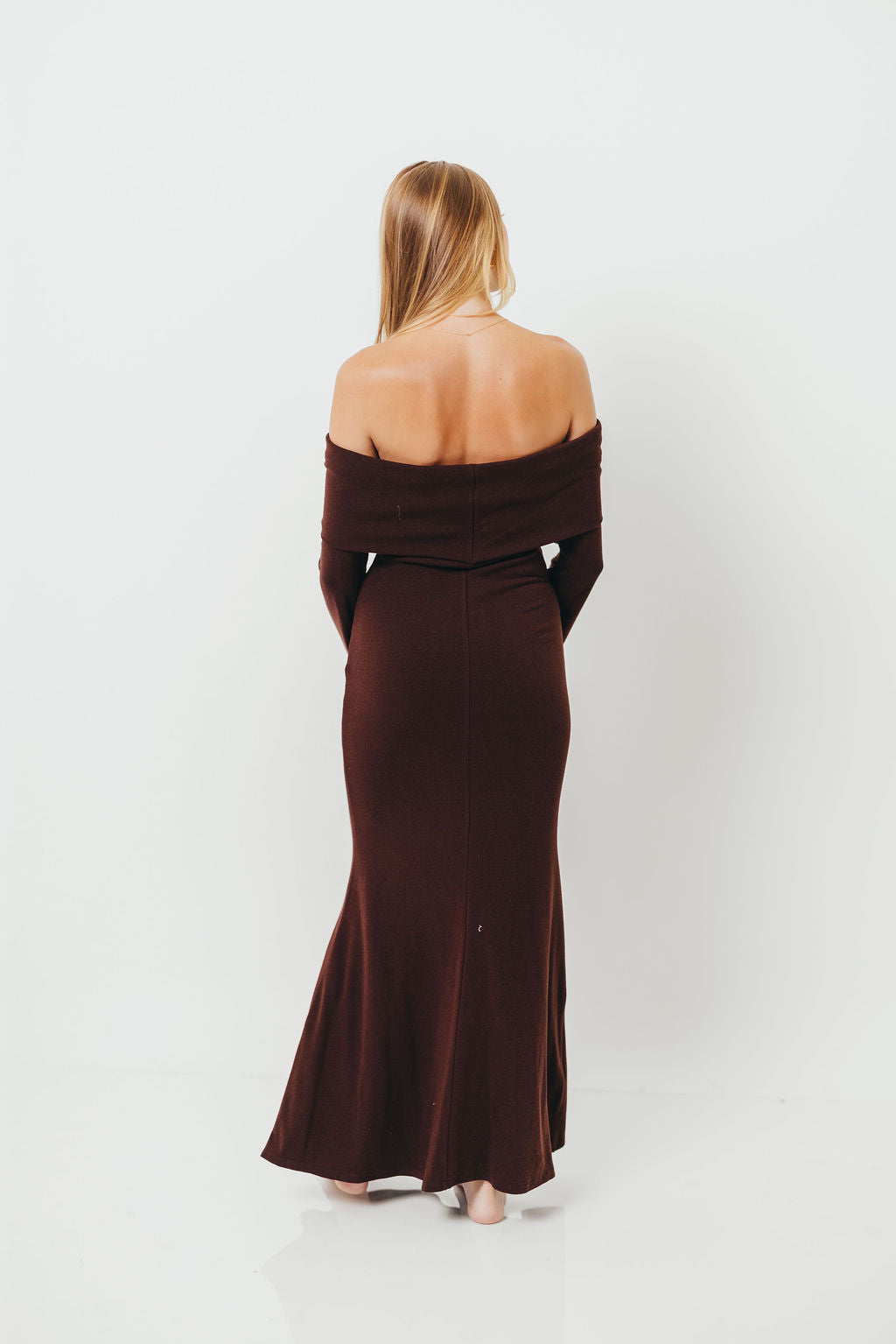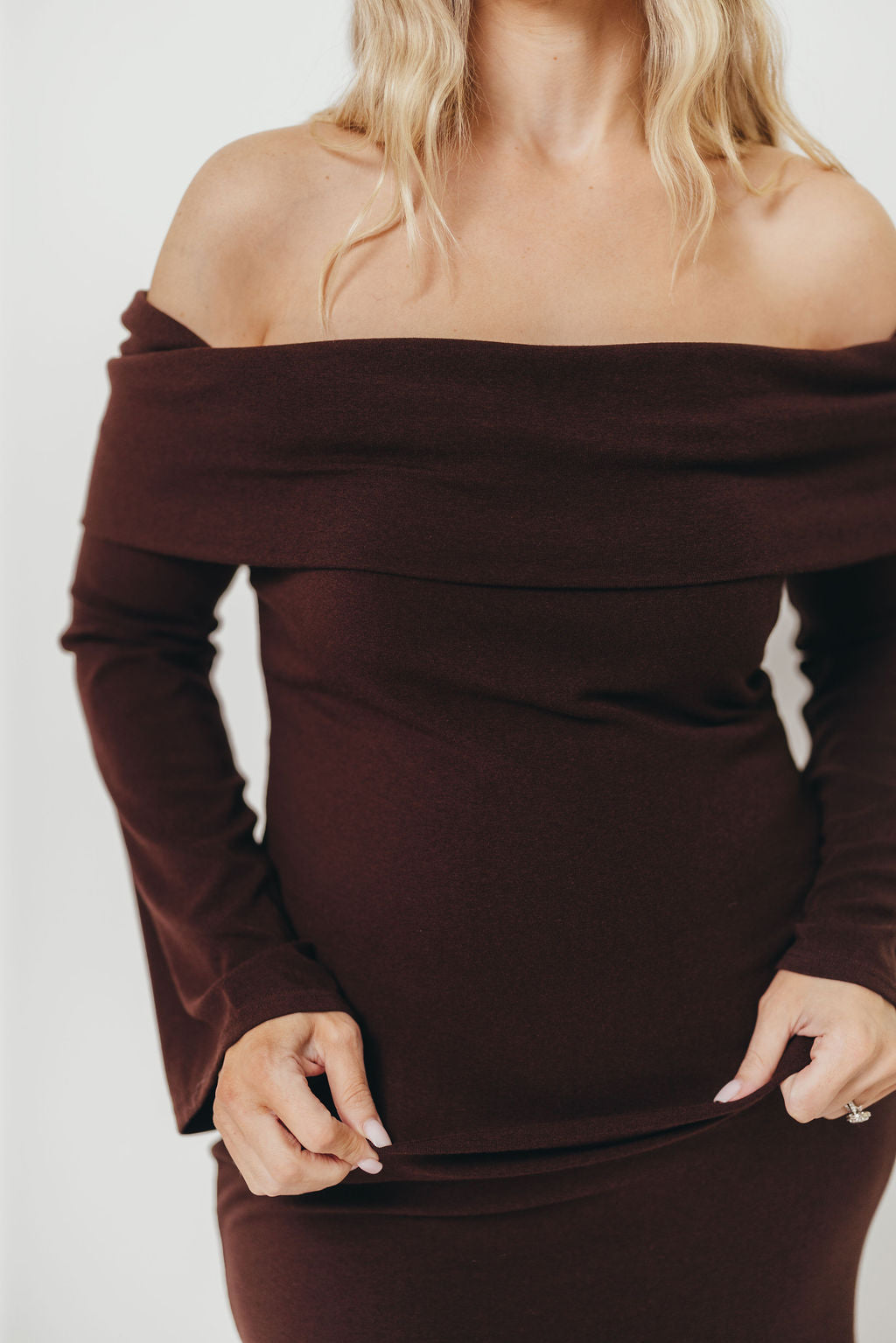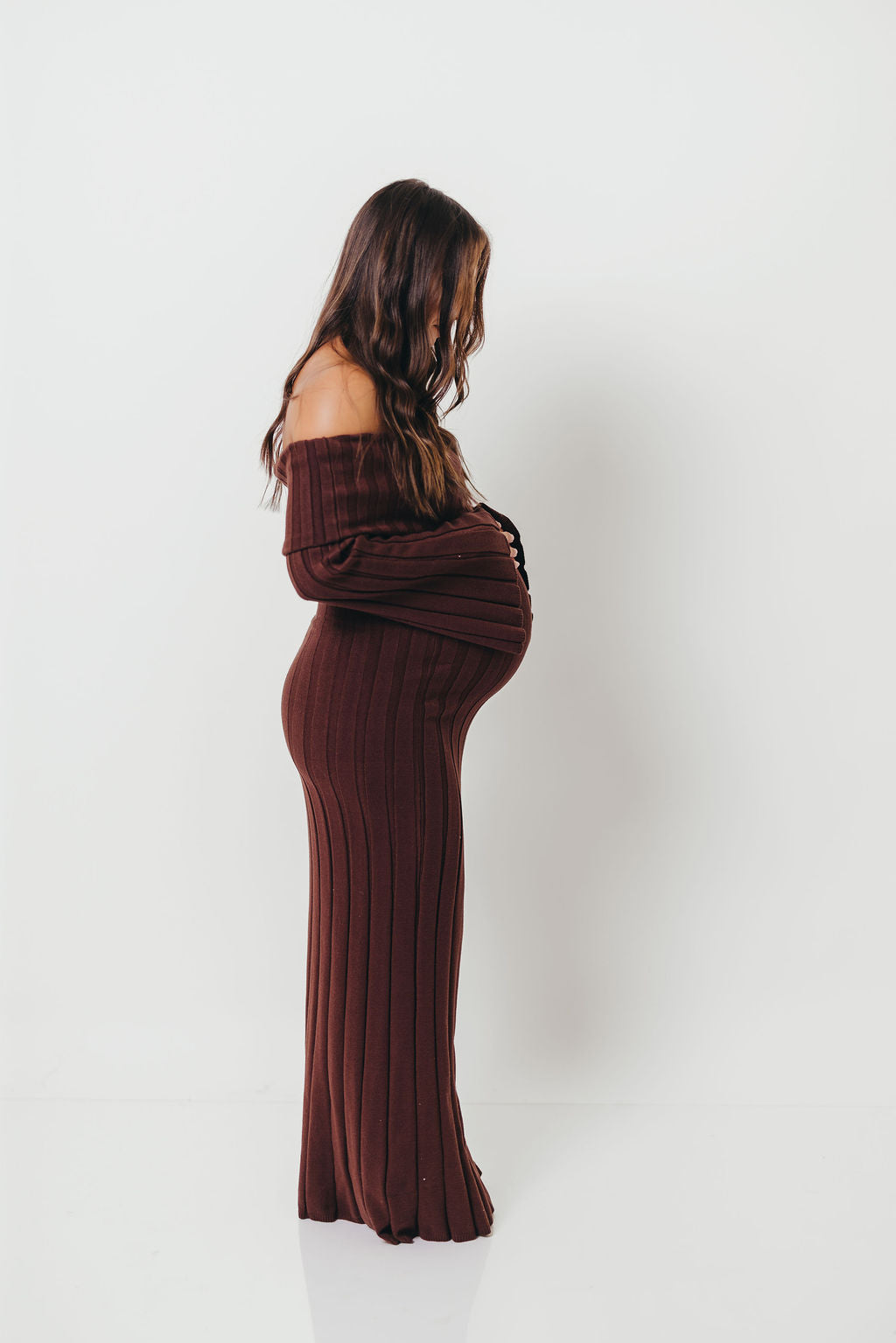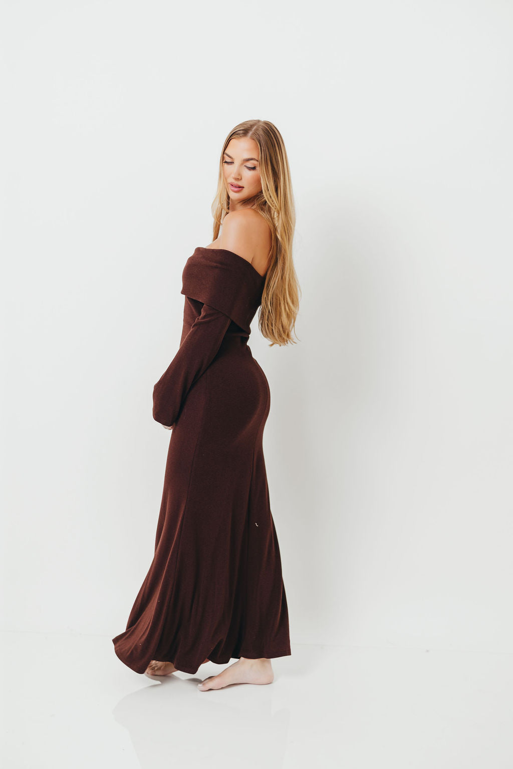 Monroe Maxi Dress with Long Sleeves in Chocolate Brown- Bump Friendly *Final Sale*