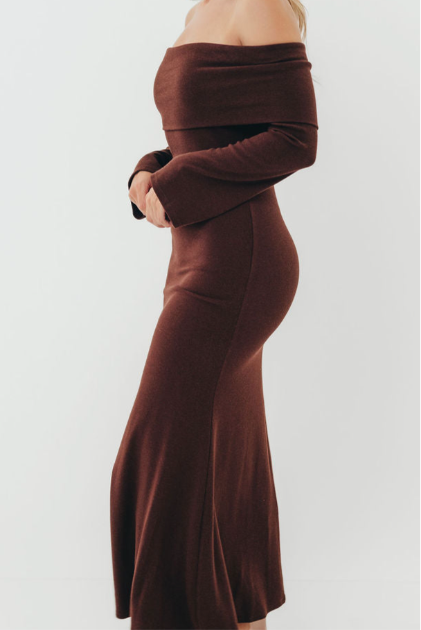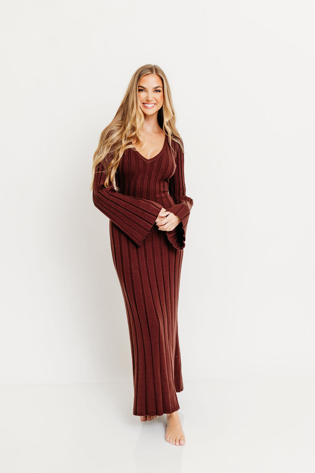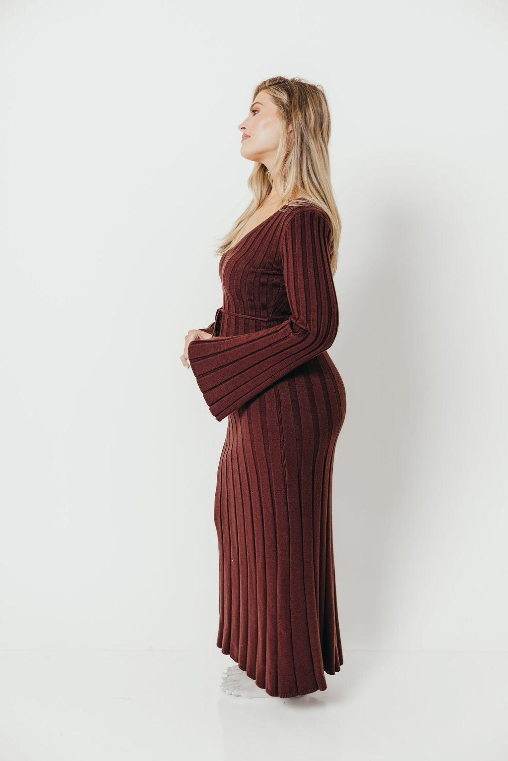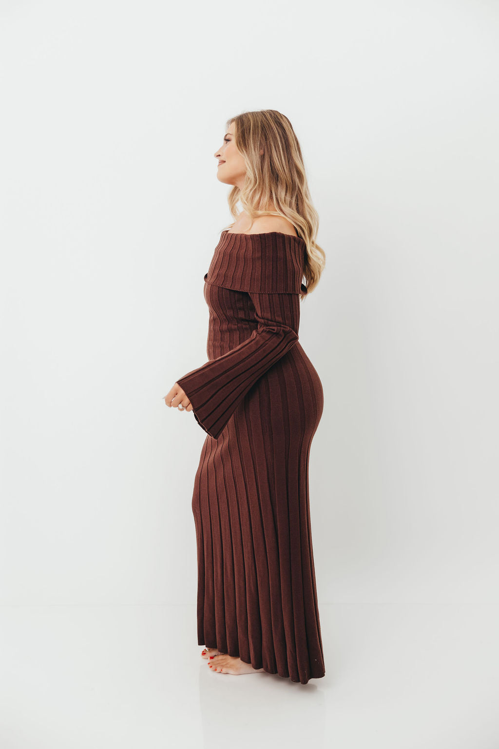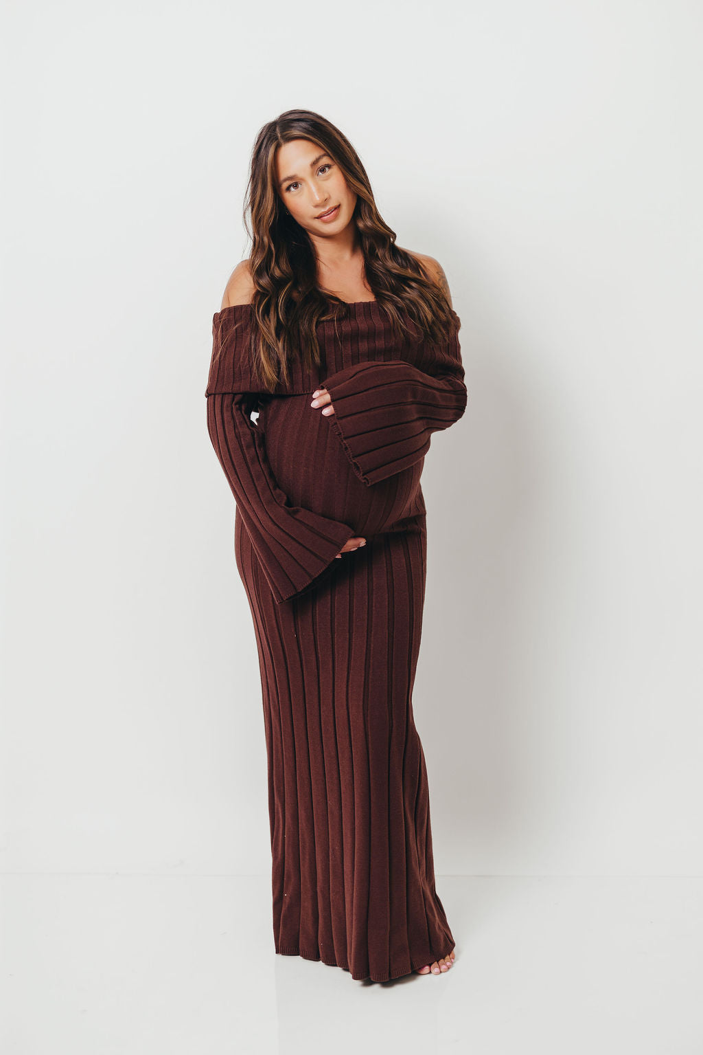 Monroe Maxi Dress with Long Sleeves in Chocolate Brown- Bump Friendly *Final Sale*