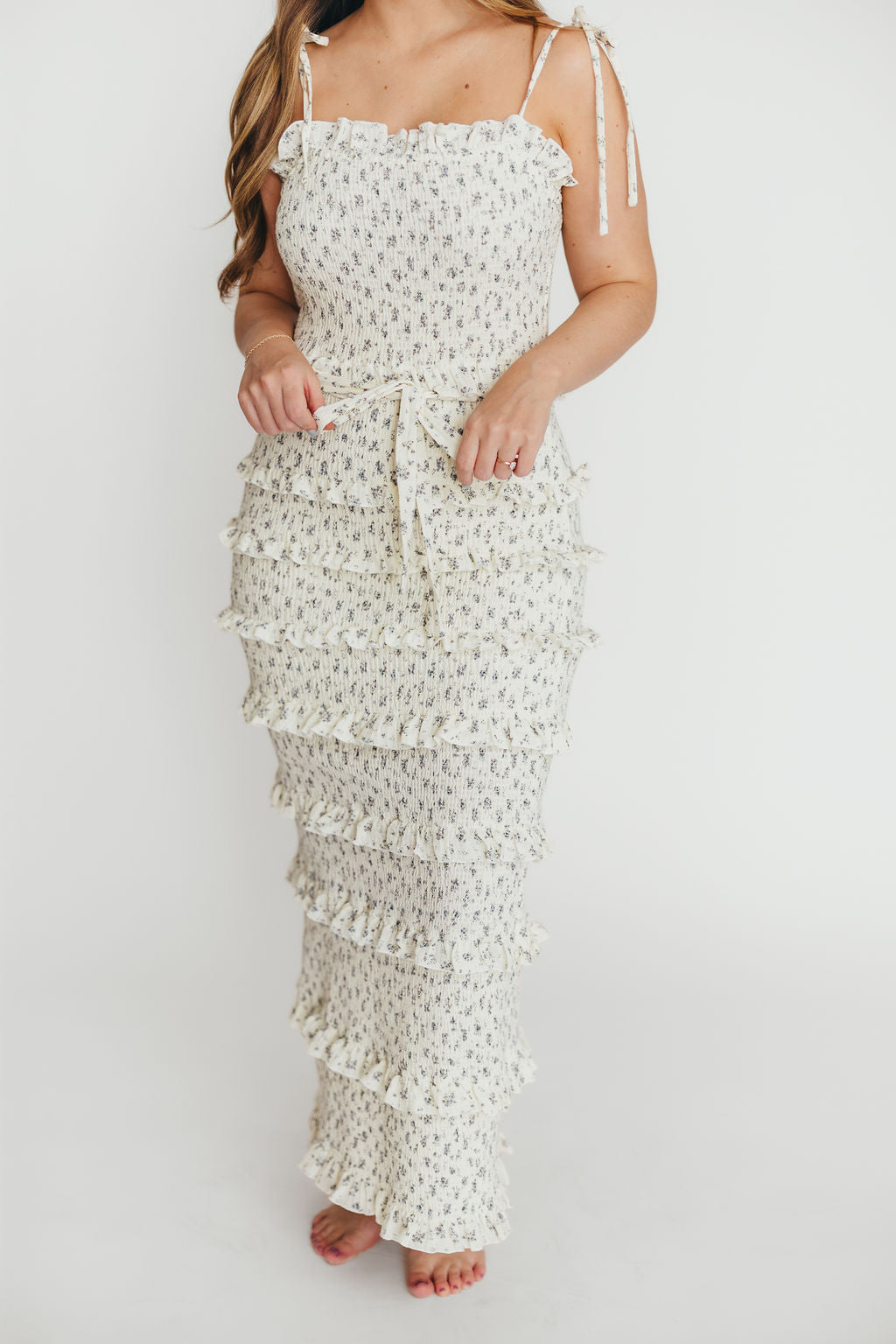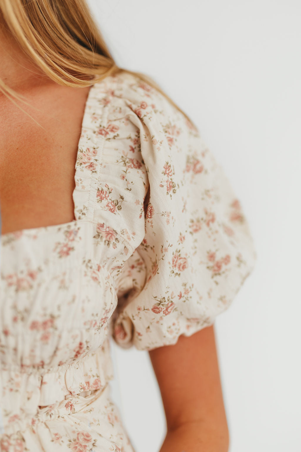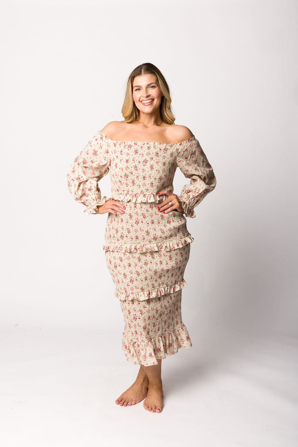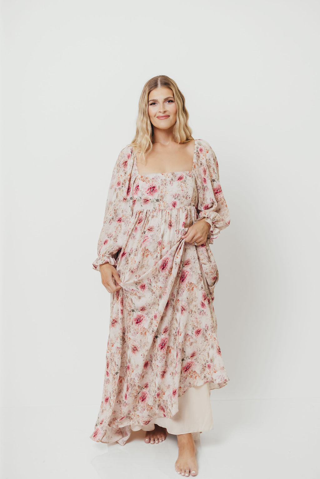 Mona Maxi Dress with Smocking in Pink/Beige Multi Floral - Bump Friendly