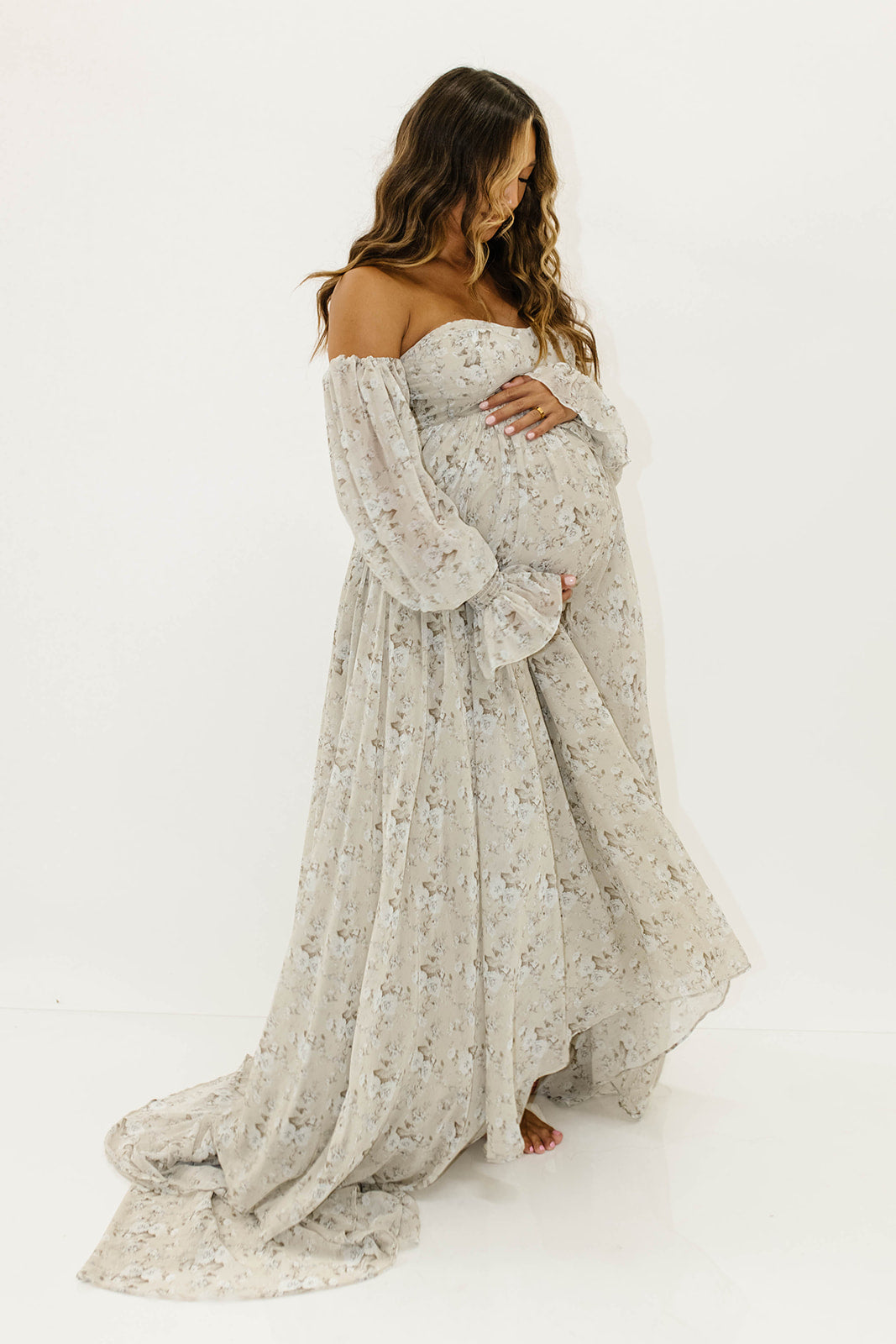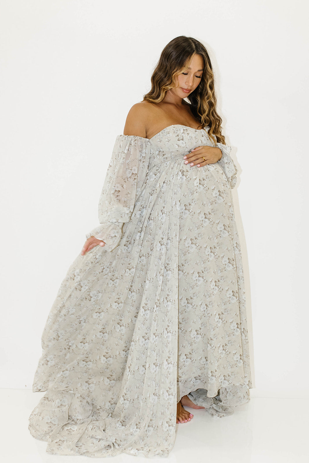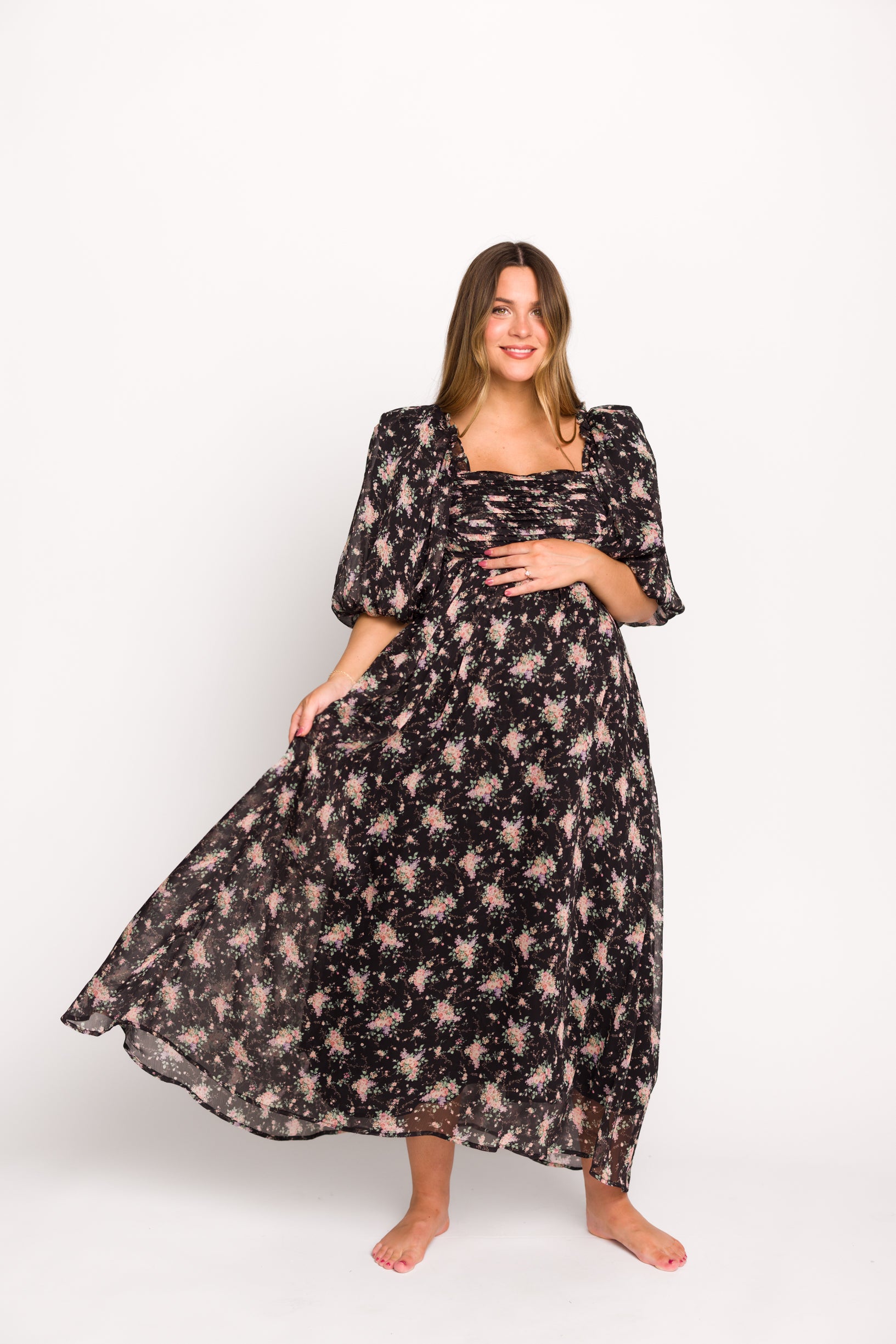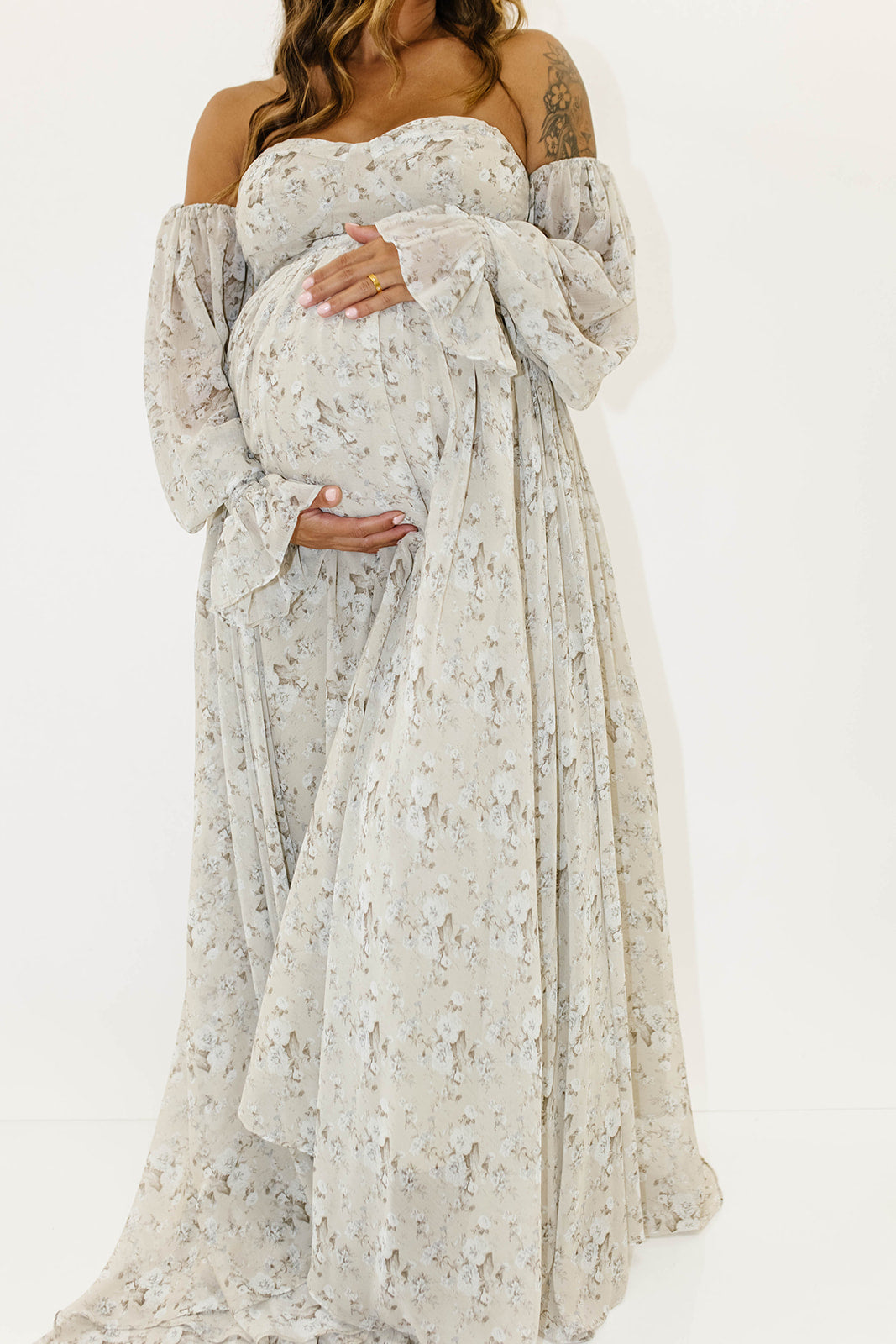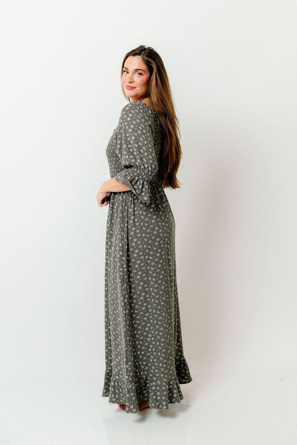 Harley Maxi Dress in Gray Floral - Bump Friendly *Final-Sale*