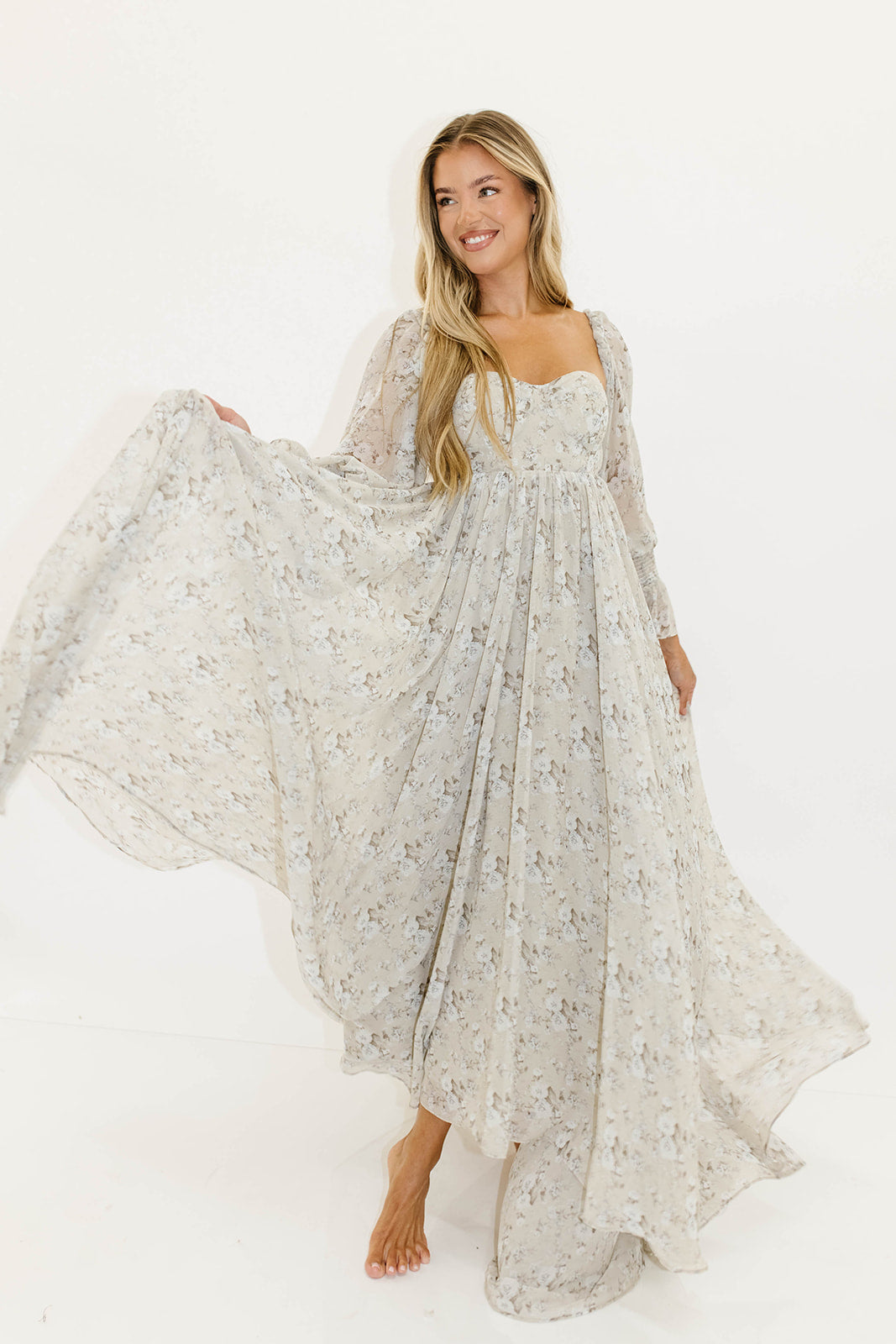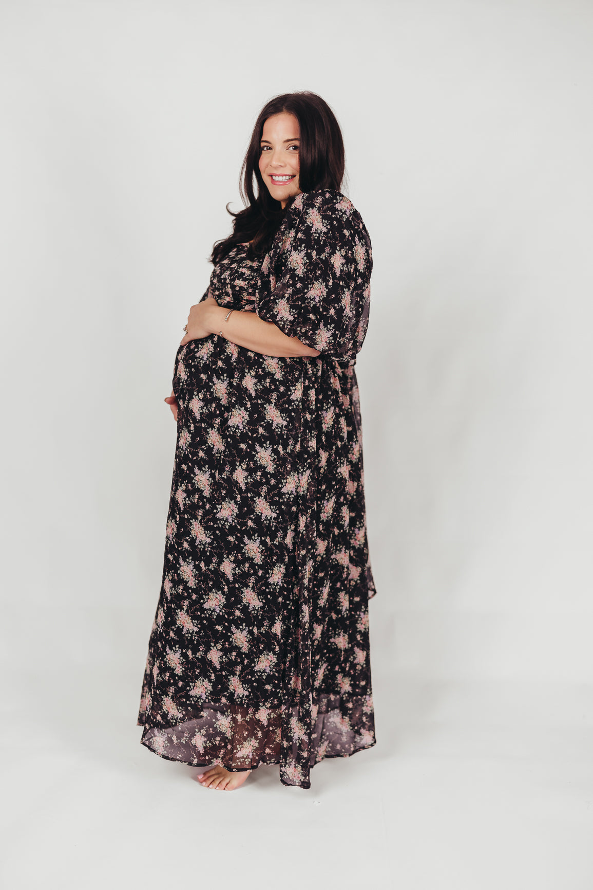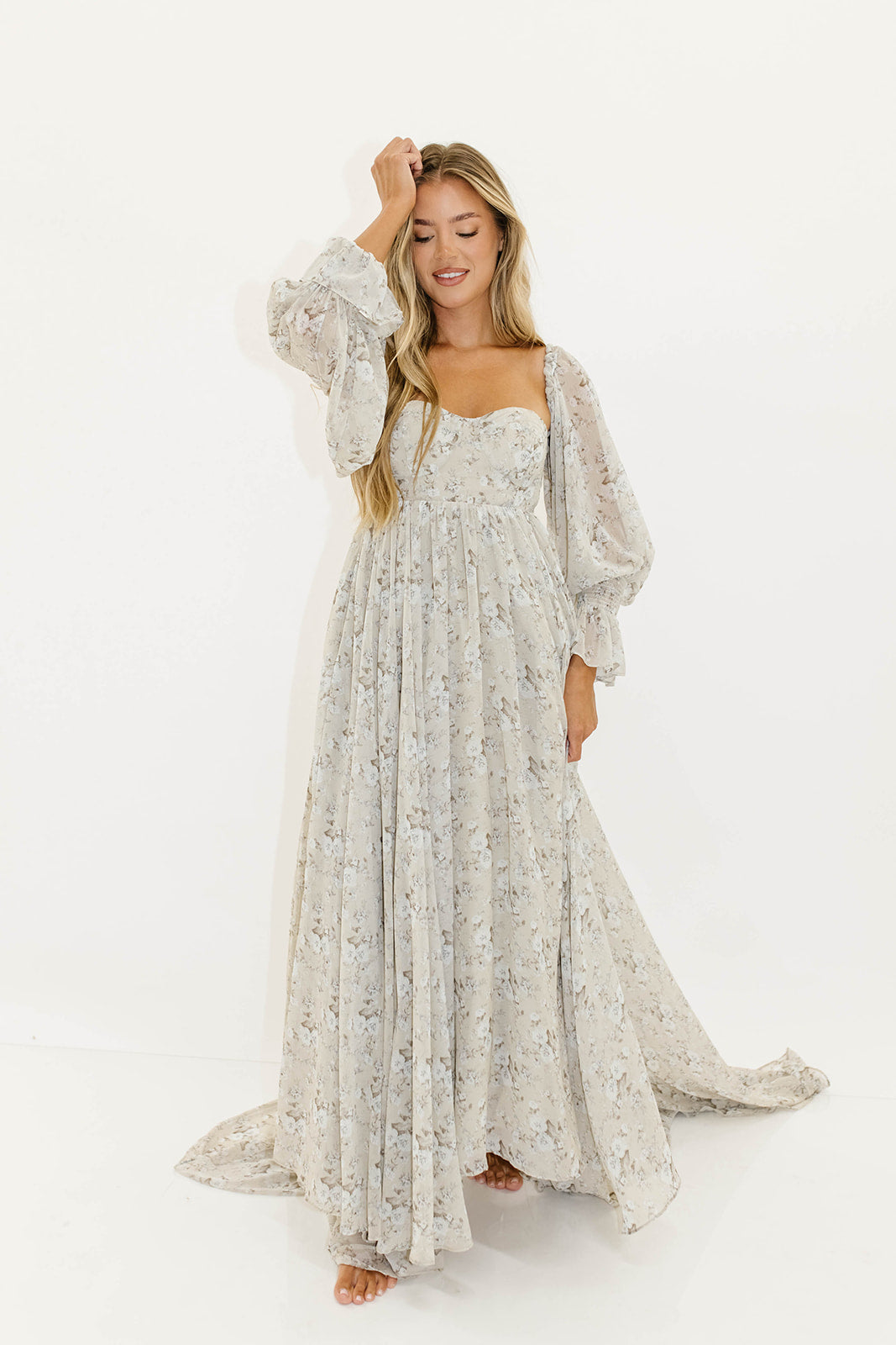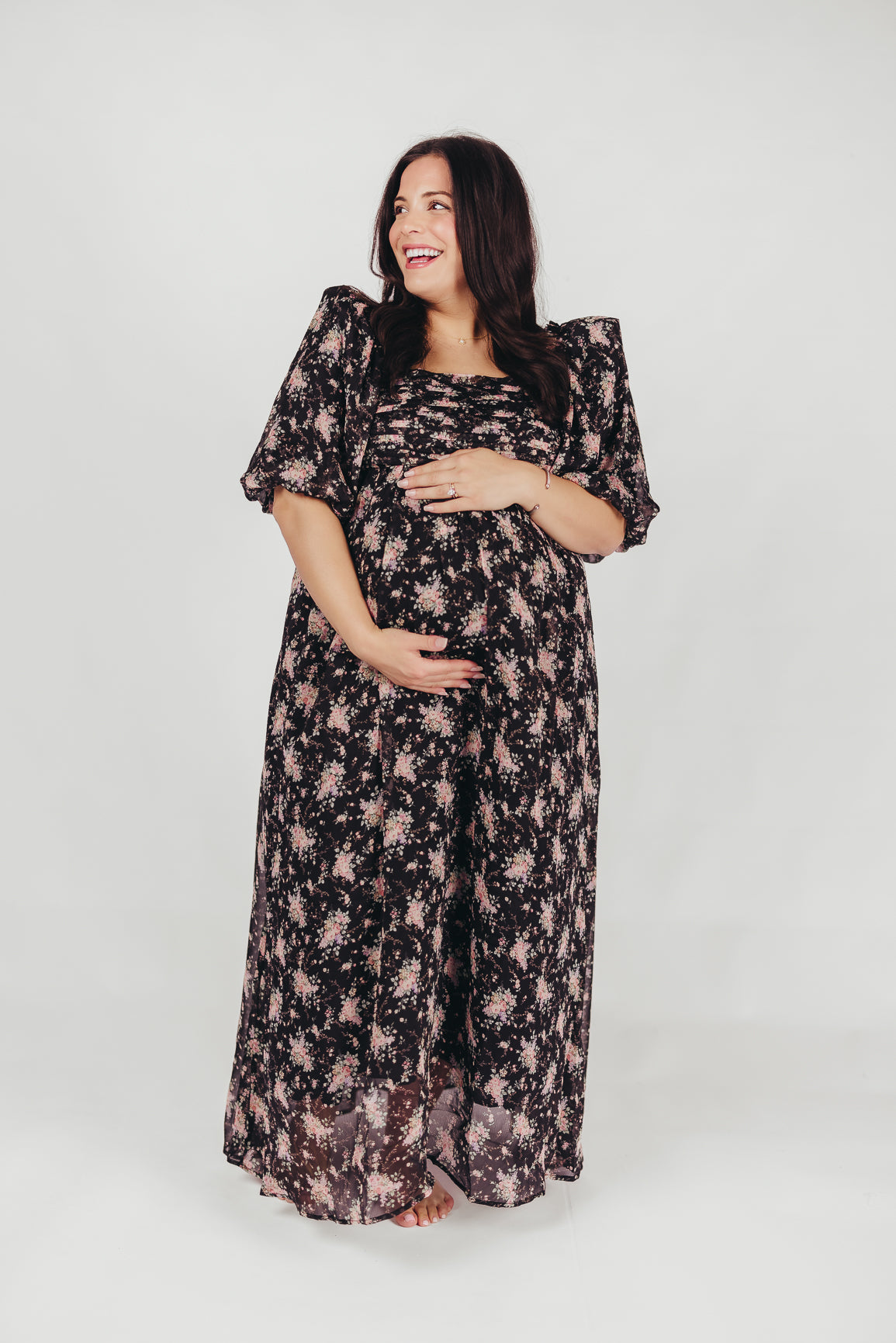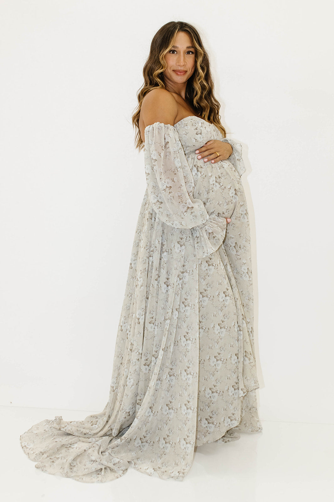 Harley Maxi Dress in Gray Floral - Bump Friendly *Final-Sale*