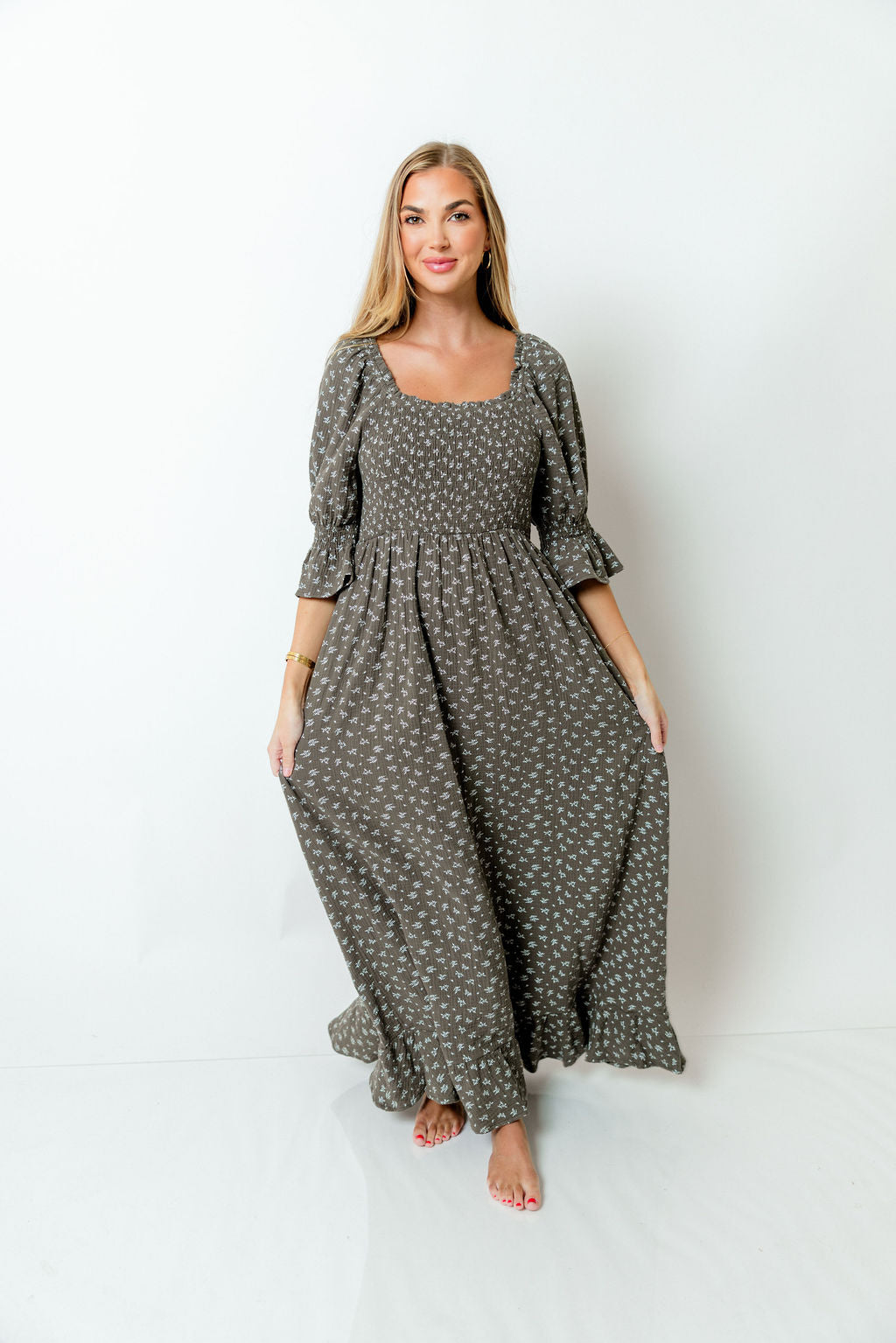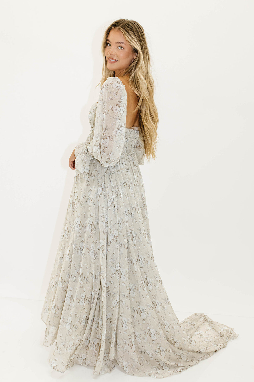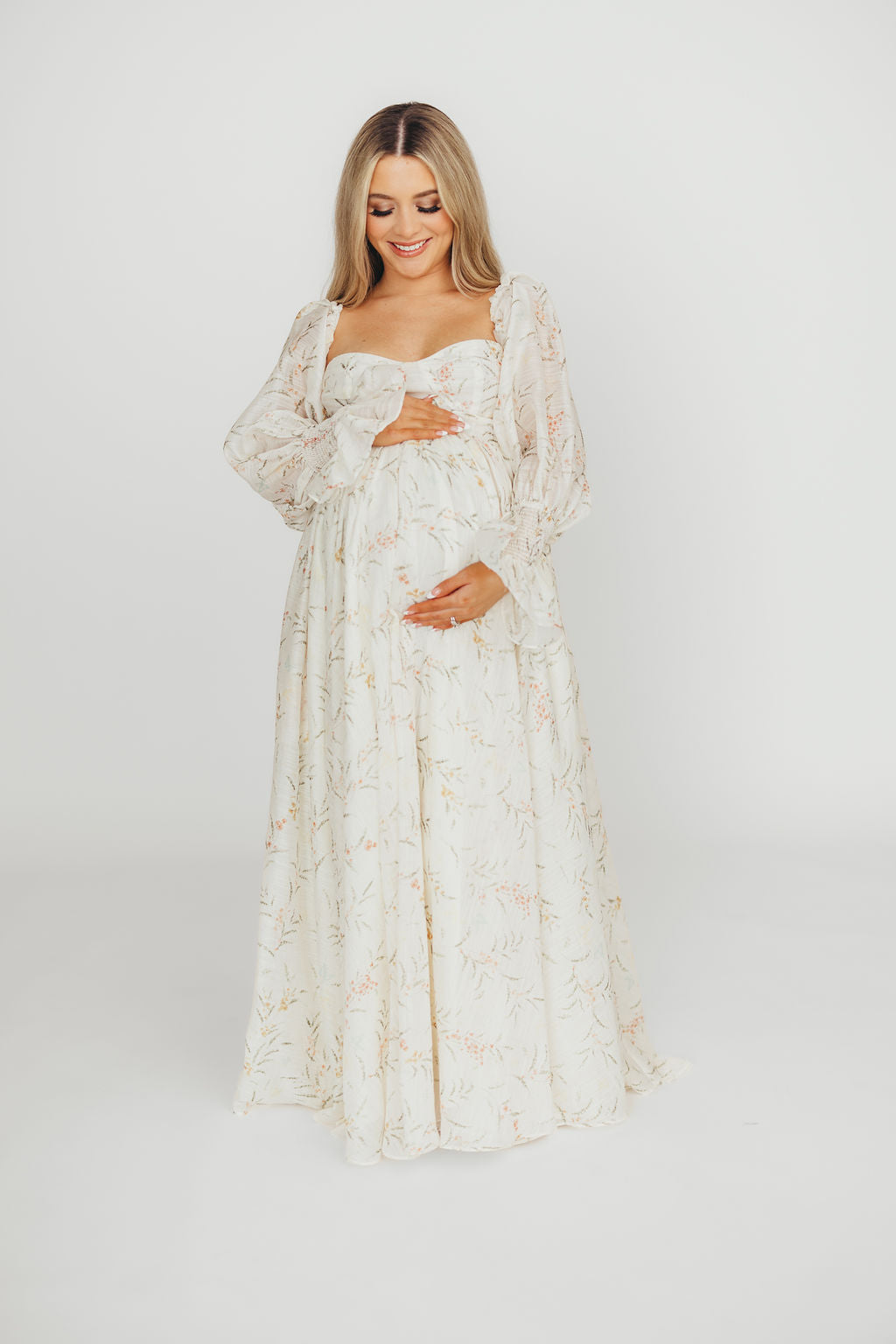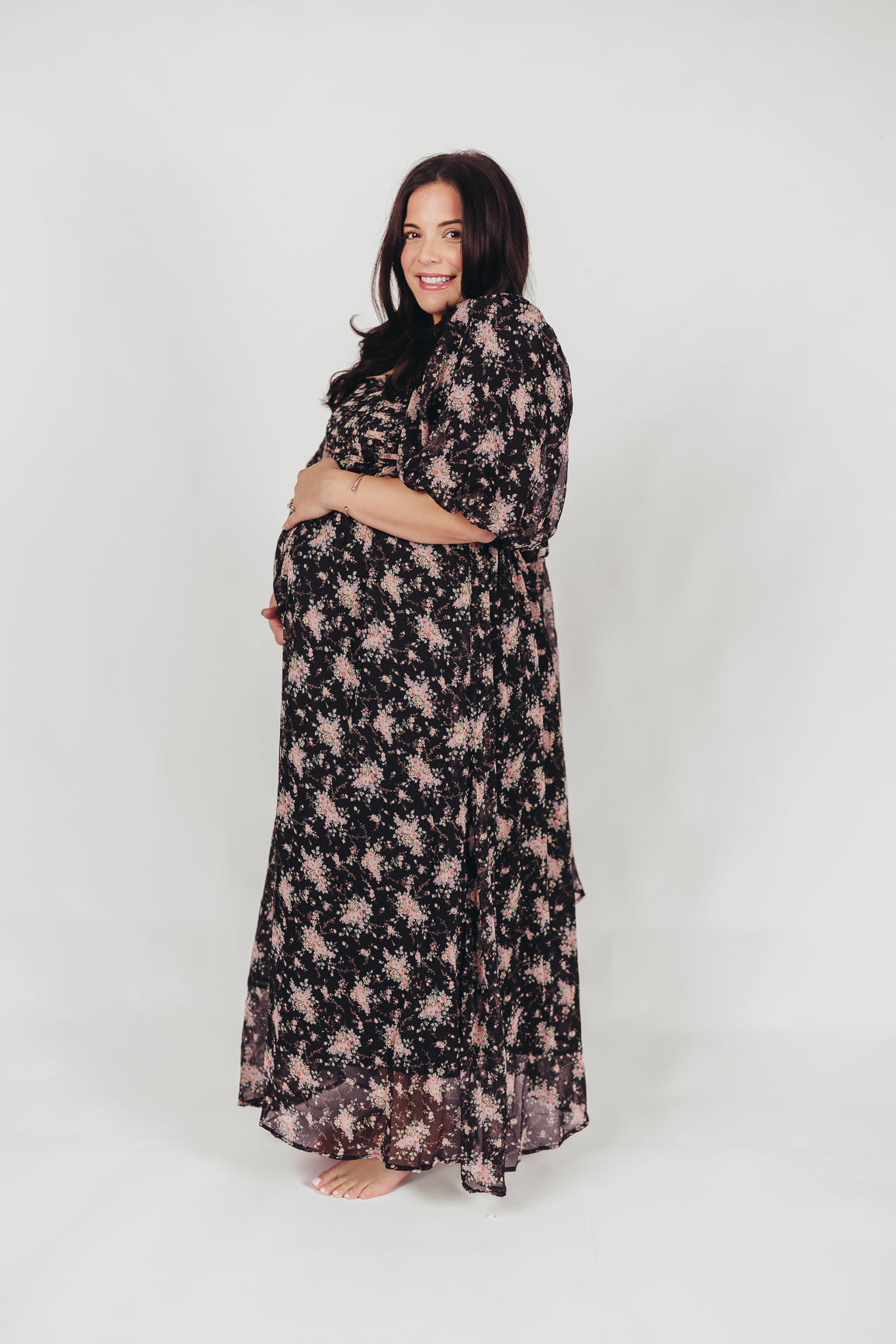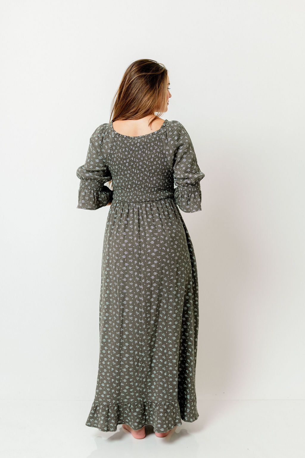 Harley Maxi Dress in Gray Floral - Bump Friendly *Final-Sale*
