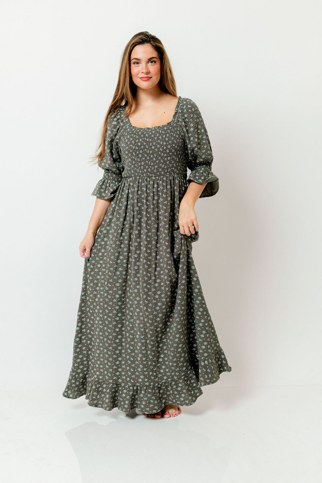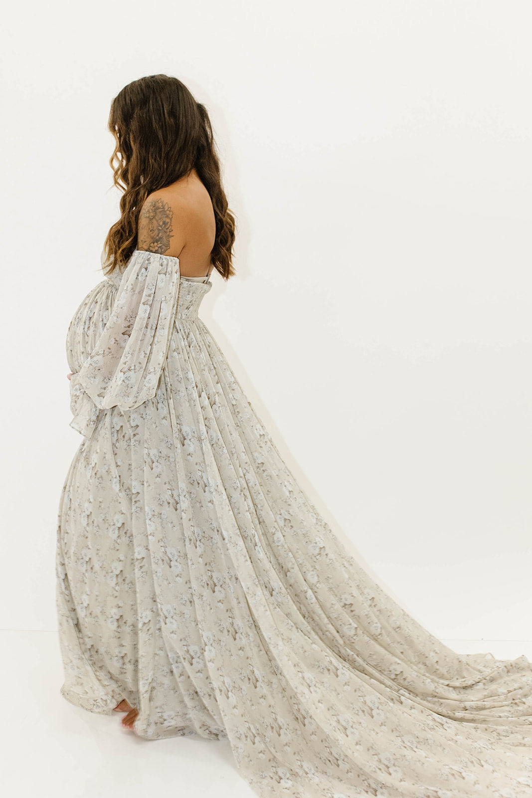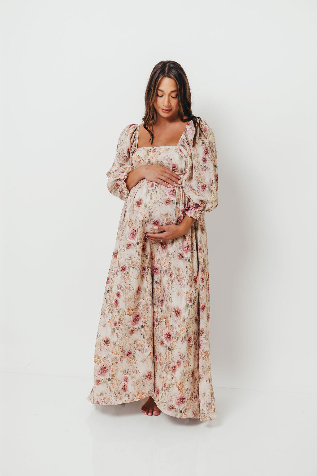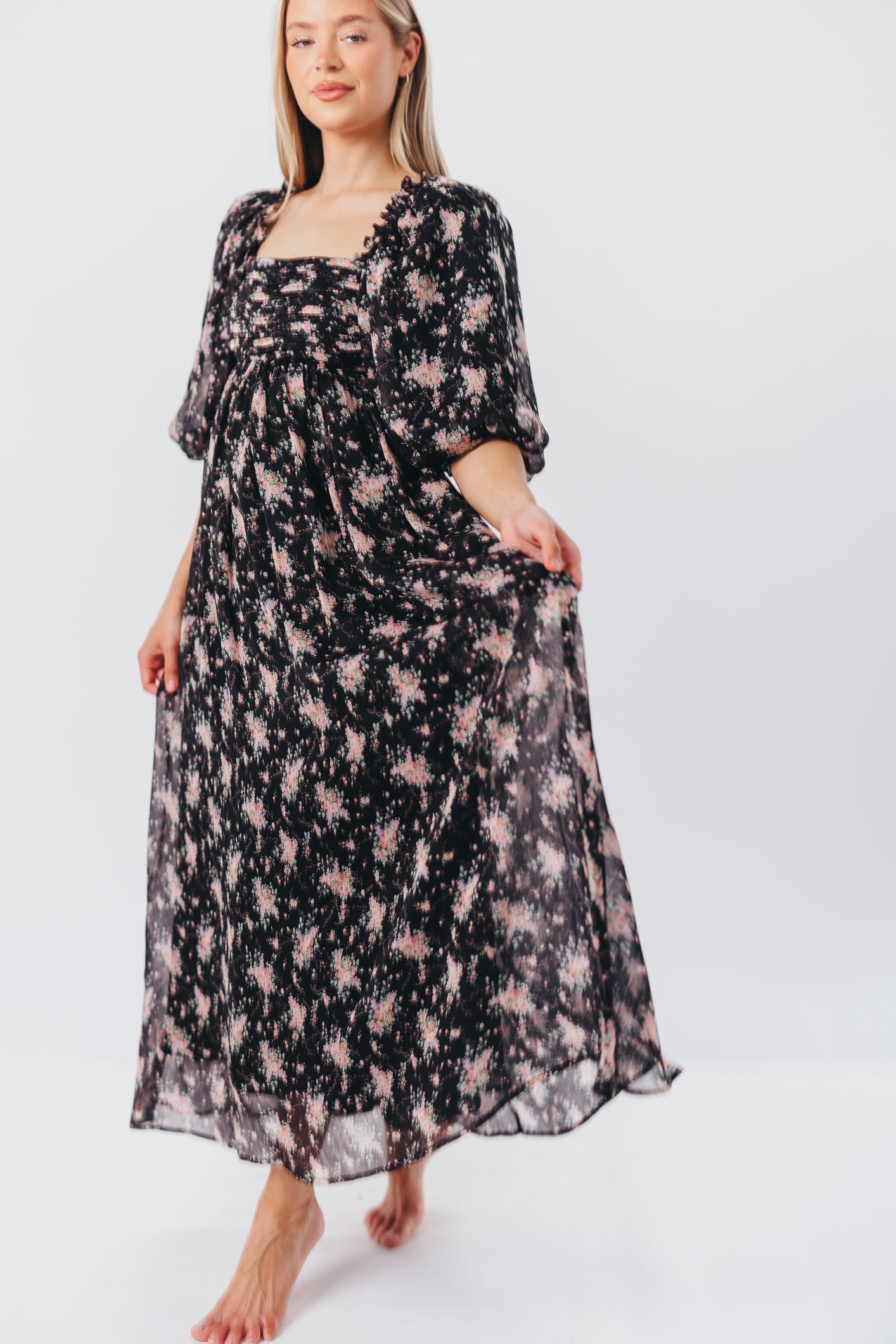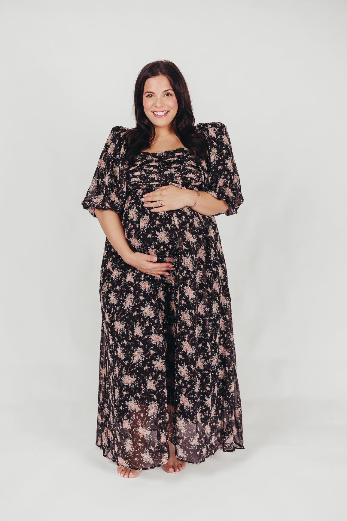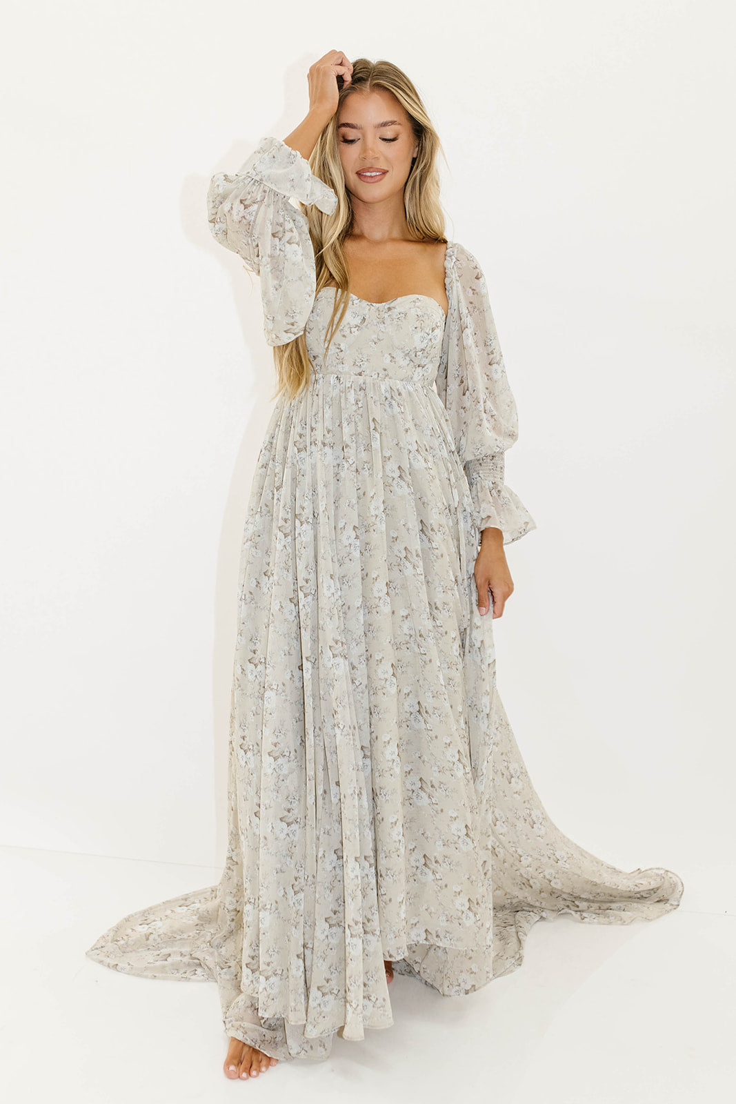 Harley Maxi Dress in Gray Floral - Bump Friendly *Final-Sale*