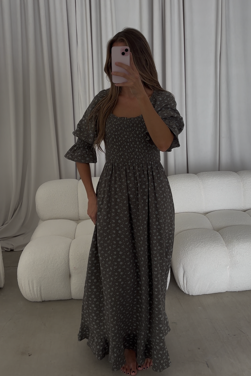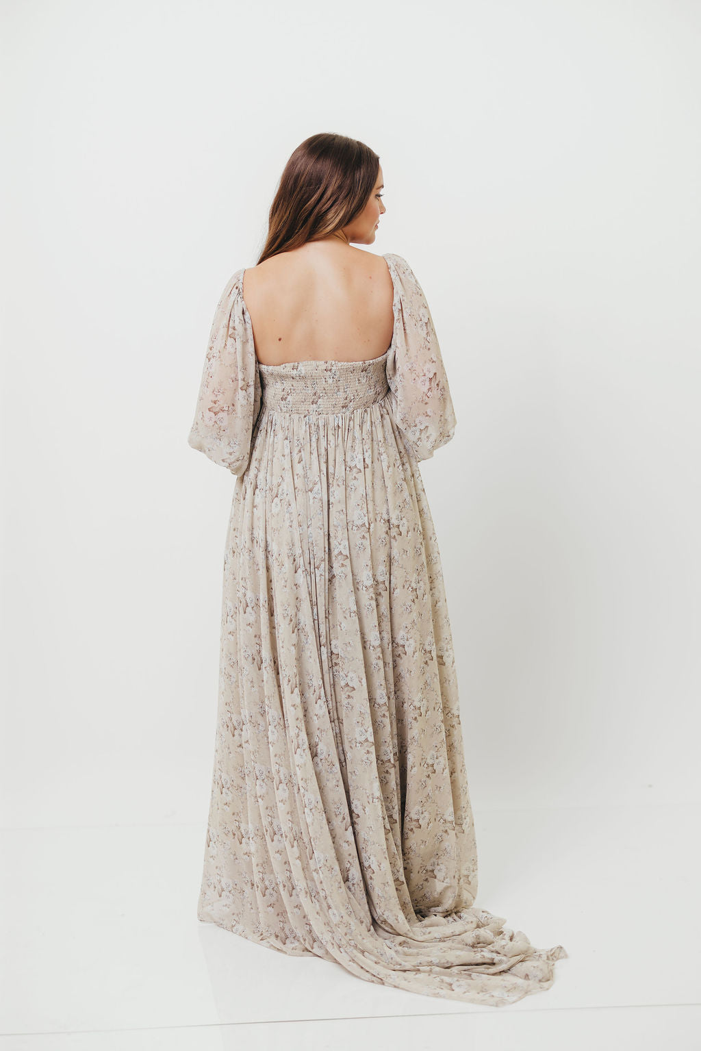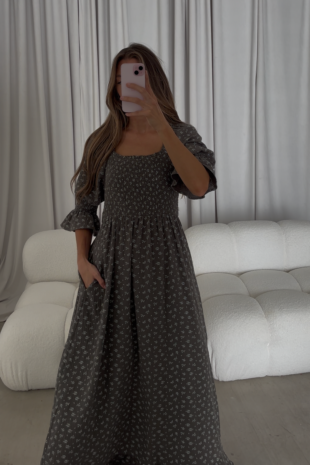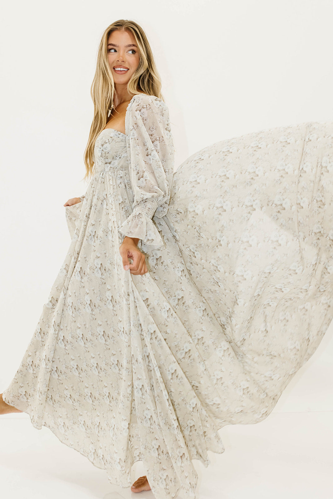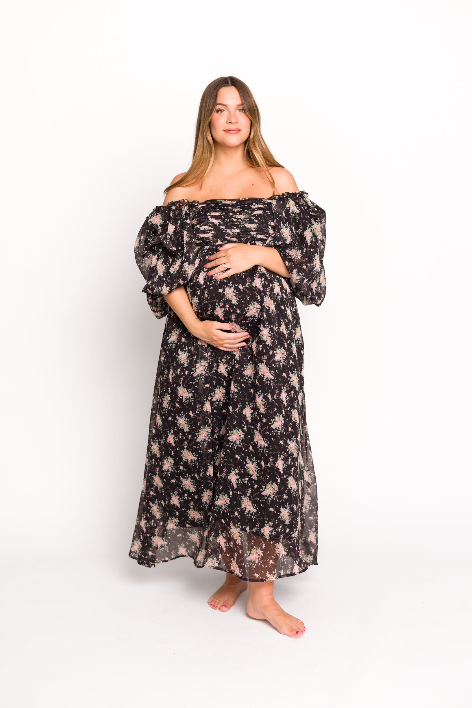 Harley Maxi Dress in Gray Floral - Bump Friendly *Final-Sale*