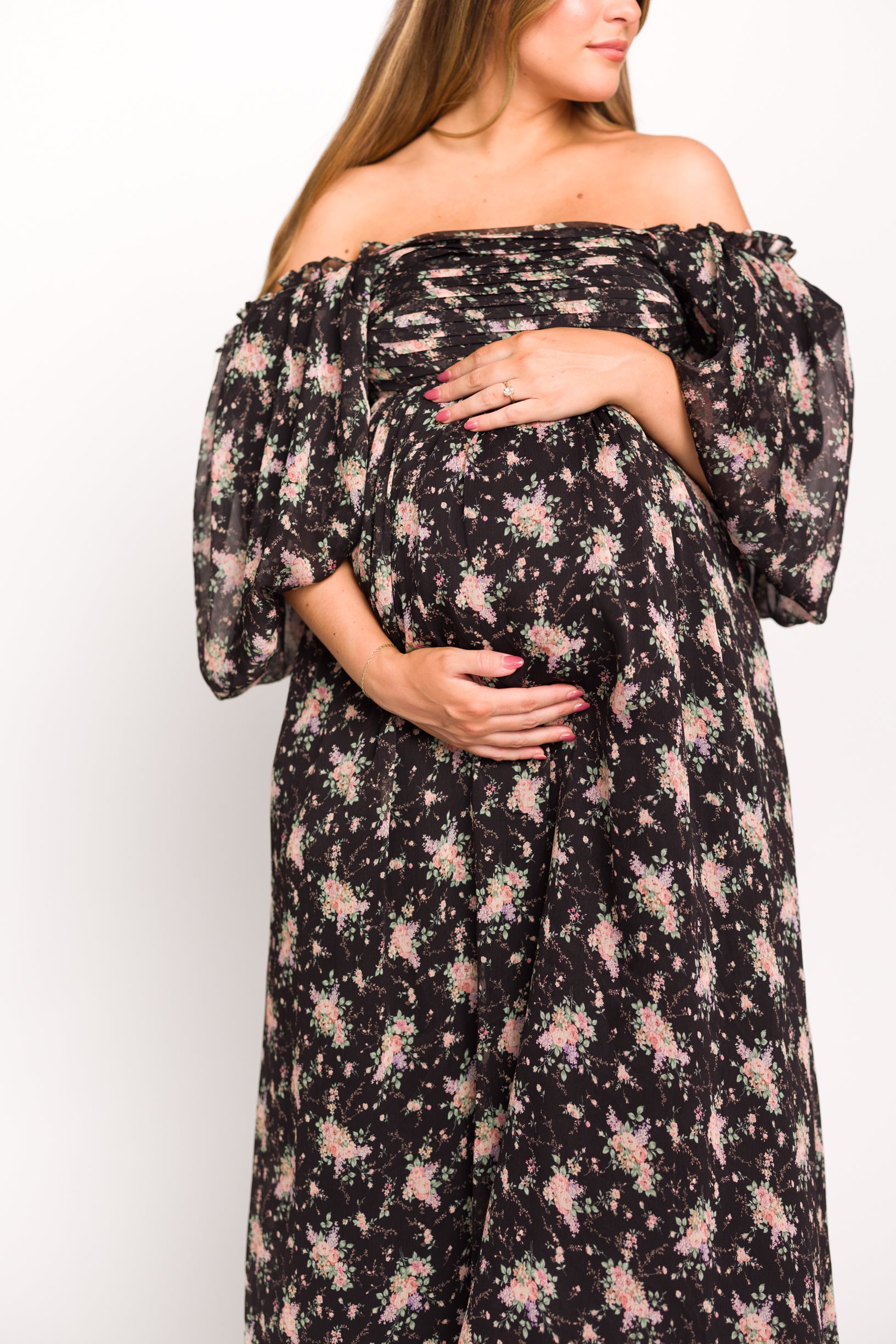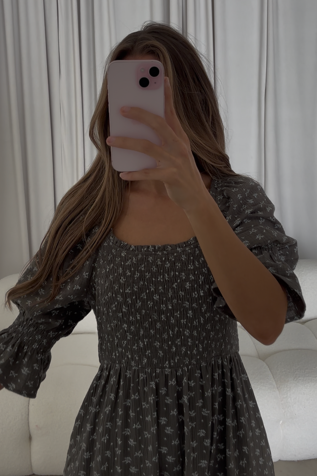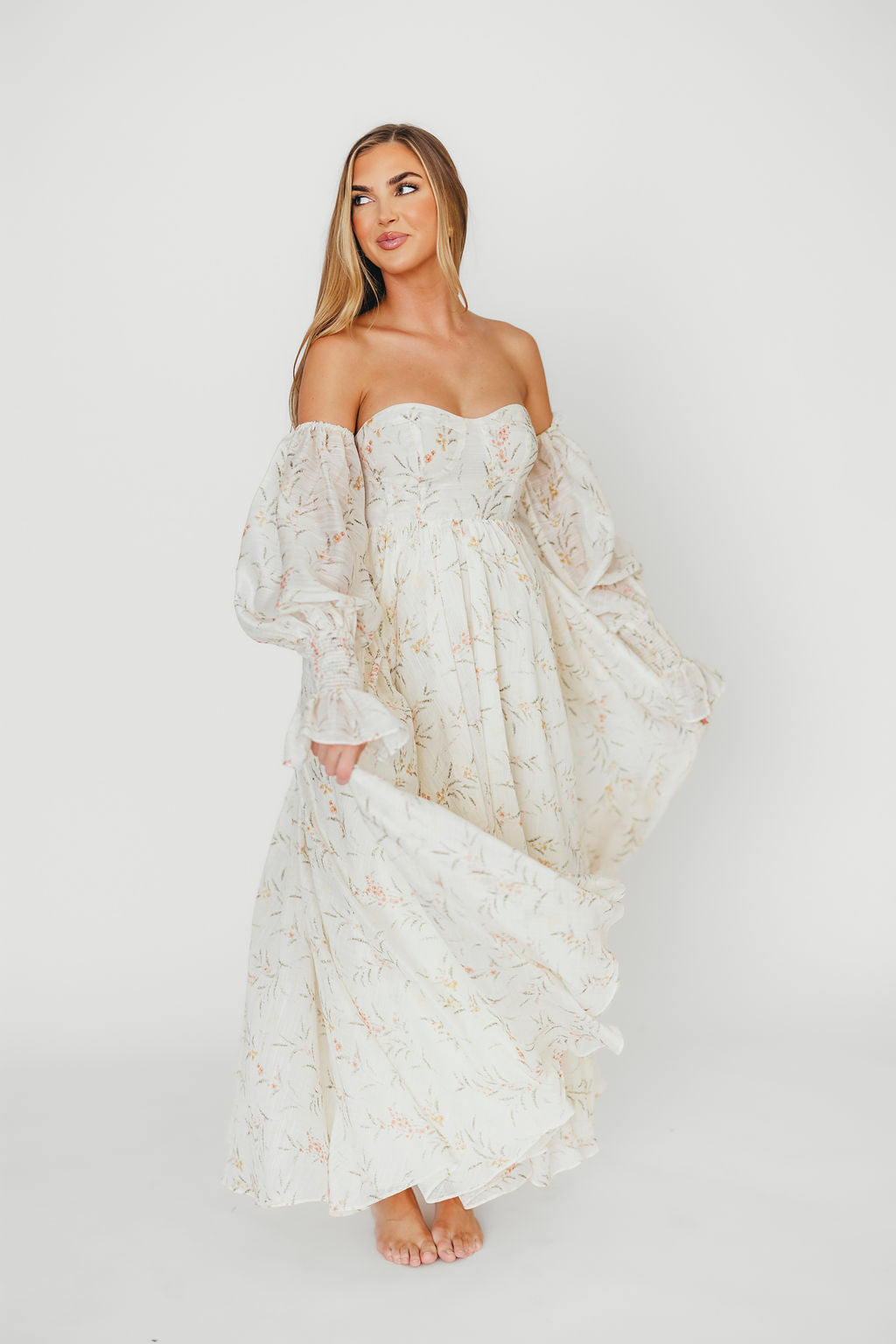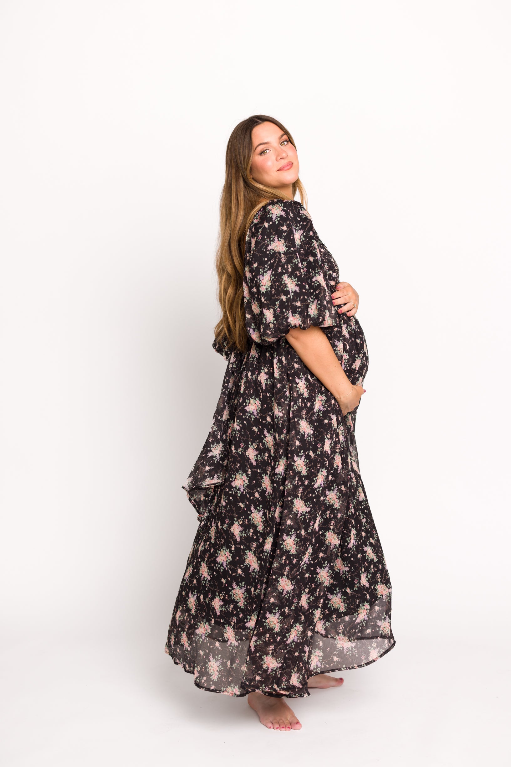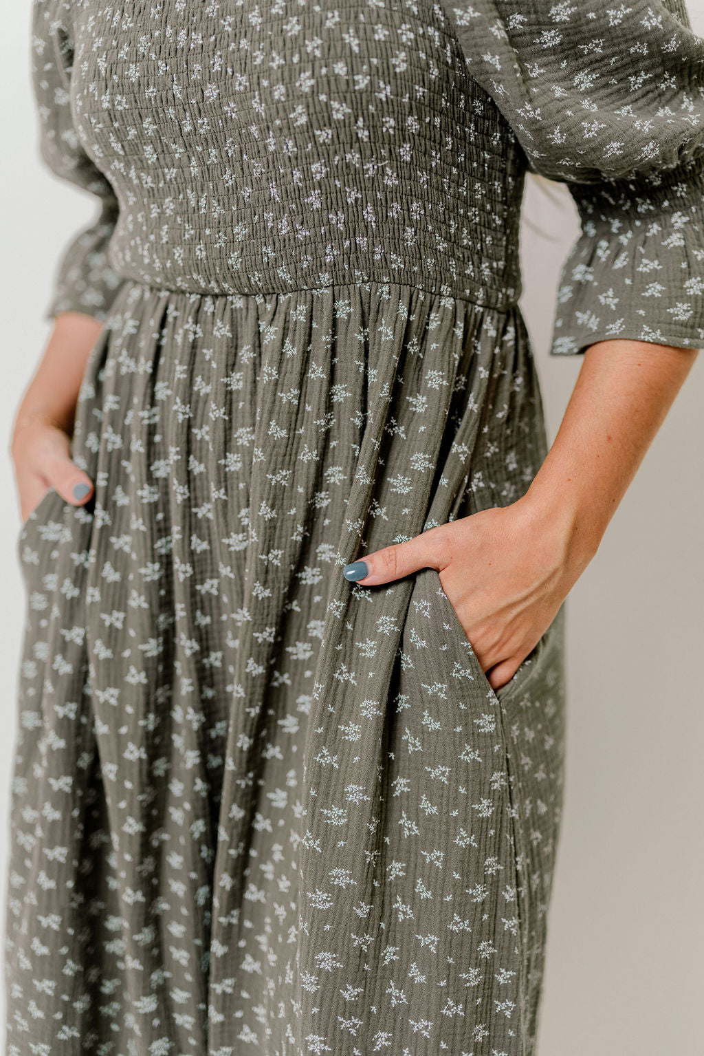 Harley Maxi Dress in Gray Floral - Bump Friendly *Final-Sale*