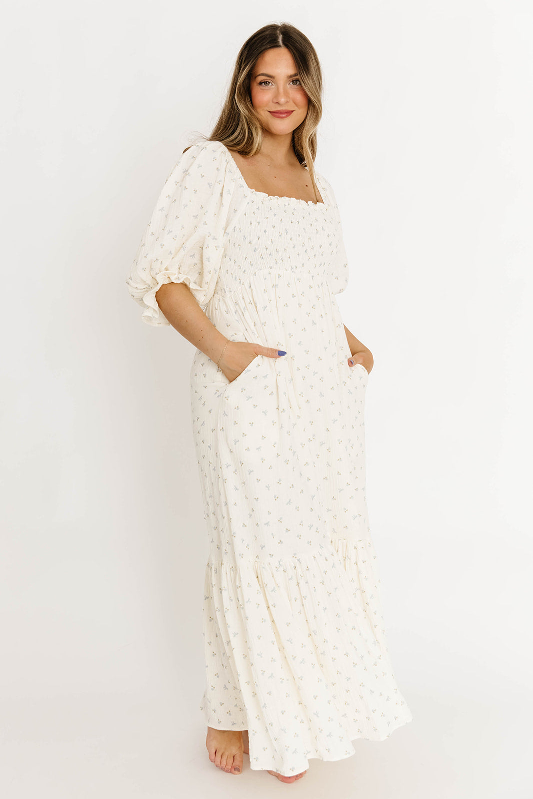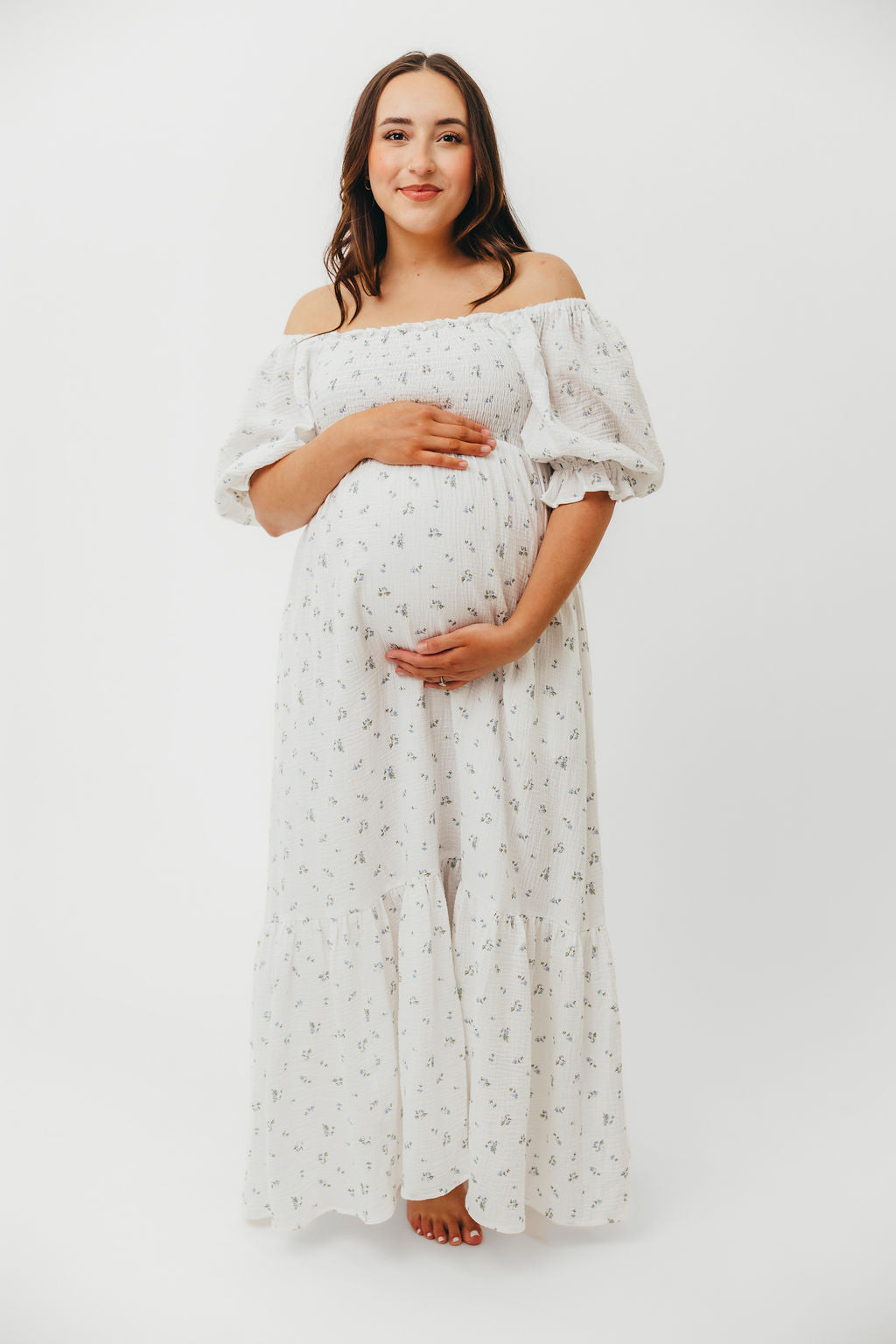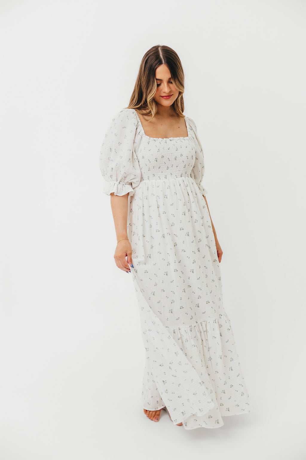 Cecilia 100% Cotton Smocked Maxi Dress in Ivory - Bump Friendly