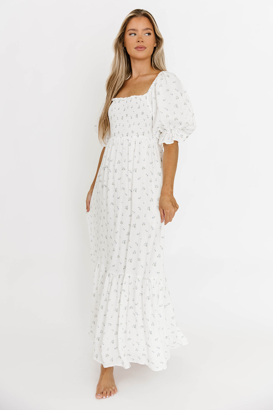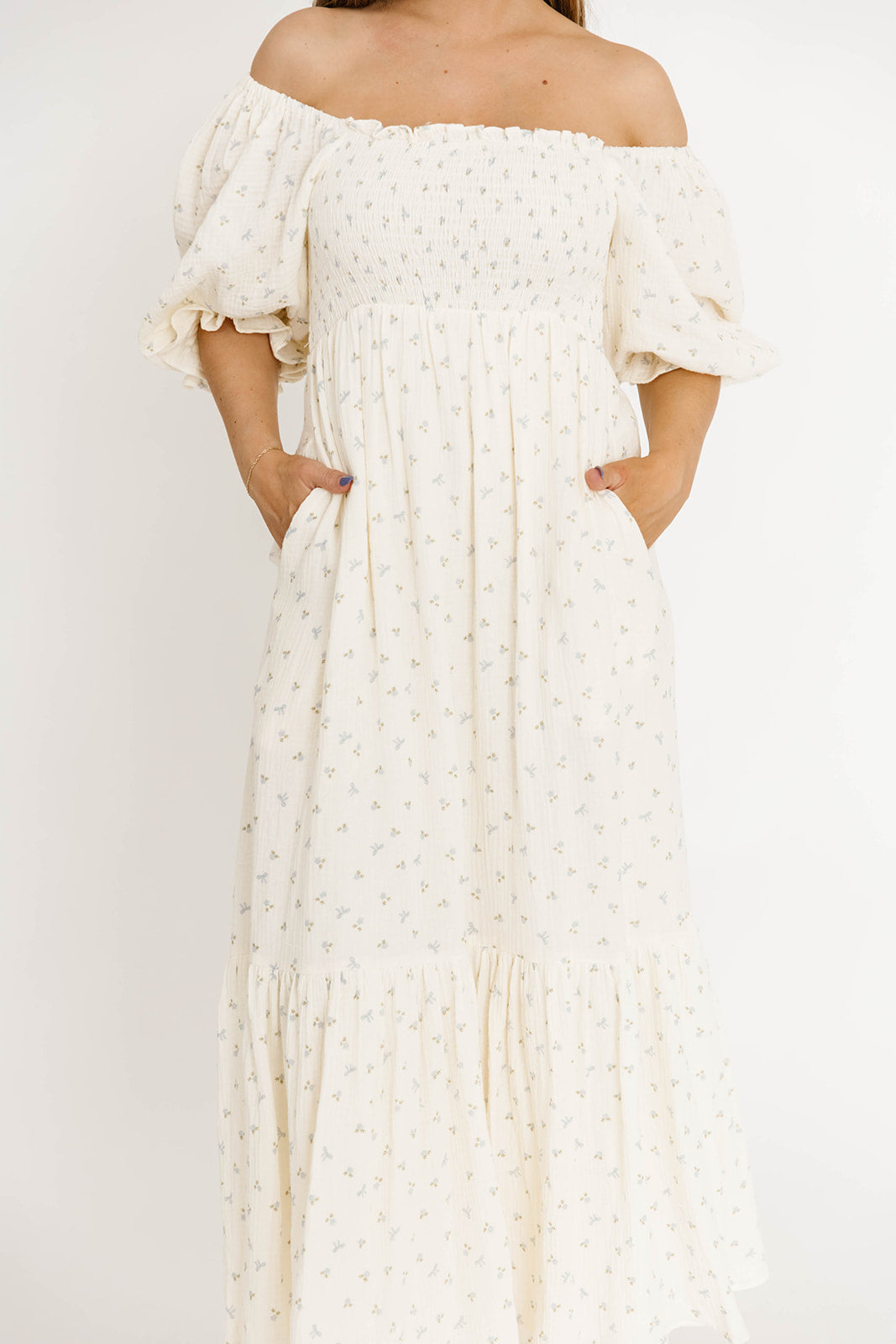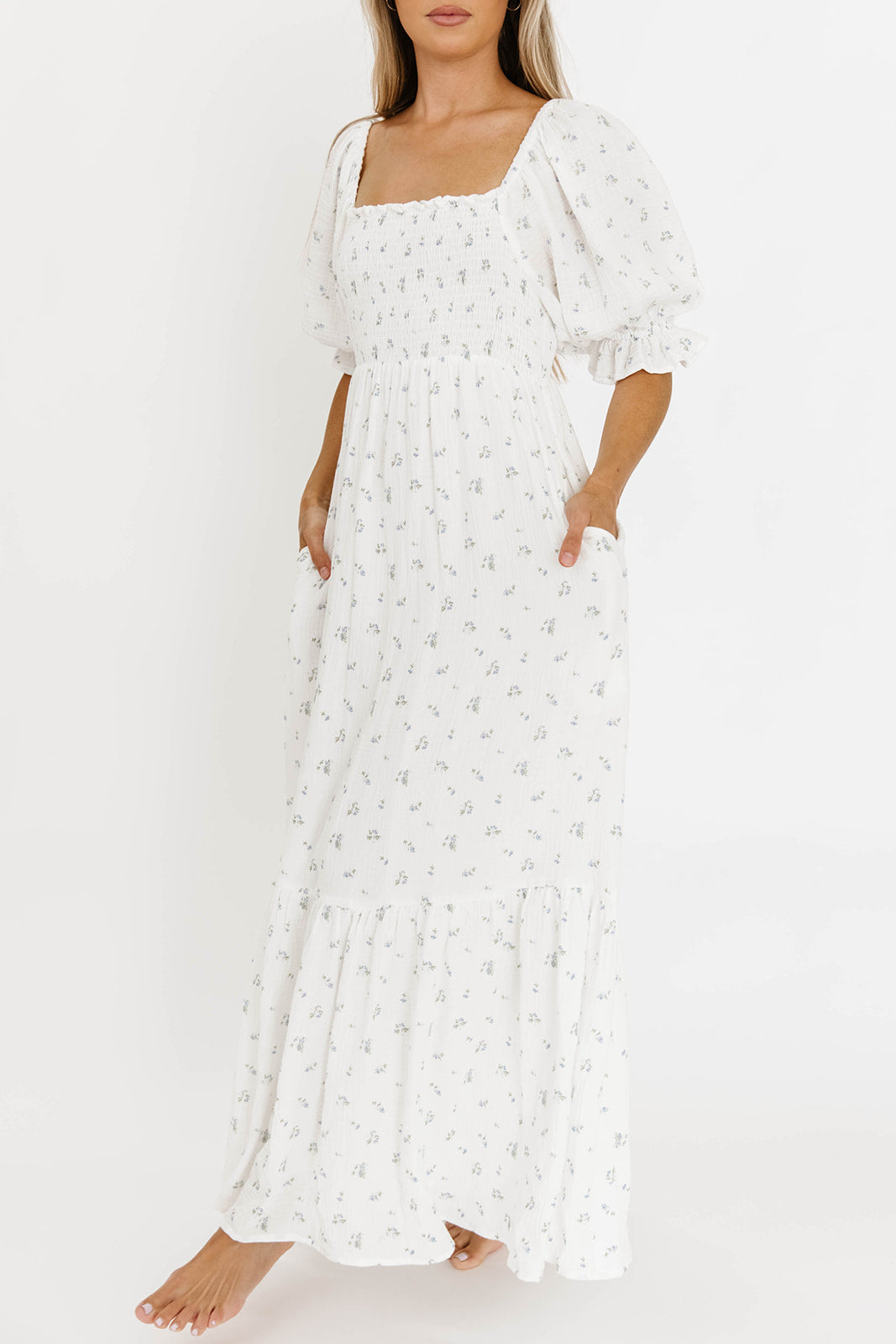 Cecilia 100% Cotton Smocked Maxi Dress in Ivory - Bump Friendly