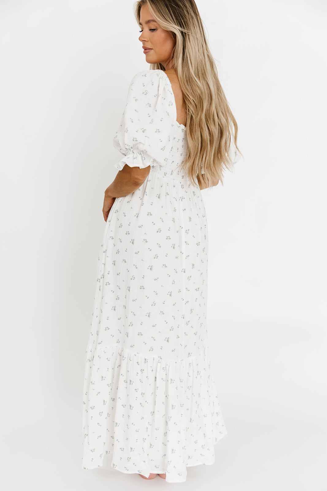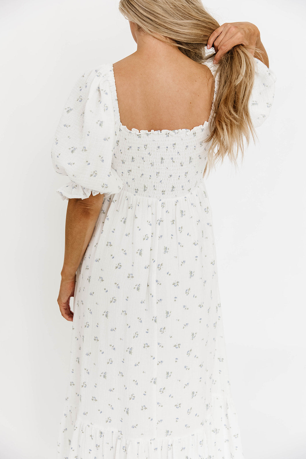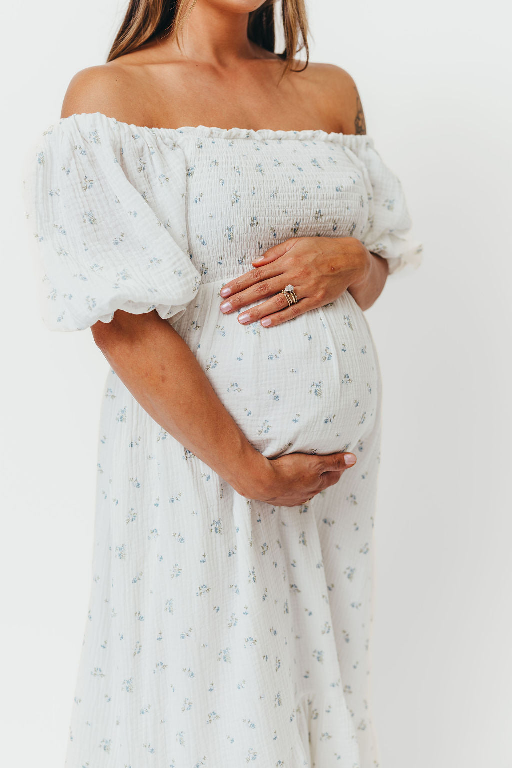 Livvy 100% Cotton Maxi Dress in Off-White / Blue Floral - Bump Friendly & Inclusive Sizing