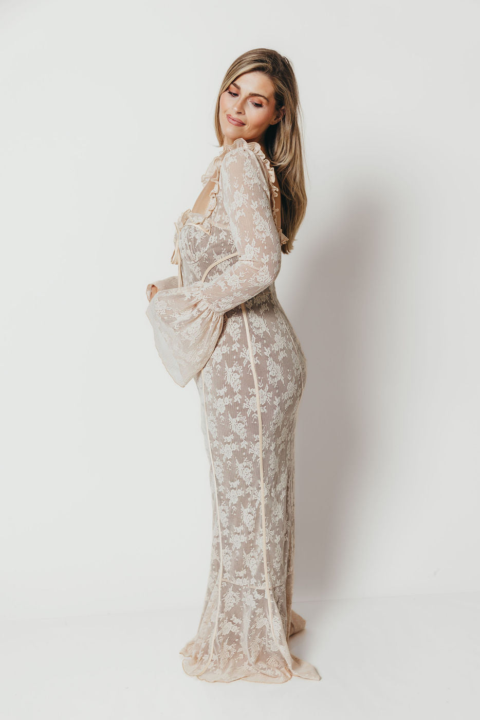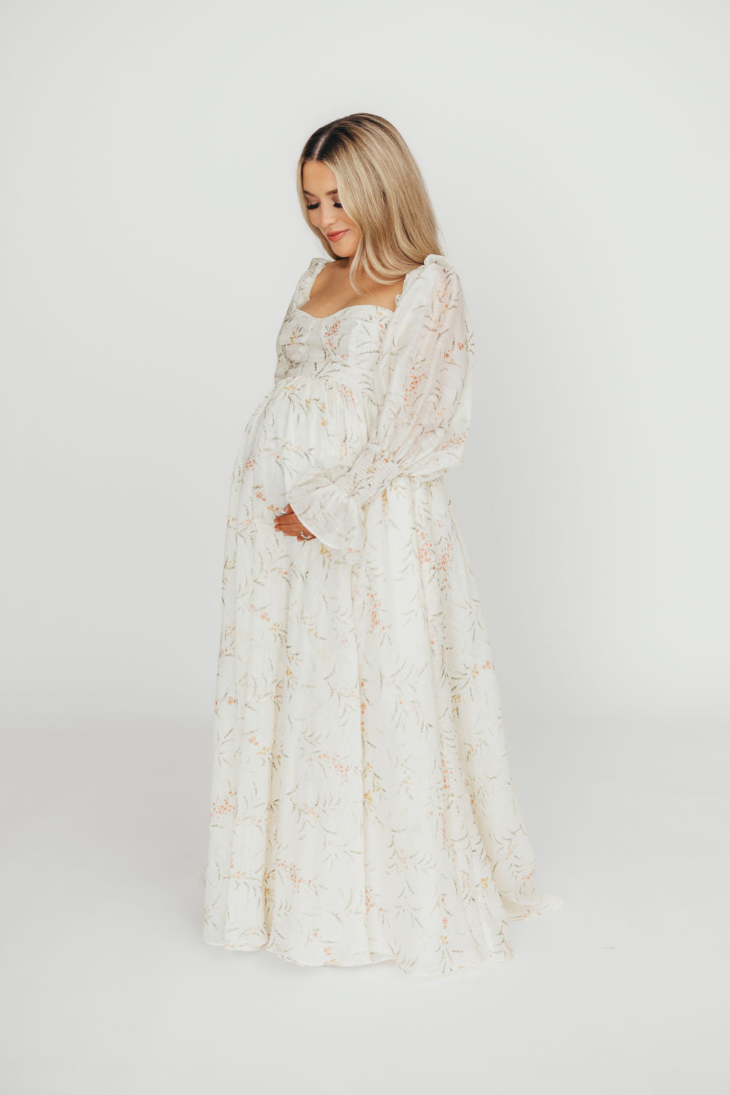 Heirloom Maxi Dress in Cream Tailored Silhouette — not ideal for mid to advanced maternity