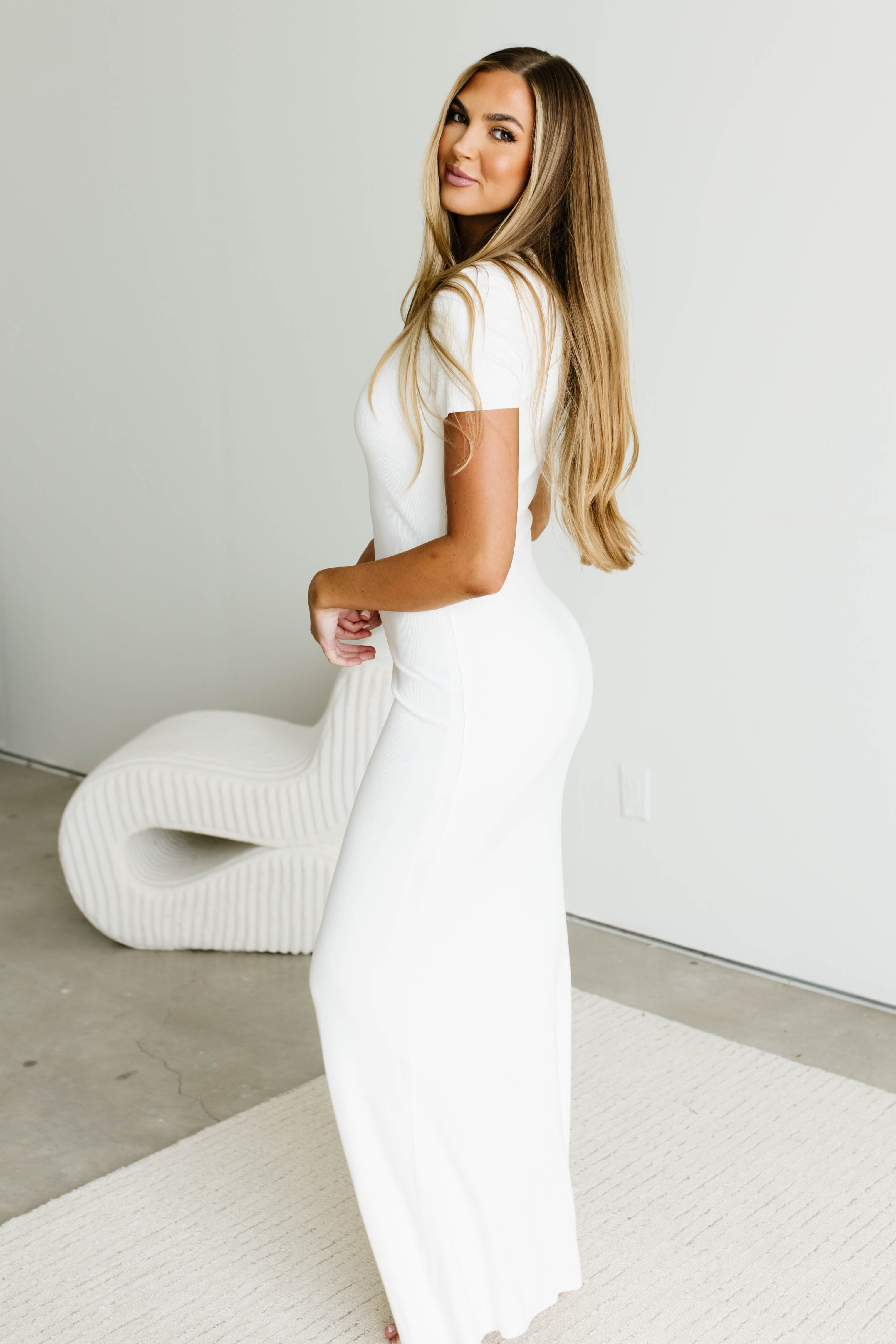 The Charlie Ribbed Maxi Dress in White - Bump Friendly *Final-Sale*