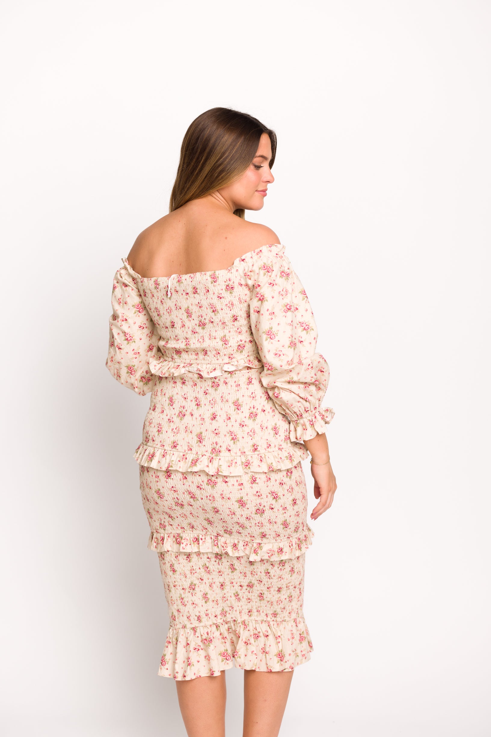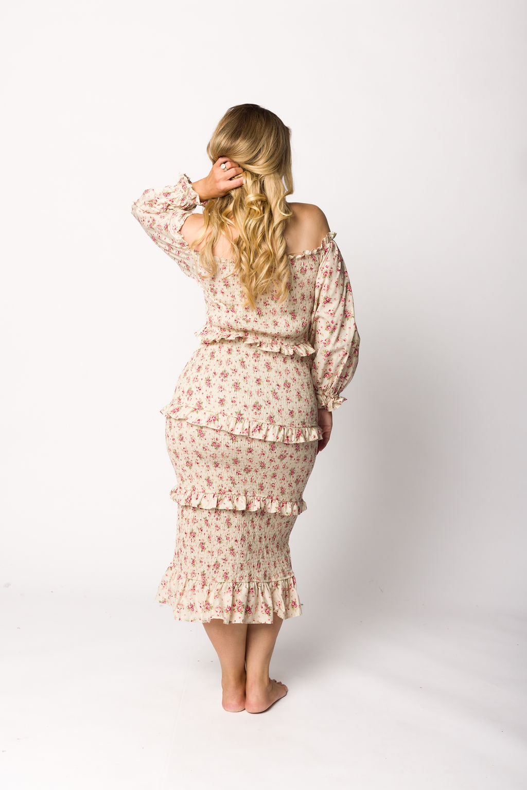 Lila Floral Printed Smocked Midi Dress in Pink - Bump Friendly *Final-Sale*