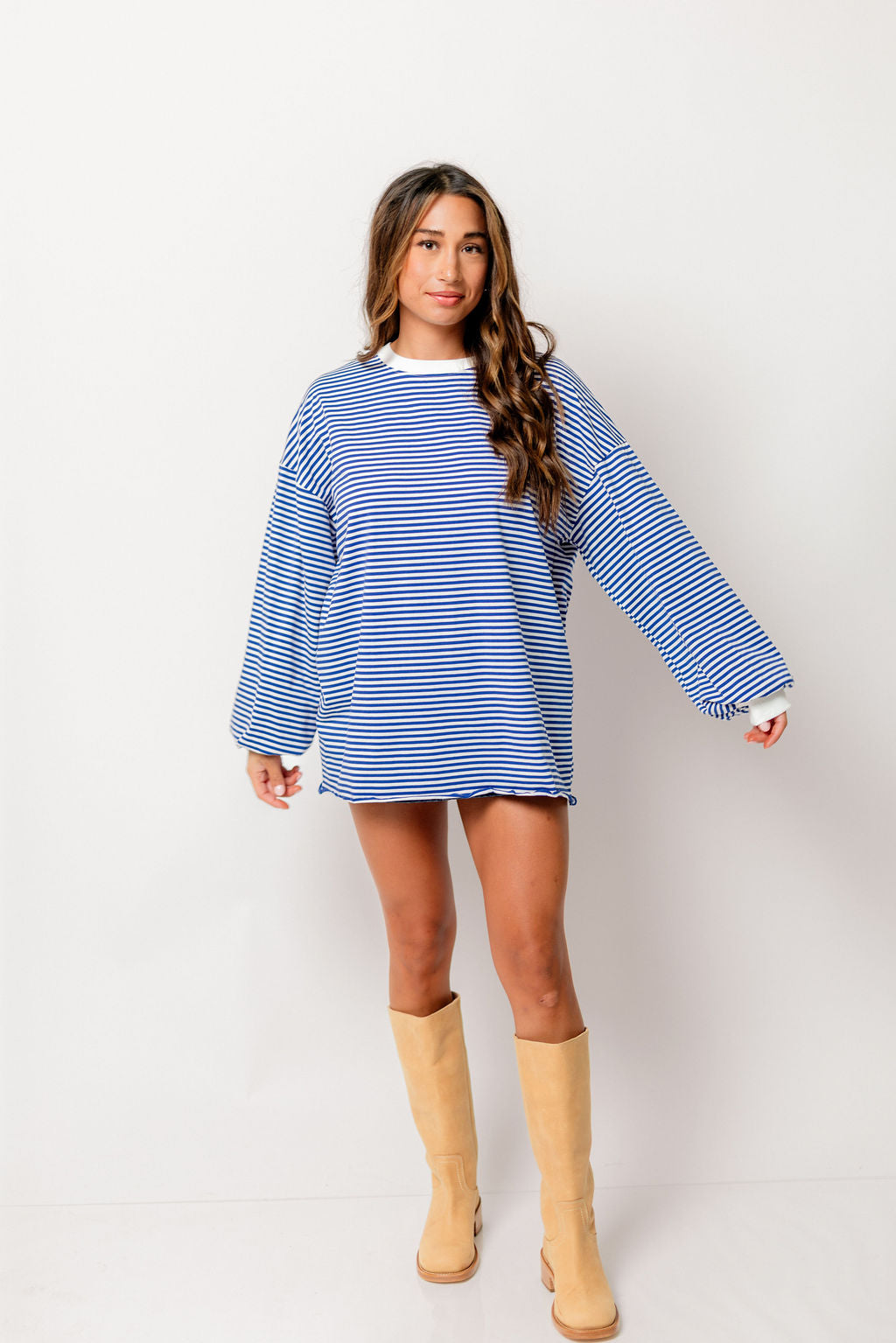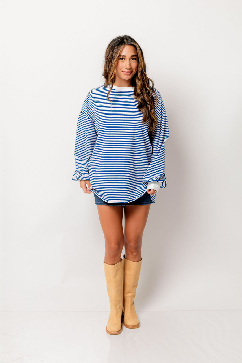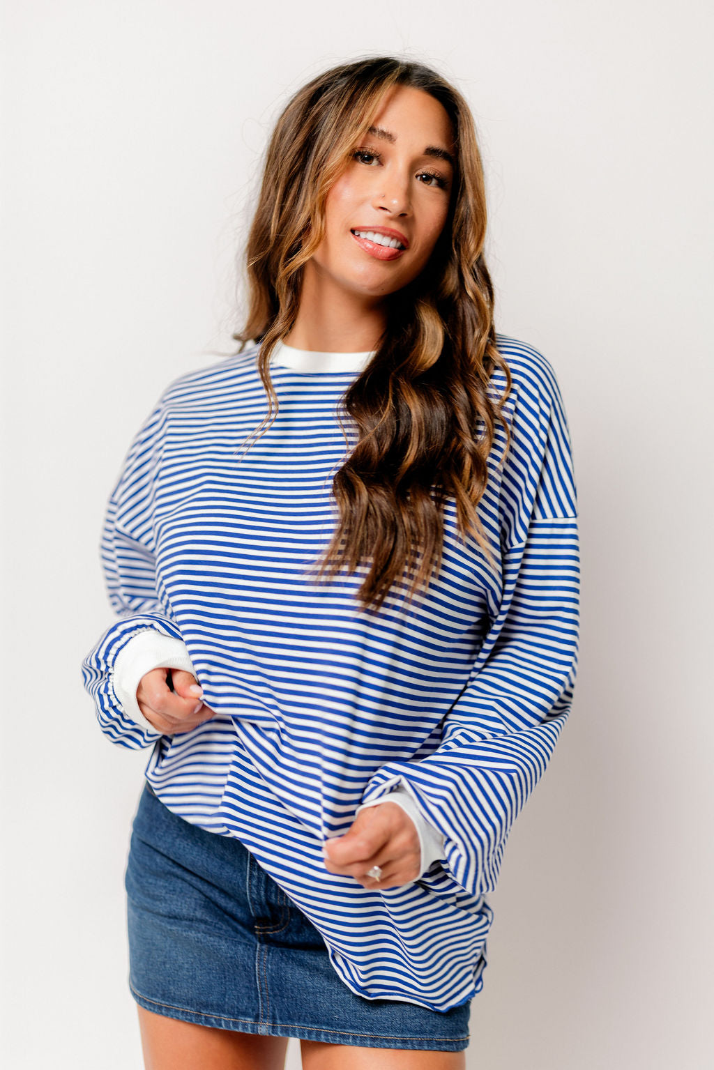 Benni Crew Neck Striped Long Sleeve Top in Royal Blue