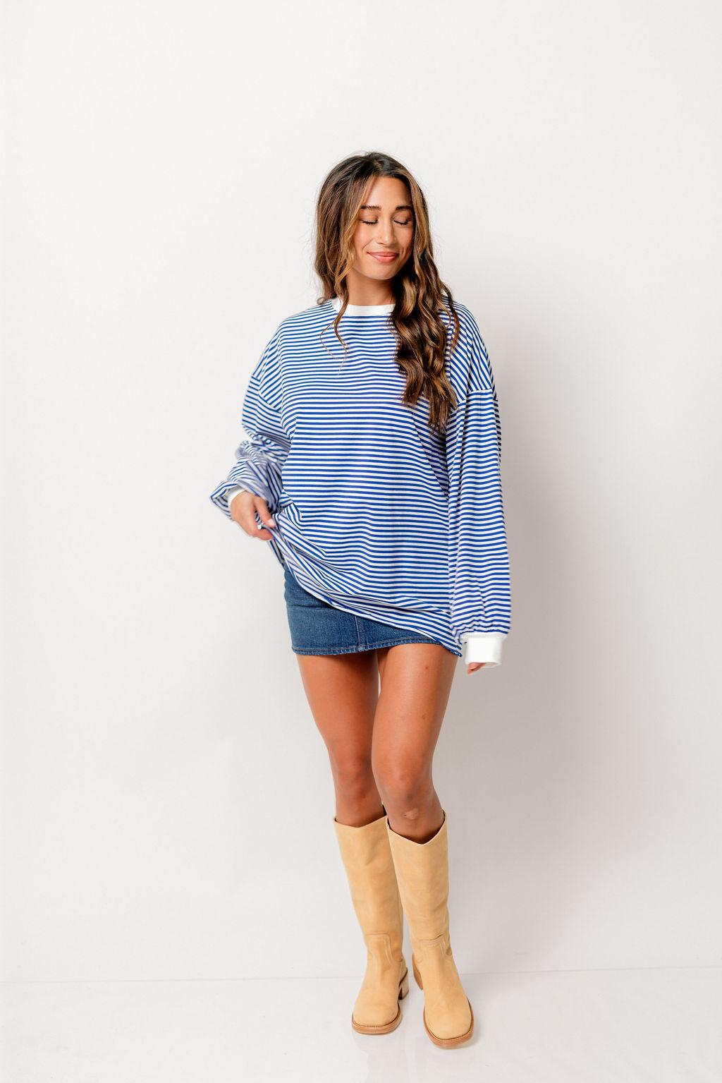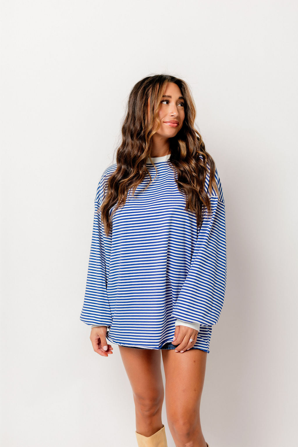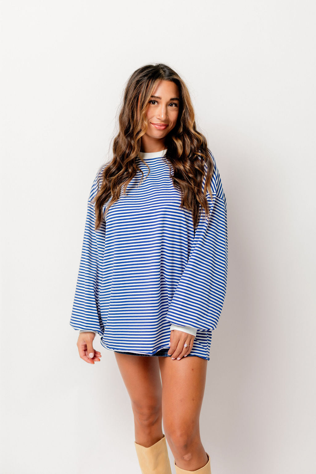 Benni Crew Neck Striped Long Sleeve Top in Royal Blue