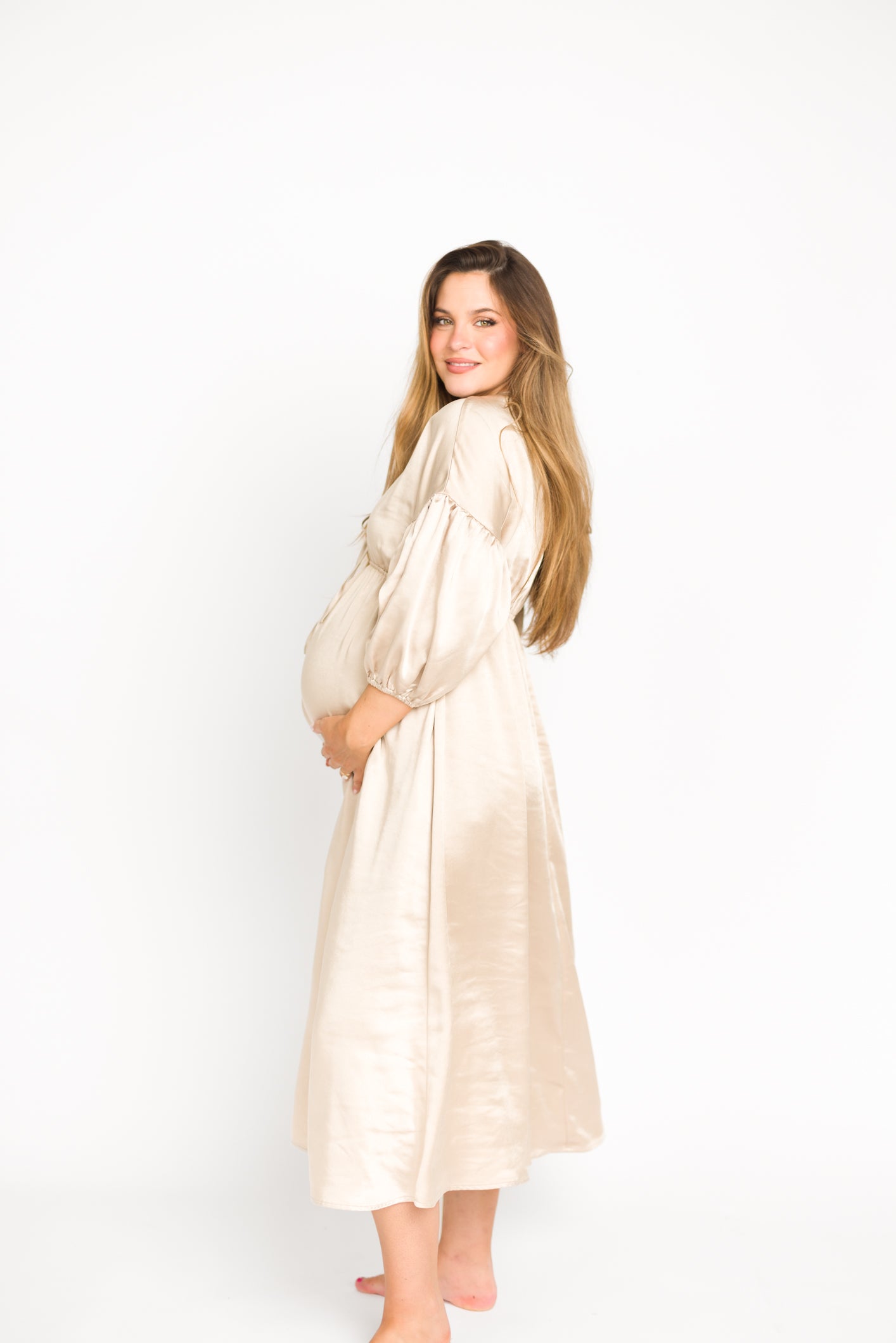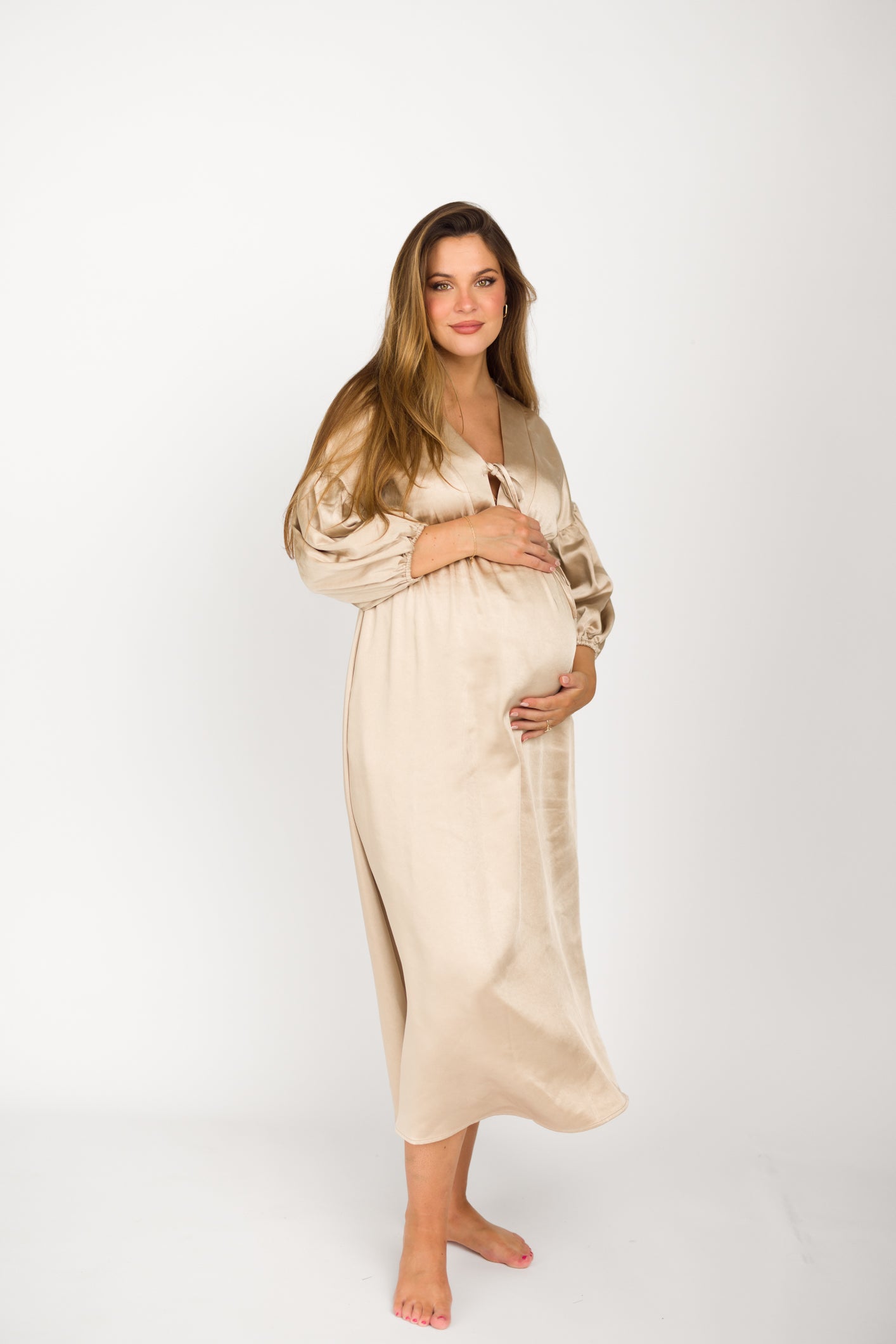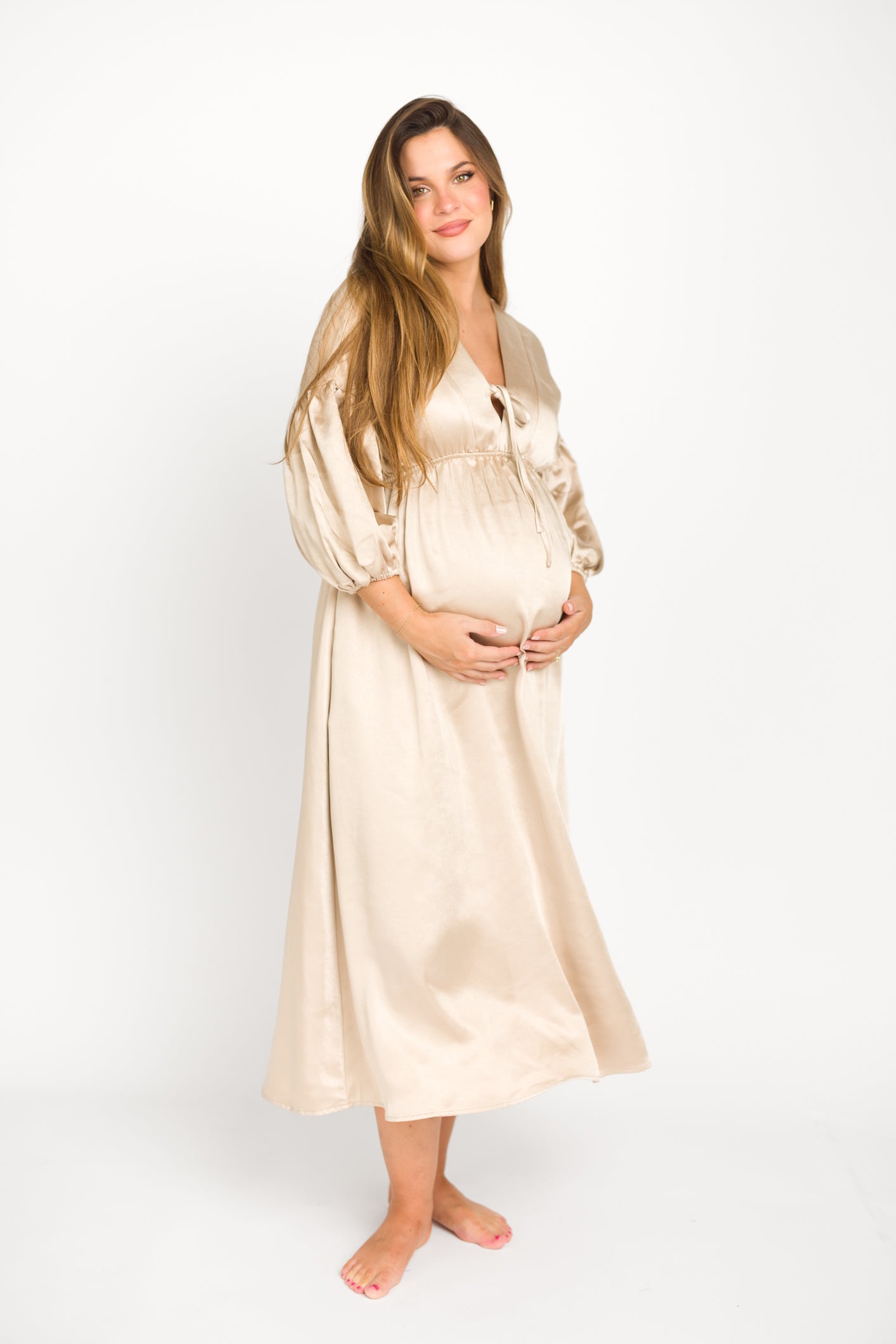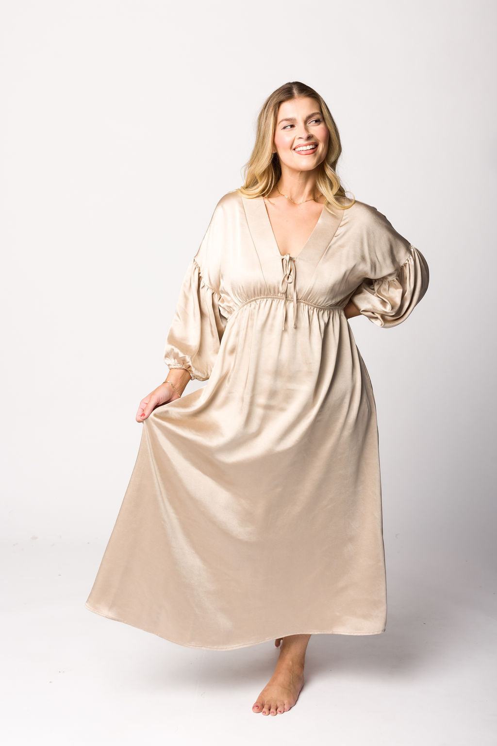 Hunter Premium *Satin* Midi Dress in Champagne - Bump Friendly *Final-Sale*