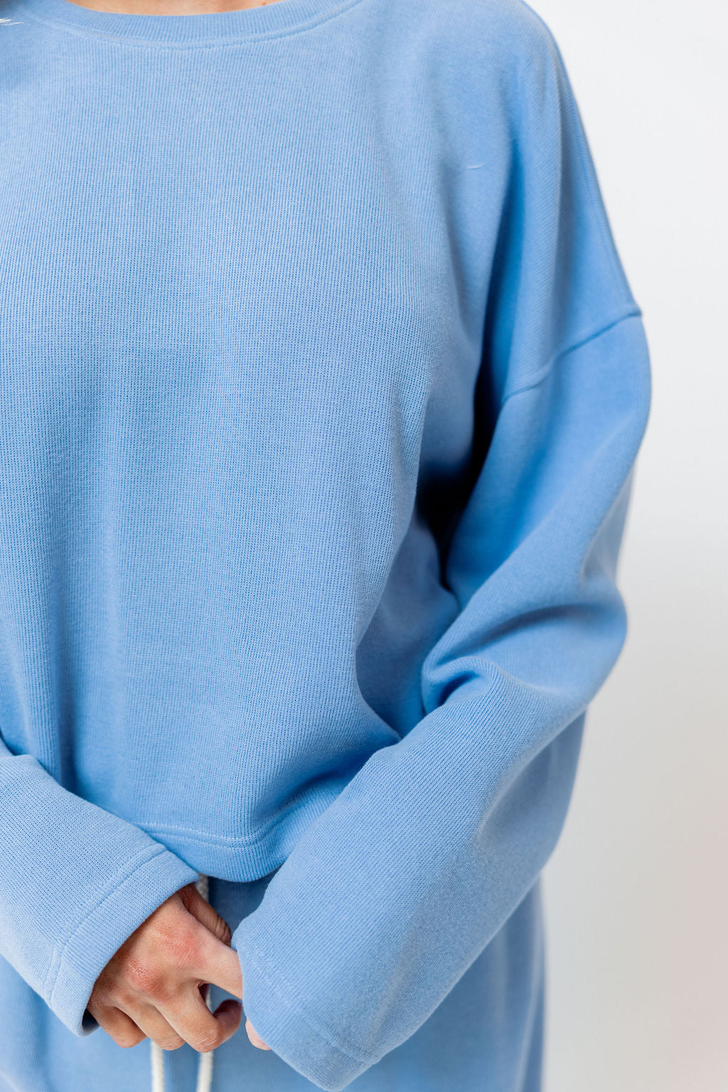 Naomi Striped Oversized Fleece Long Sleeve Top in Sky Blue - Bump Friendly *2/4 PRE-ORDER*