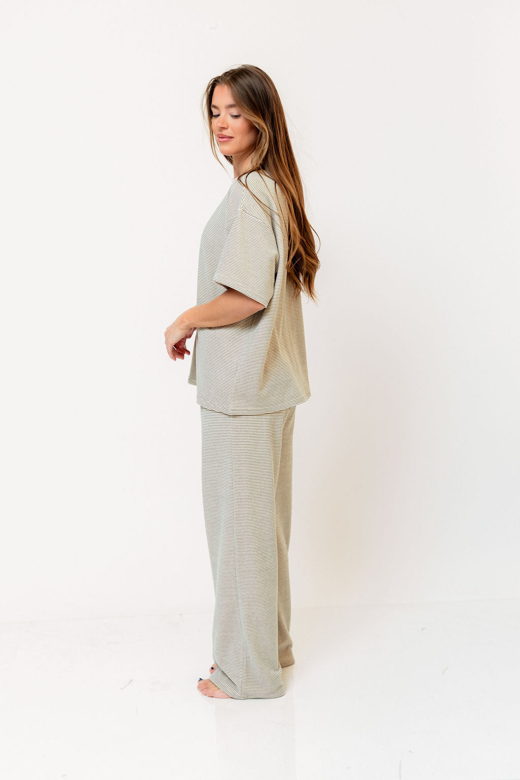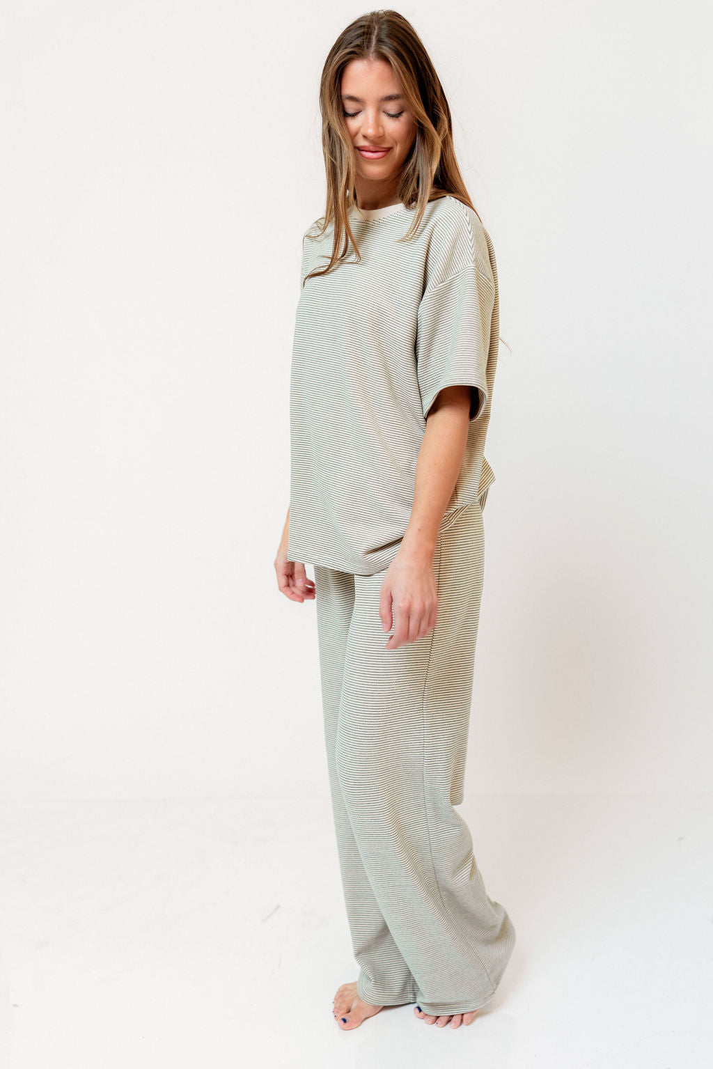 Stella Ribbed Stripe Oversized Top in Moss Lime Green (True Color is Main Image)