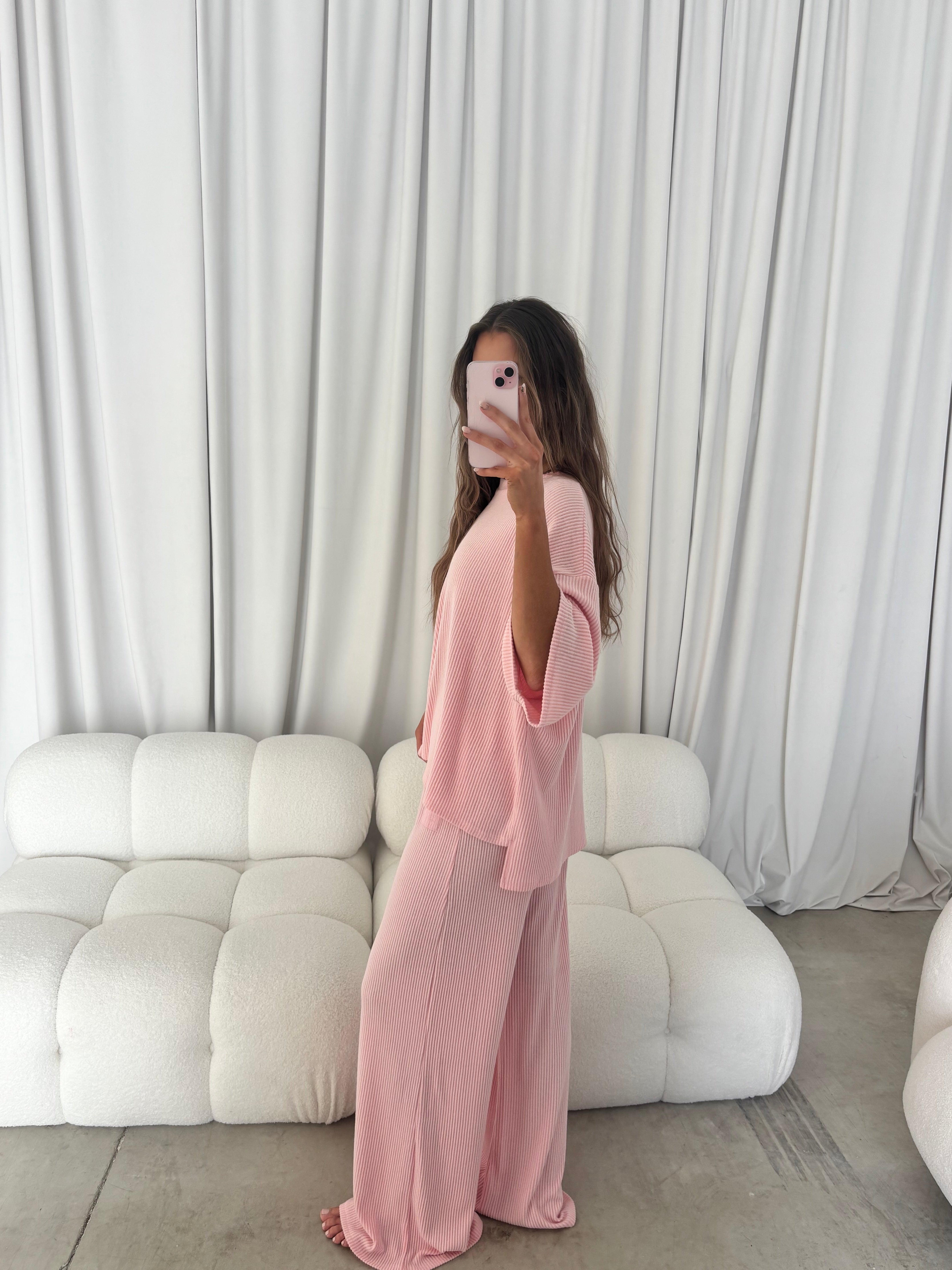 Alana Stripe Set in Bubblegum - Lightweight/Butter Fabric