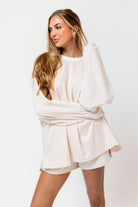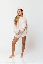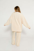 Get cozy (and trendy) with our new Naomi Top! This top is oversized yet sophisticated, the perfect top for pairing with your favorite boxer shorts or the matching Campbell Fleece Pants.