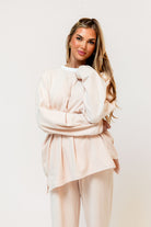Naomi Striped Oversized Fleece Long Sleeve Top in Blush - Bump Friendly *2/4 PRE-ORDER*