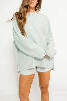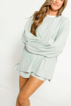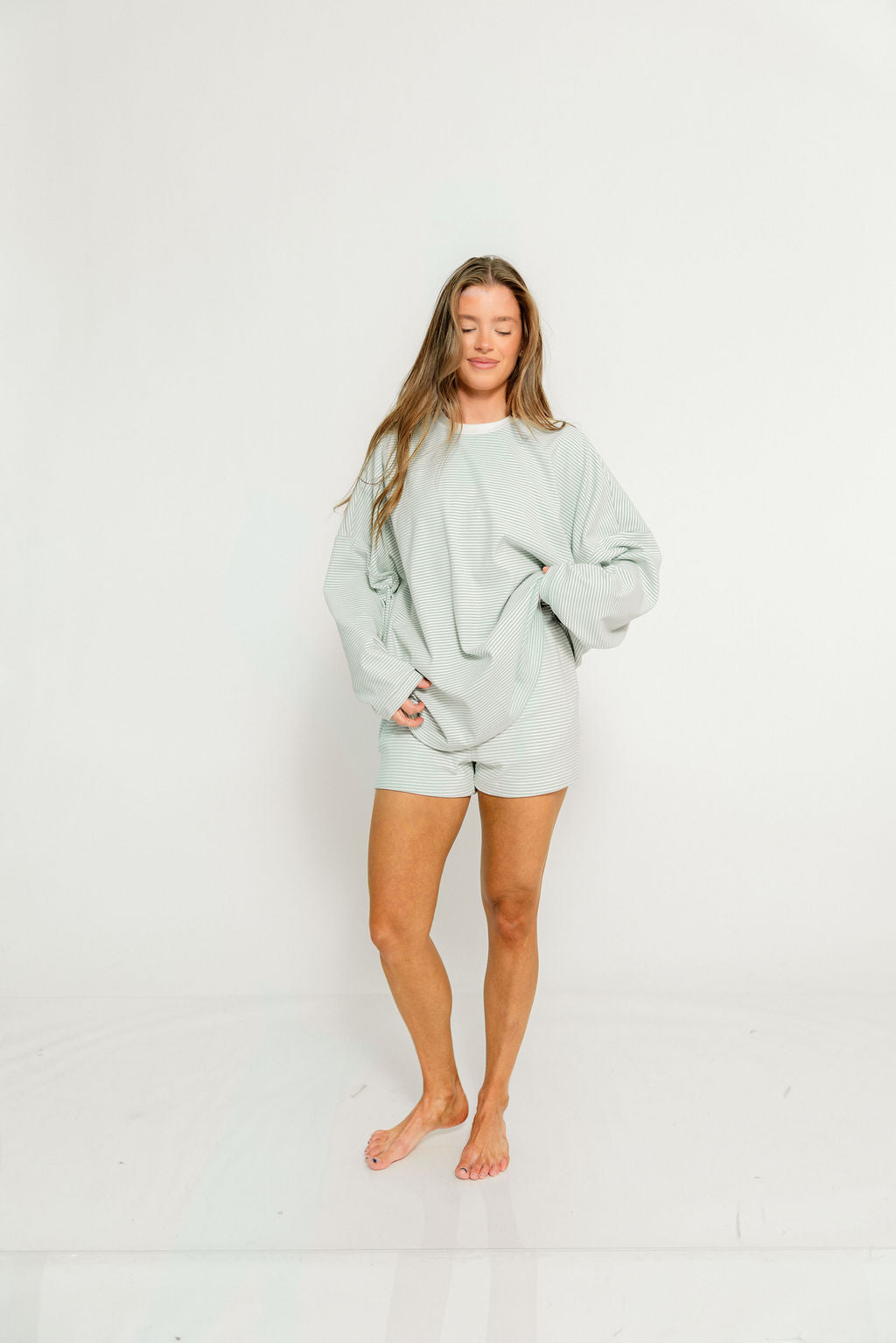 Get cozy (and trendy) with our new Naomi Top! This top is oversized yet sophisticated, the perfect top for pairing with your favorite boxer shorts or the matching Campbell Fleece Pants.