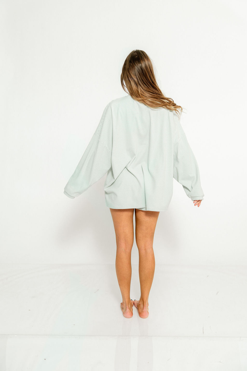 Naomi Striped Oversized Fleece Long Sleeve Top in Hamptons Blue - Bump Friendly *2/4 PRE-ORDER*