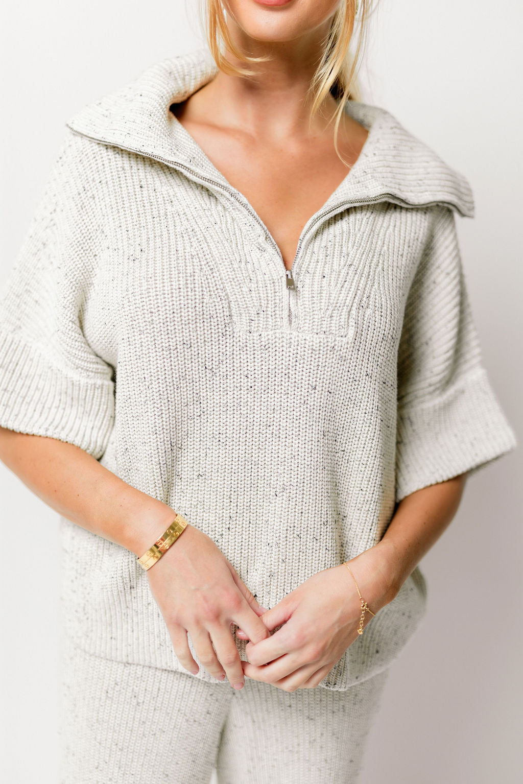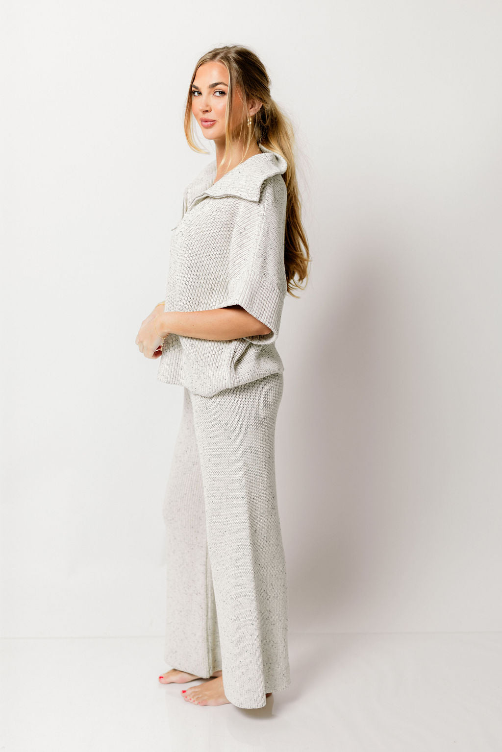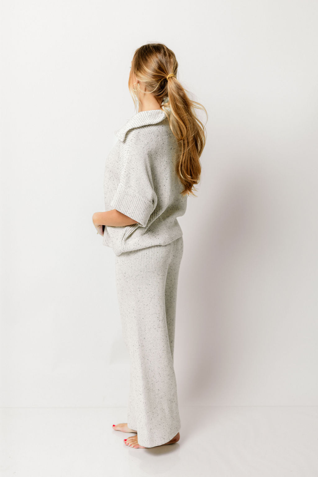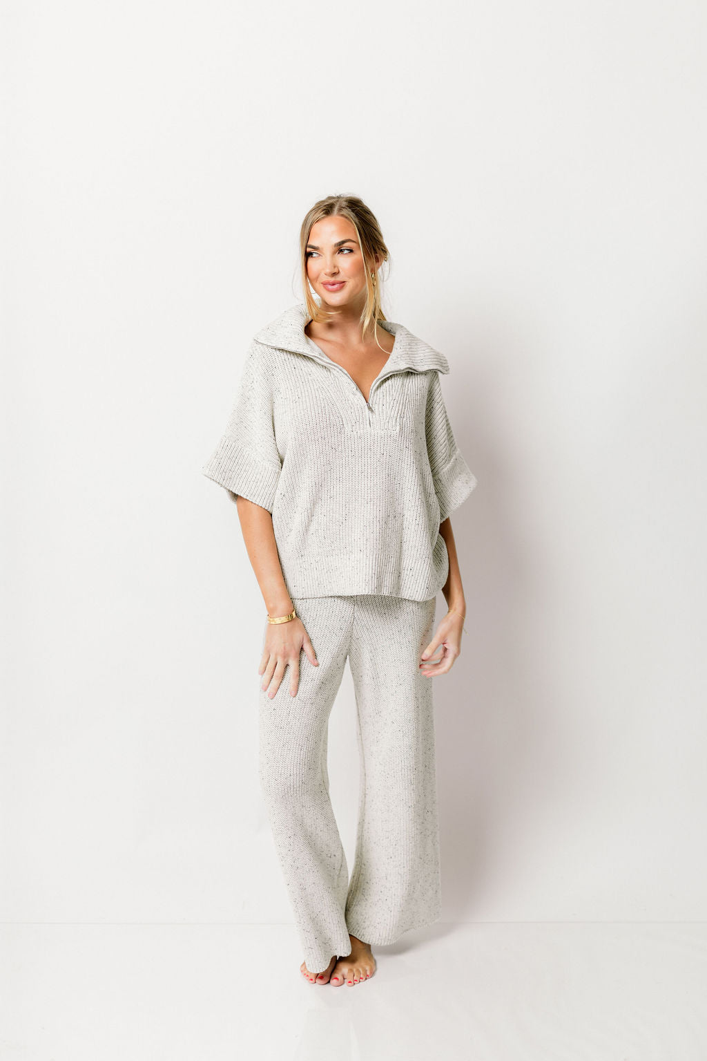 There's a reason collared sweaters are showing up everywhere this season! The Liz Knit Set offers a sophisticated collared top with a 1/2 zip closure and relaxed short sleeves, paired with wide-leg pants that are as comfortable as they are stylish.