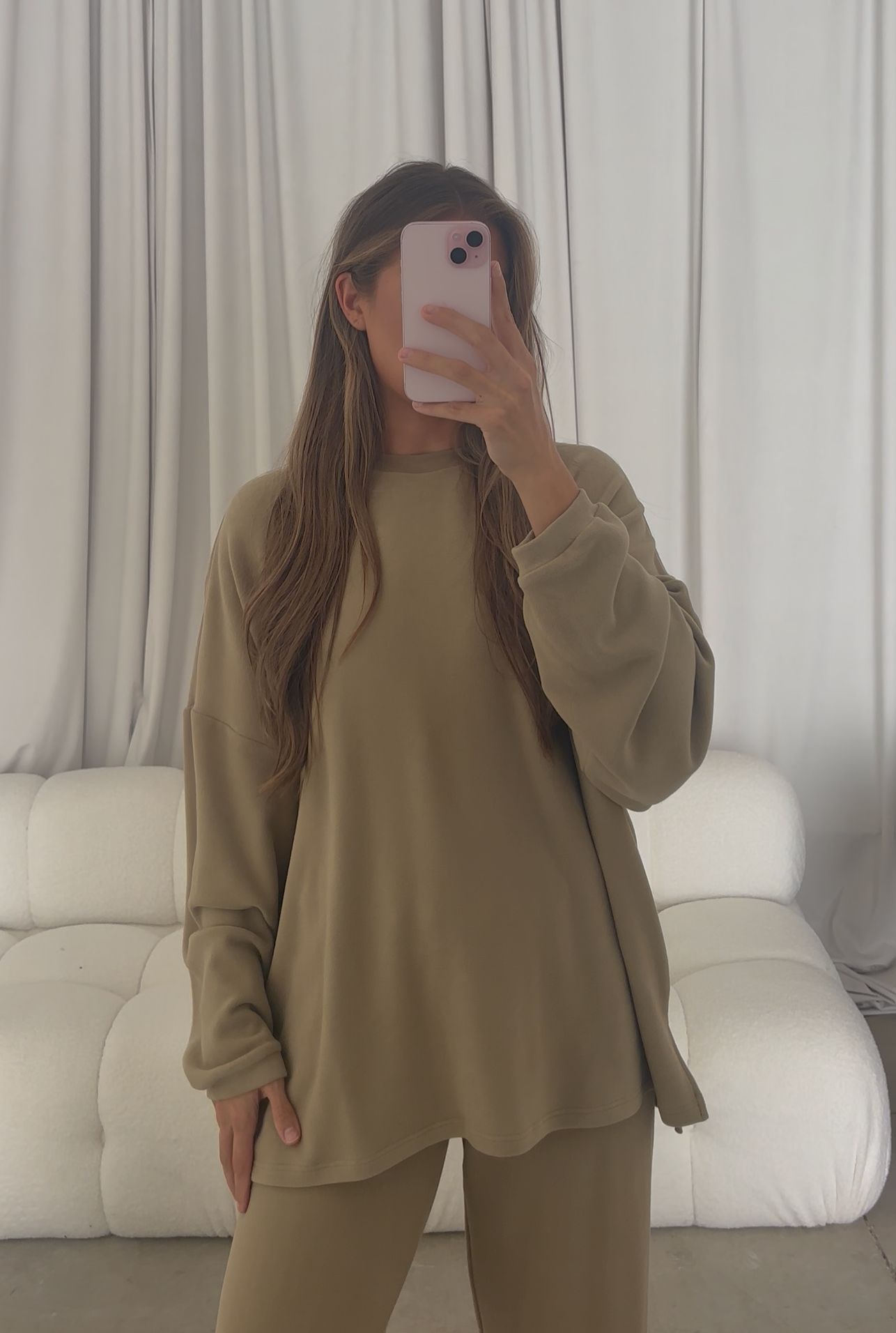Naomi Oversized Fleece Top in Green Taupe *10/3 PRE-ORDER*