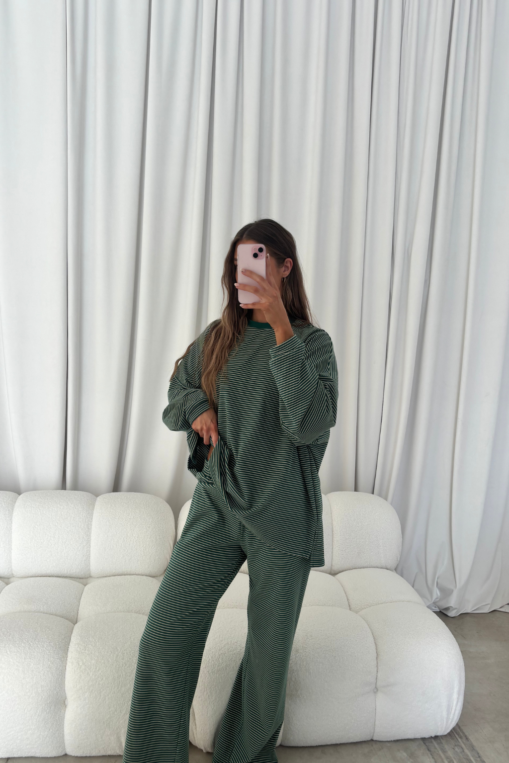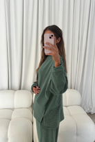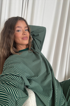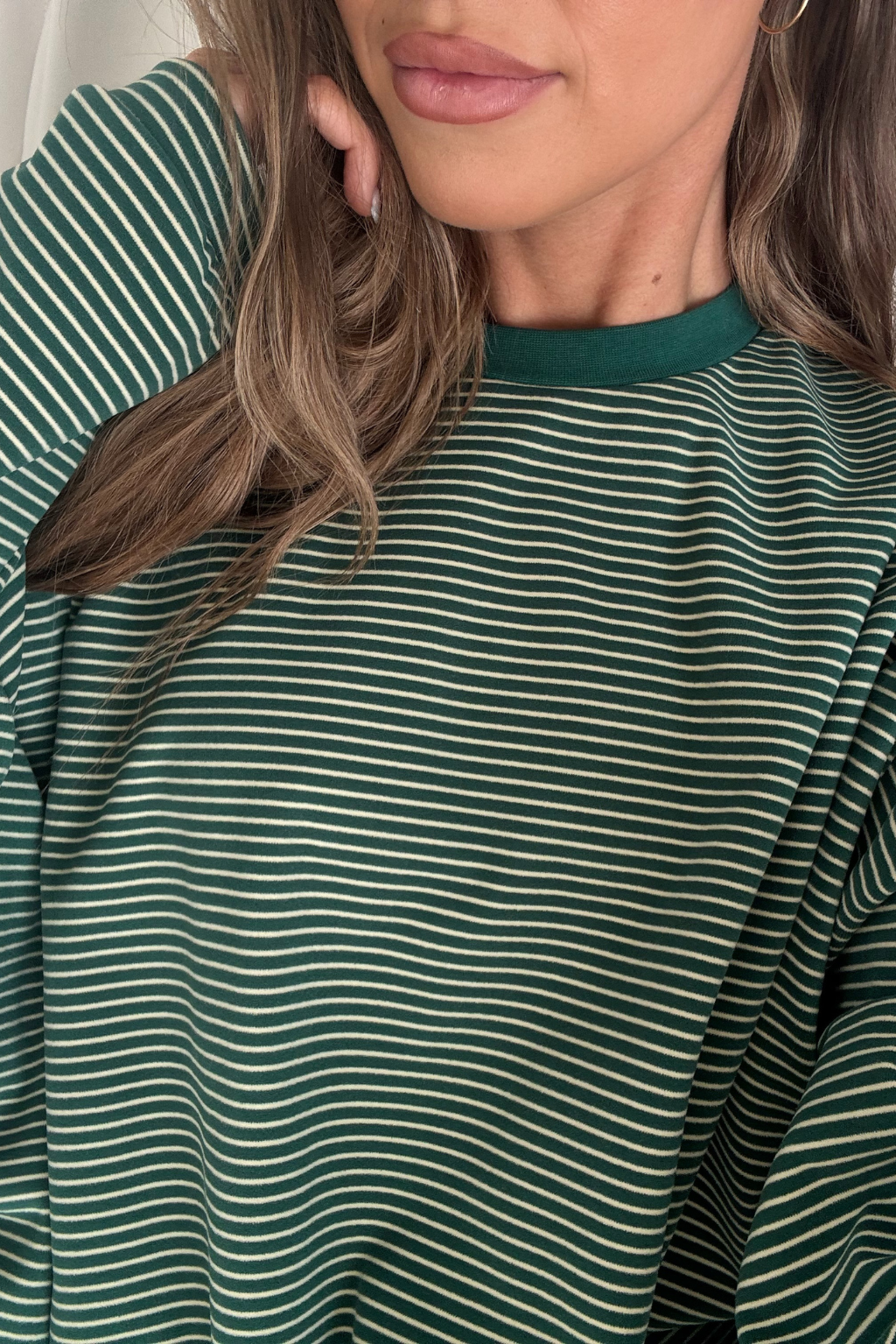 Naomi Striped Fleece Oversized Long Sleeve Top in Forest Green