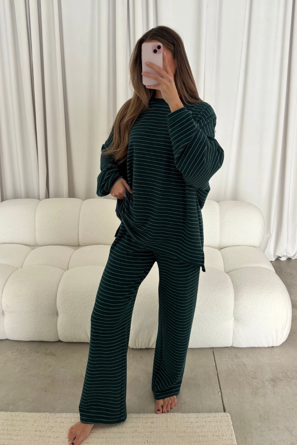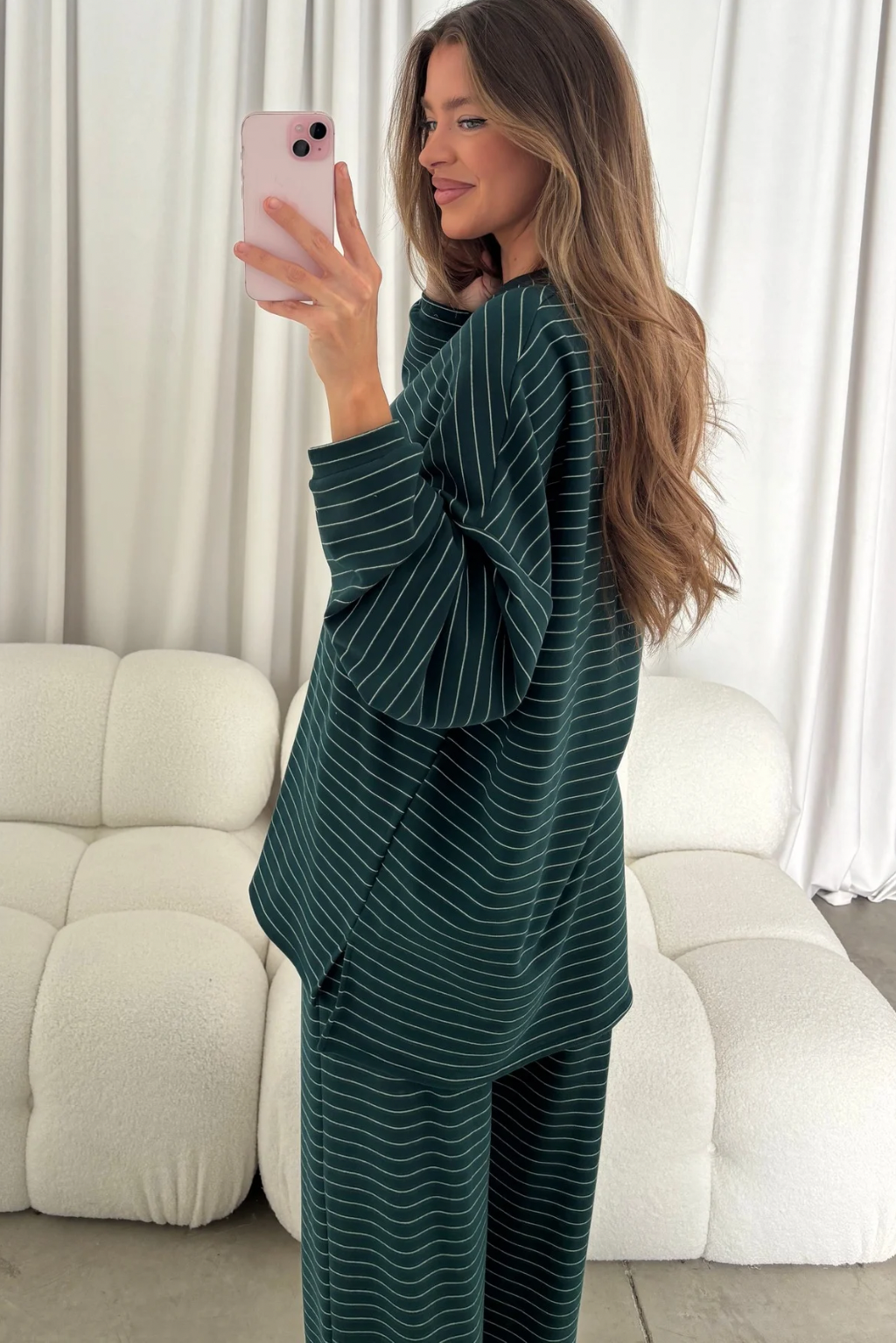 Naomi Striped Fleece Oversized Top in Green