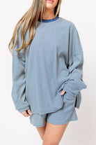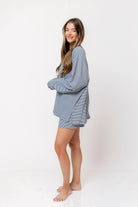 Stella Ribbed Stripe Oversized Top in Blue