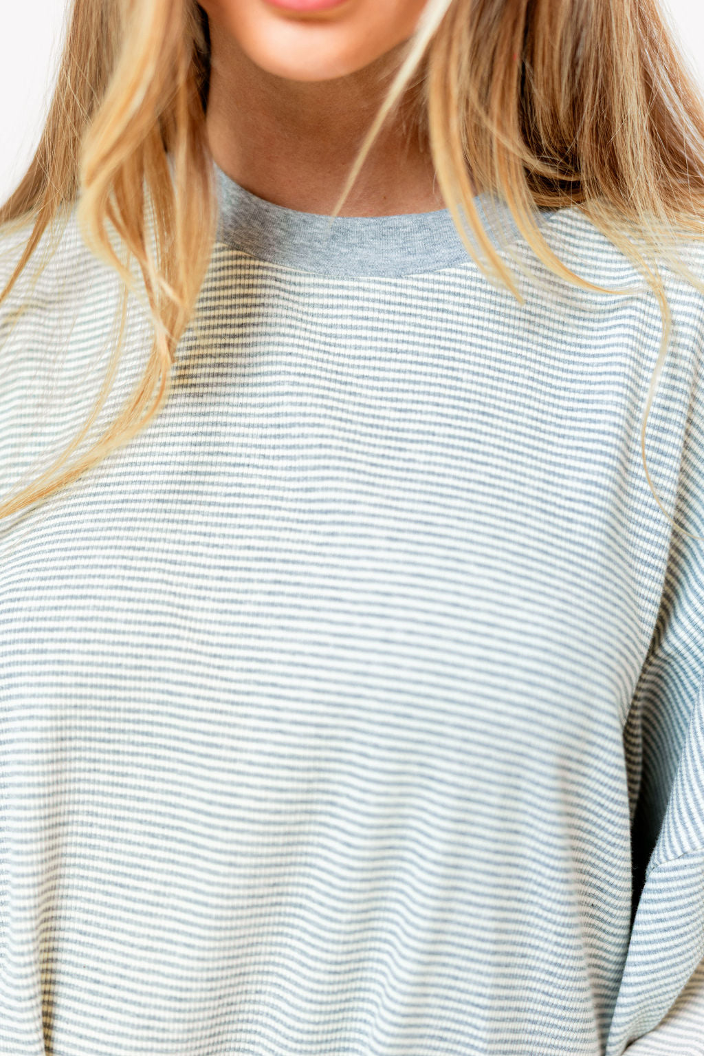 Stella Ribbed Stripe Oversized Top in Heather Grey