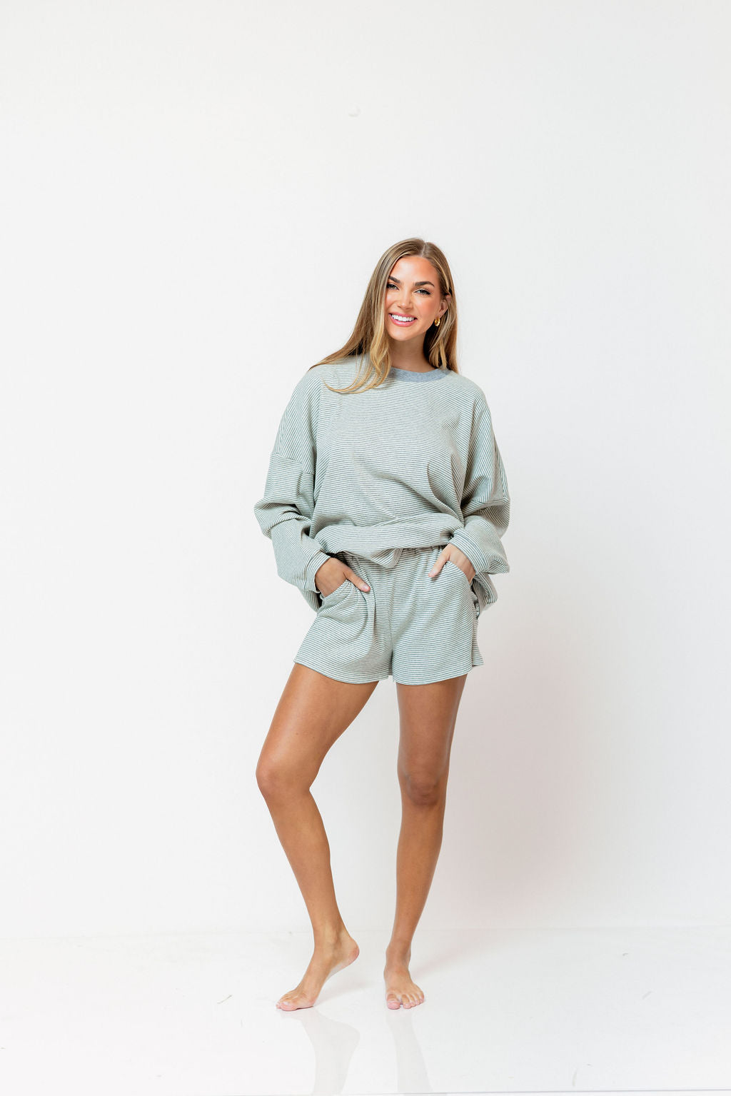 Our newest set might just be our favorite! The Stella Oversized Top is slouchy and beautifully comfortable, the perfect top for wearing night and day; pair it with the matching Maxwell Ribbed Shorts for a no-fuss combination we can't resist.
