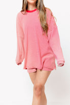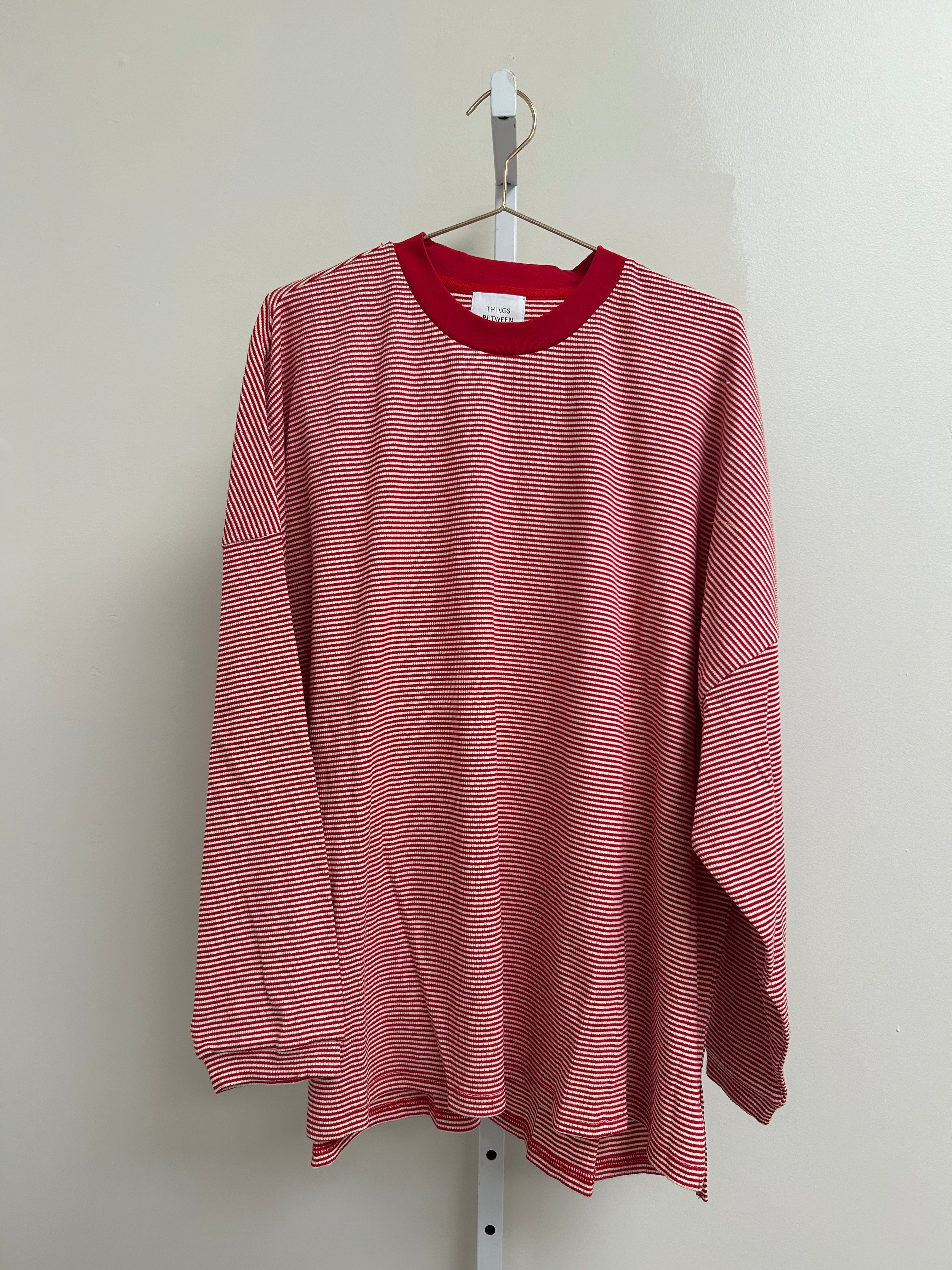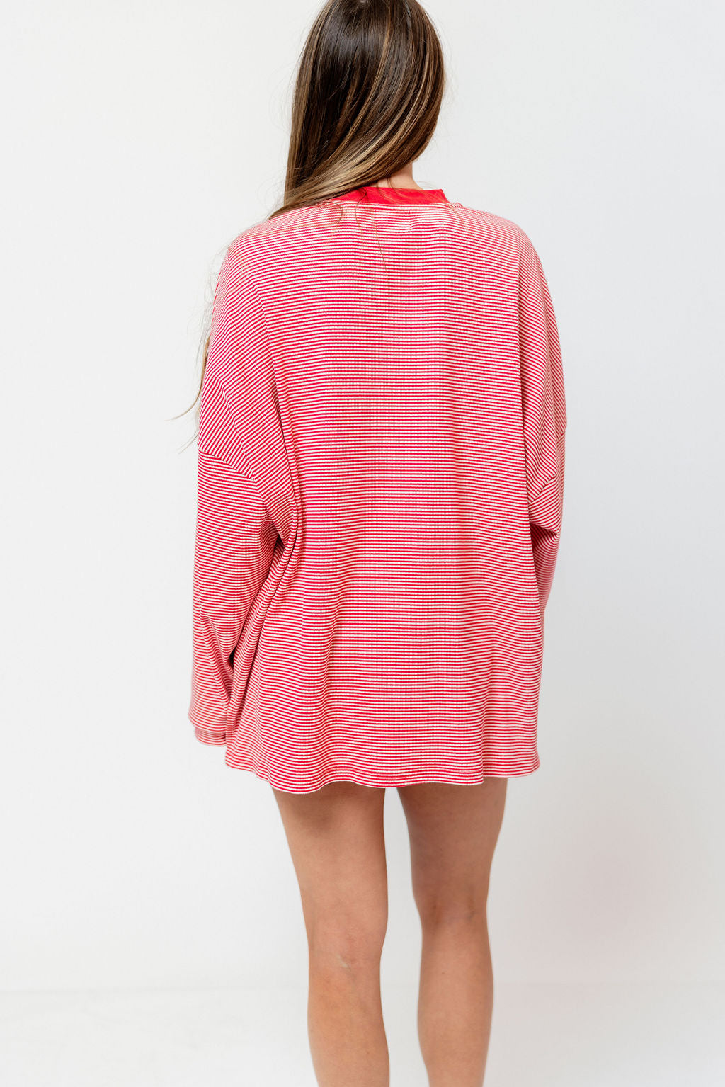 Stella Ribbed Stripe Oversized Top in Red (See Photo of Top Hanging for True Red Color)
