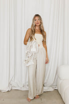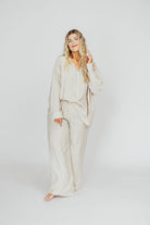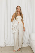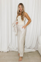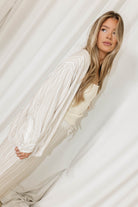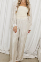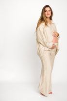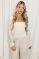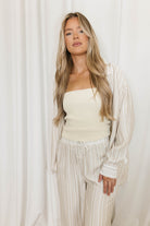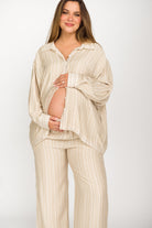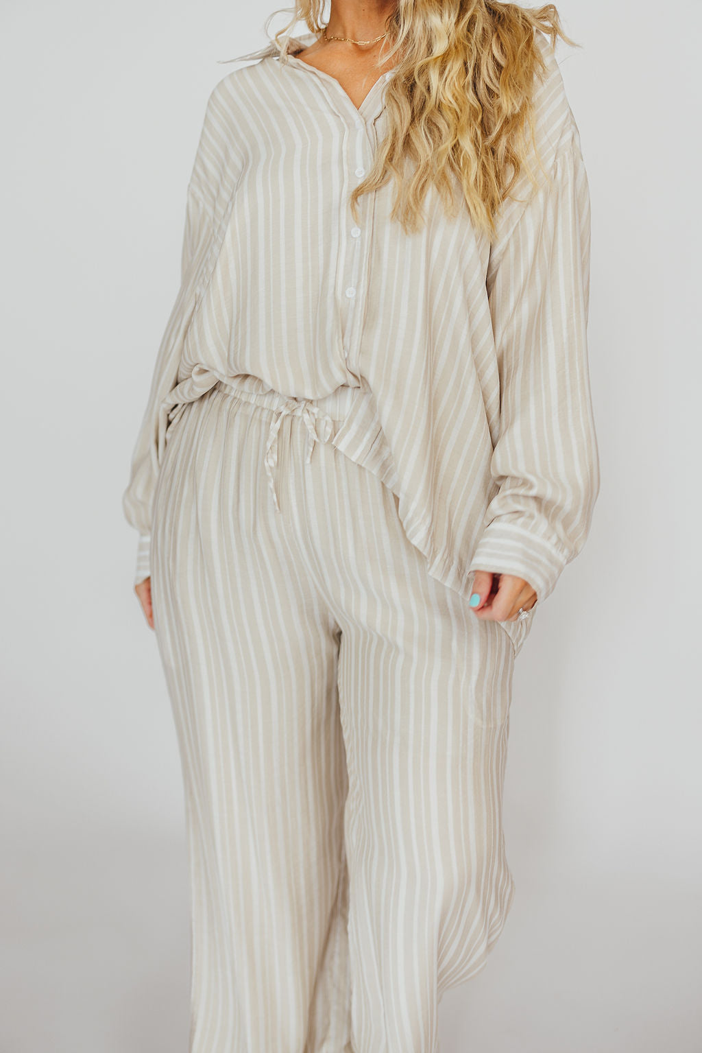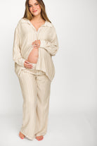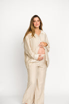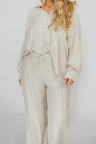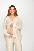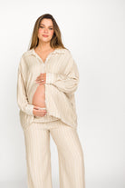 Sloane Striped Button-Down Shirt and Pants Set in Natural - Nursing Friendly
