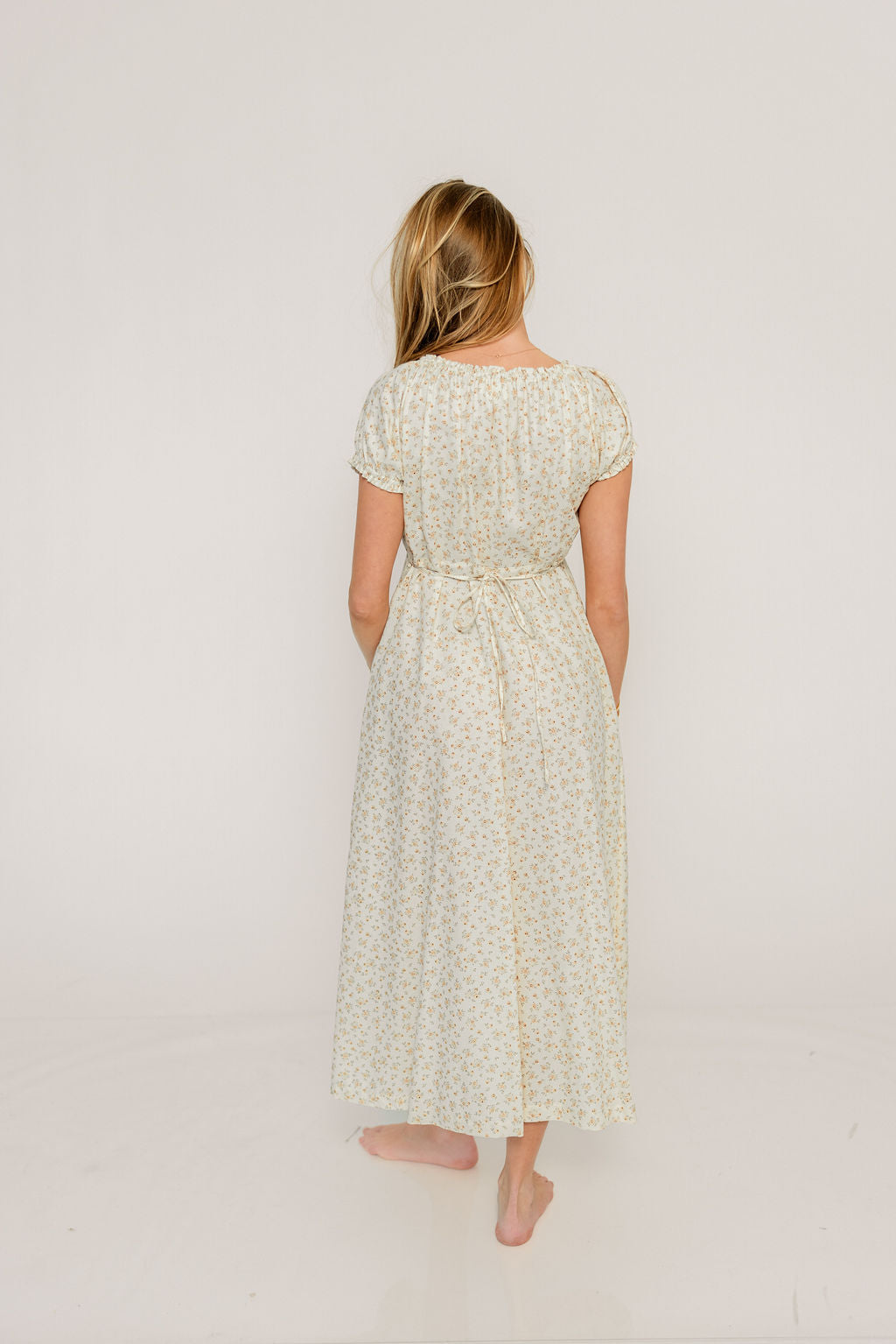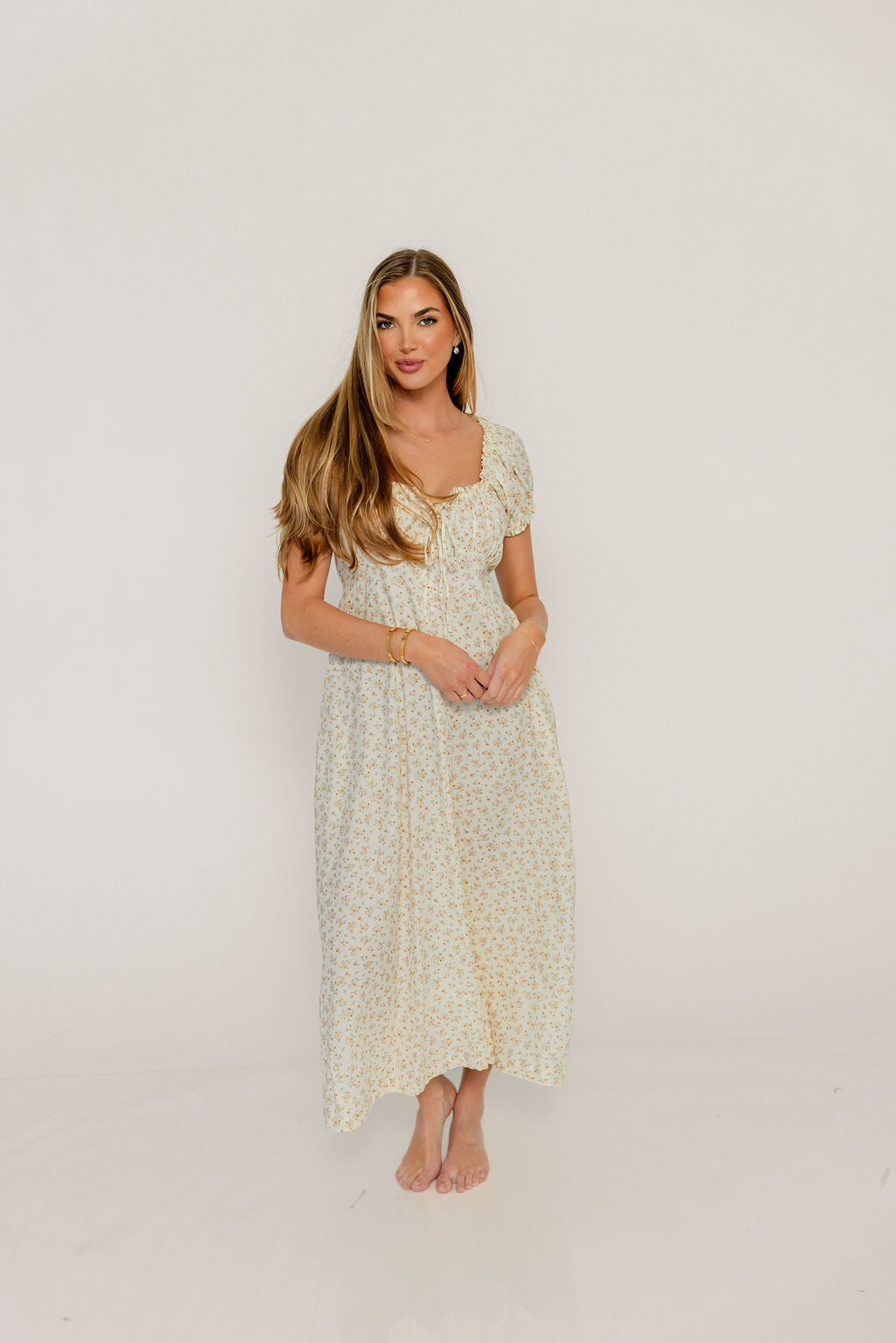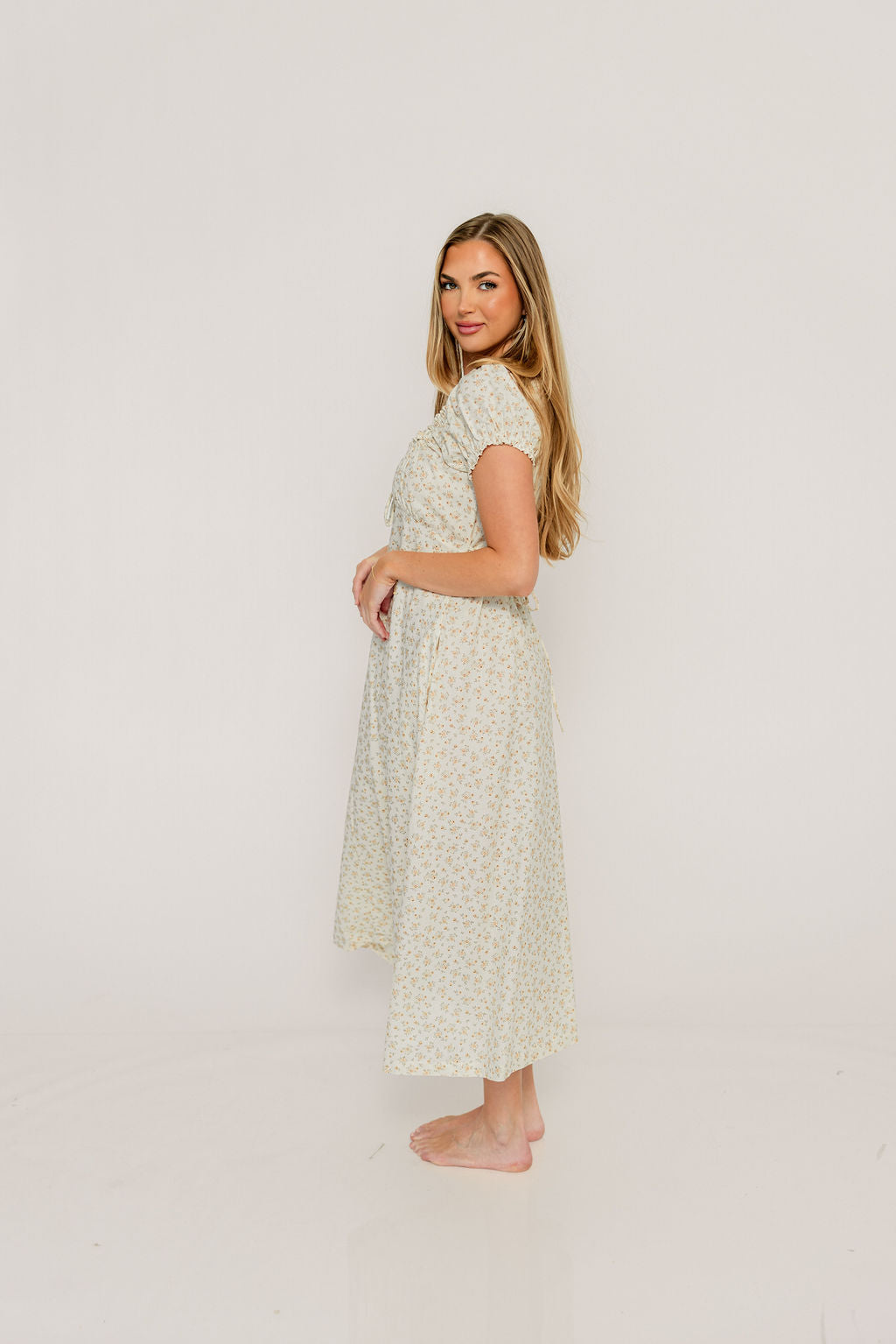 Alexis Floral Midi Dress in Butter Cream - Bump Friendly